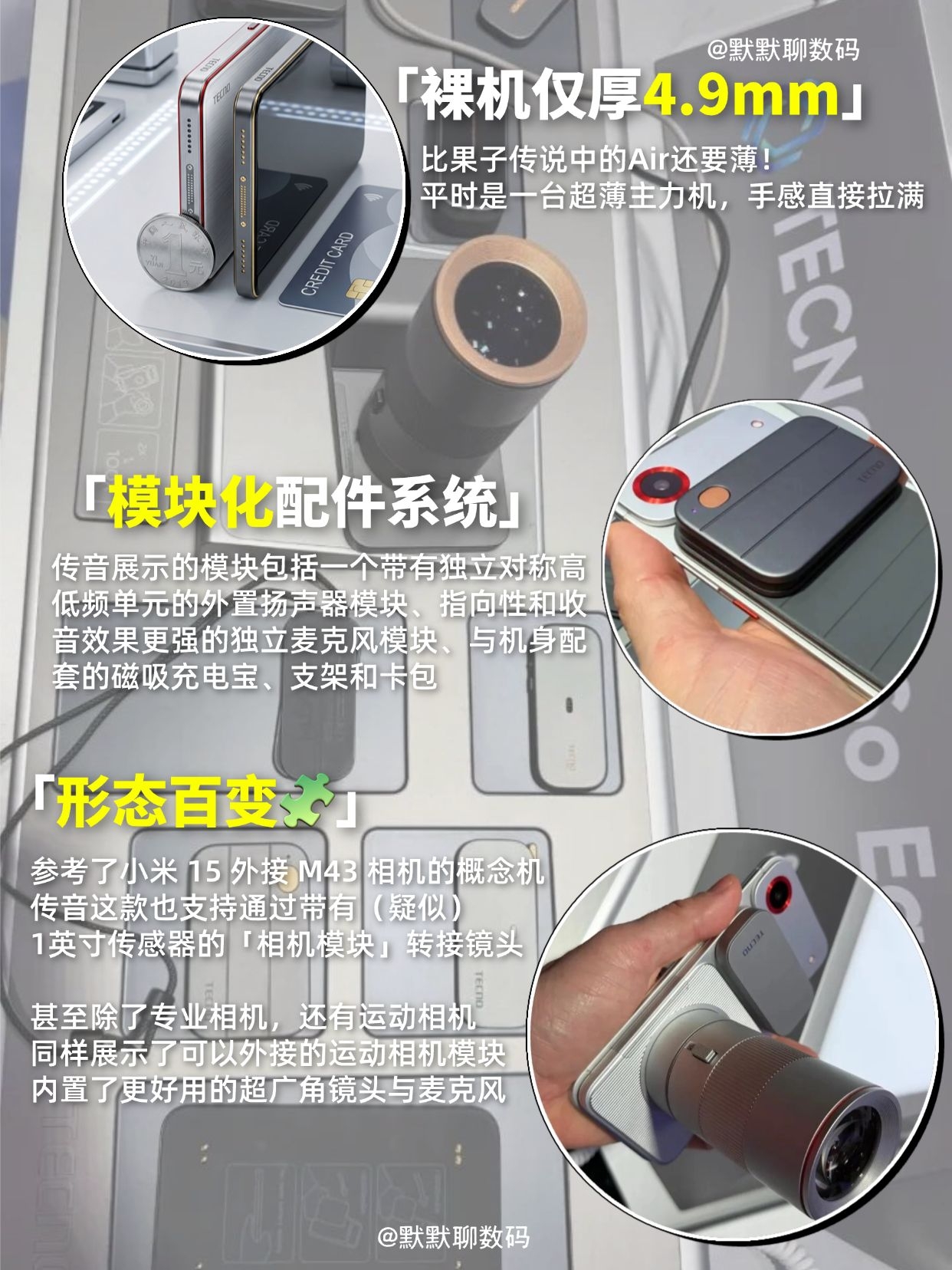 不知道大家有没有觉得,这两年的智能手机是不是长得越来越像了❓如果你也看腻了千篇一律的“玻璃砖”,那在2026年MWC(世界移动通信大会)上,“非洲手机”传音带来的这款模块化概念机,应该能让你眼前一亮!✨ 🧩充电拍照,全靠“吸” 传音这次带来了一套神奇的「模块化磁性互连技术」。这台手机本体薄至惊人的 4.9毫米,为了追求极致轻薄,它非常激进地取消了传统的USB-C接口,充电和数据传输全靠背部的磁...