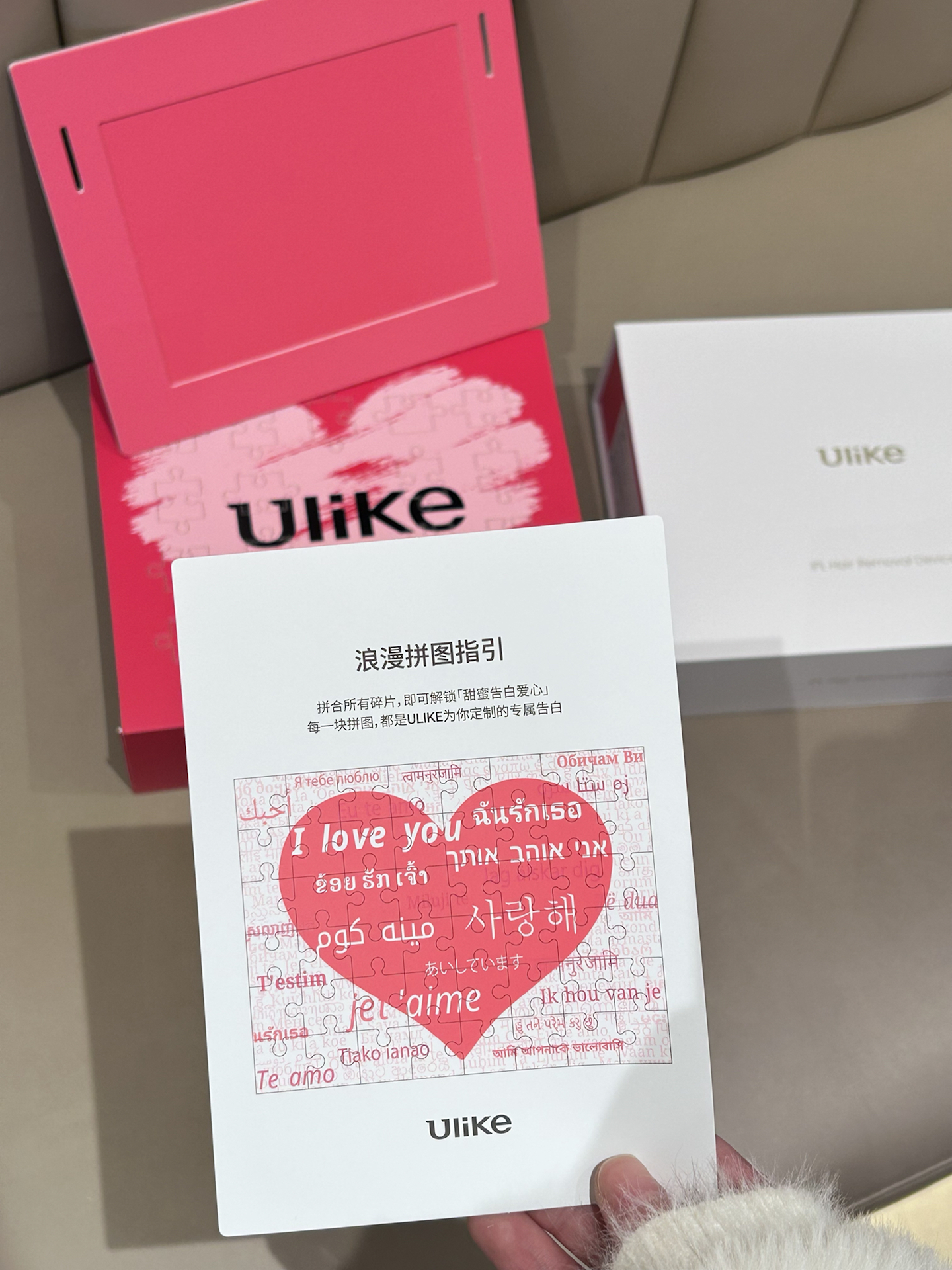 本篇笔记关联了【情人节限定】Ulike 蓝宝石脱毛仪礼盒 不留黑点 水晶紫脱毛仪*1个+身体乳100ml*3支+芦荟胶30g+小贝壳刮毛刀1个+护目镜1个+相框1个+拼图1个等商品,为用户提供真实的使用体验和购买参考。
