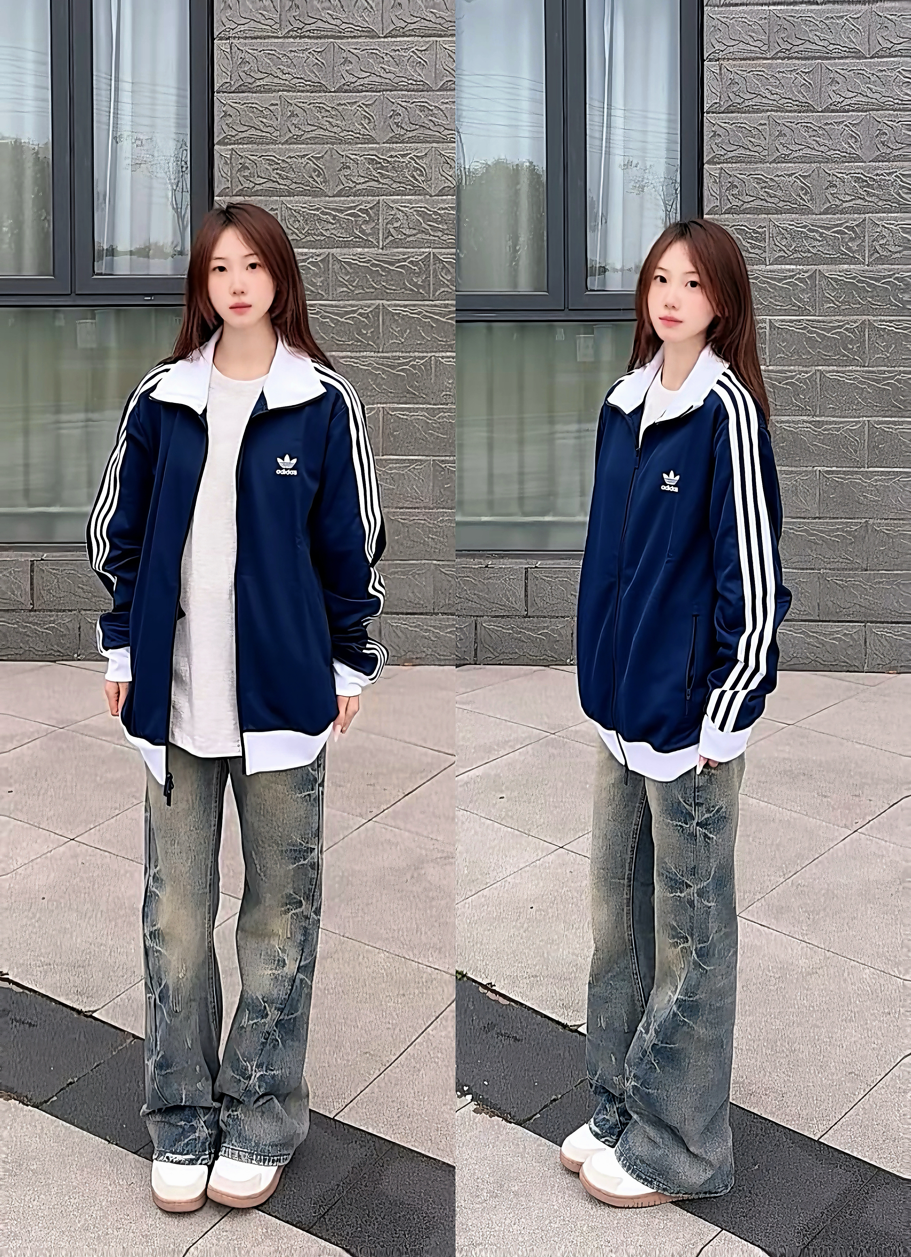 1️⃣华夫格面料软乎乎超亲肤☁️透气不闷汗,春秋穿正合适🍂宽松版型藏肉又自在✨ 2️⃣米白撞酒红太有复古那味了🕰️藏蓝立领点缀,层次感拉满🔹三叶草刺绣细节感爆棚🌱 3️⃣单穿叠搭都好看,利用率拉满💯通勤约会一套搞定,懒人福音🙌经典三道杠,复古运动风拿捏🤏
