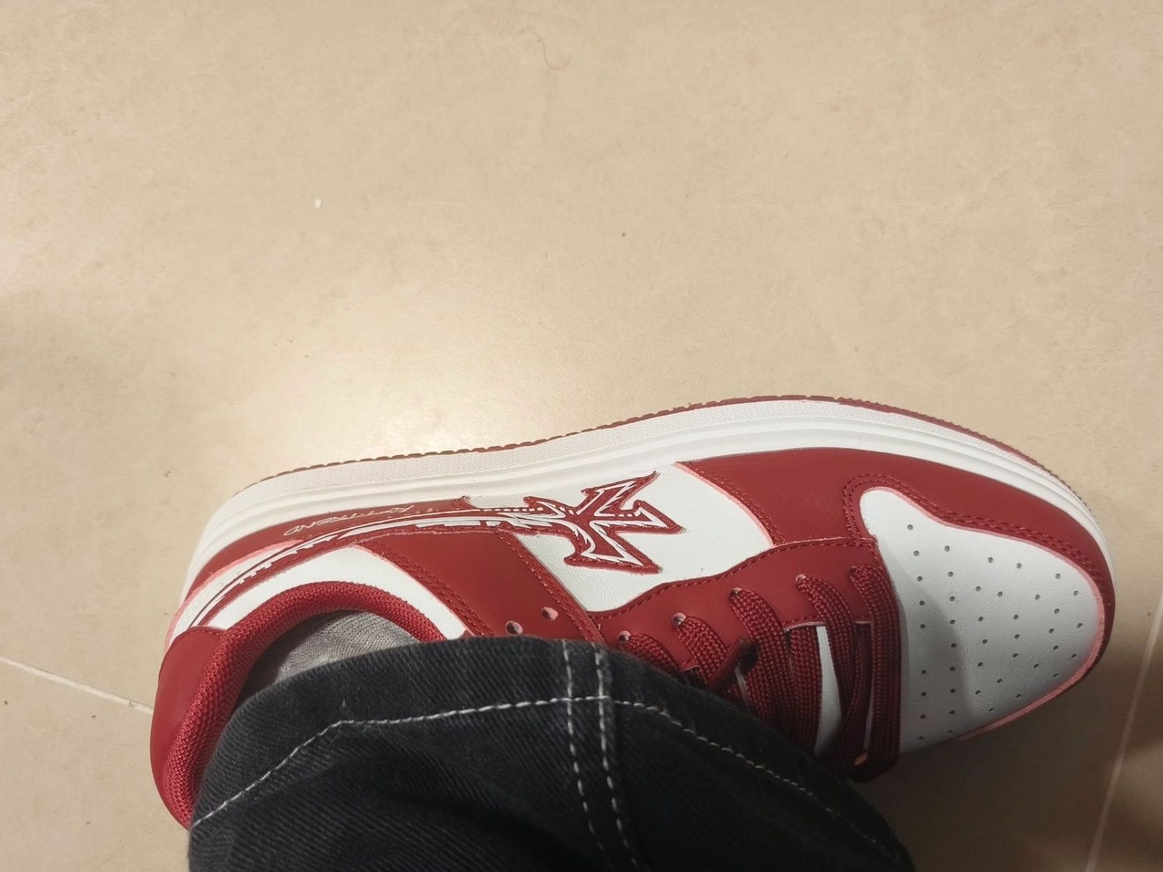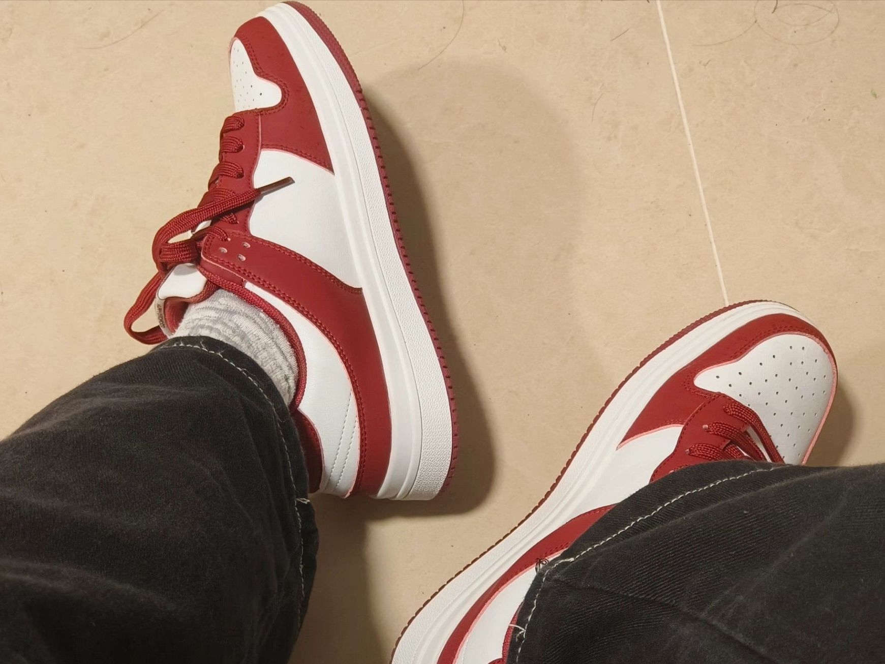 这双红白配色的鞋子,到手穿了有段时间了。先说穿着感受,鞋底不算软,长时间走路的话,脚底板会有点累😔。鞋面的材质倒是挺耐磨的,平时随便造也没见有什么磨损。 鞋型的话,算不上特别修脚,但舒适度不错,有点偏圆润,搭配裤子的时候得挑挑,不是所有风格都能hold住🙅。不过这个红白配色还挺经典的,不容易过时,日常搭配简单的牛仔裤或者运动裤也还说得过去。 还有个小缺点,鞋带有点容易松,得时不时系一下,这点...