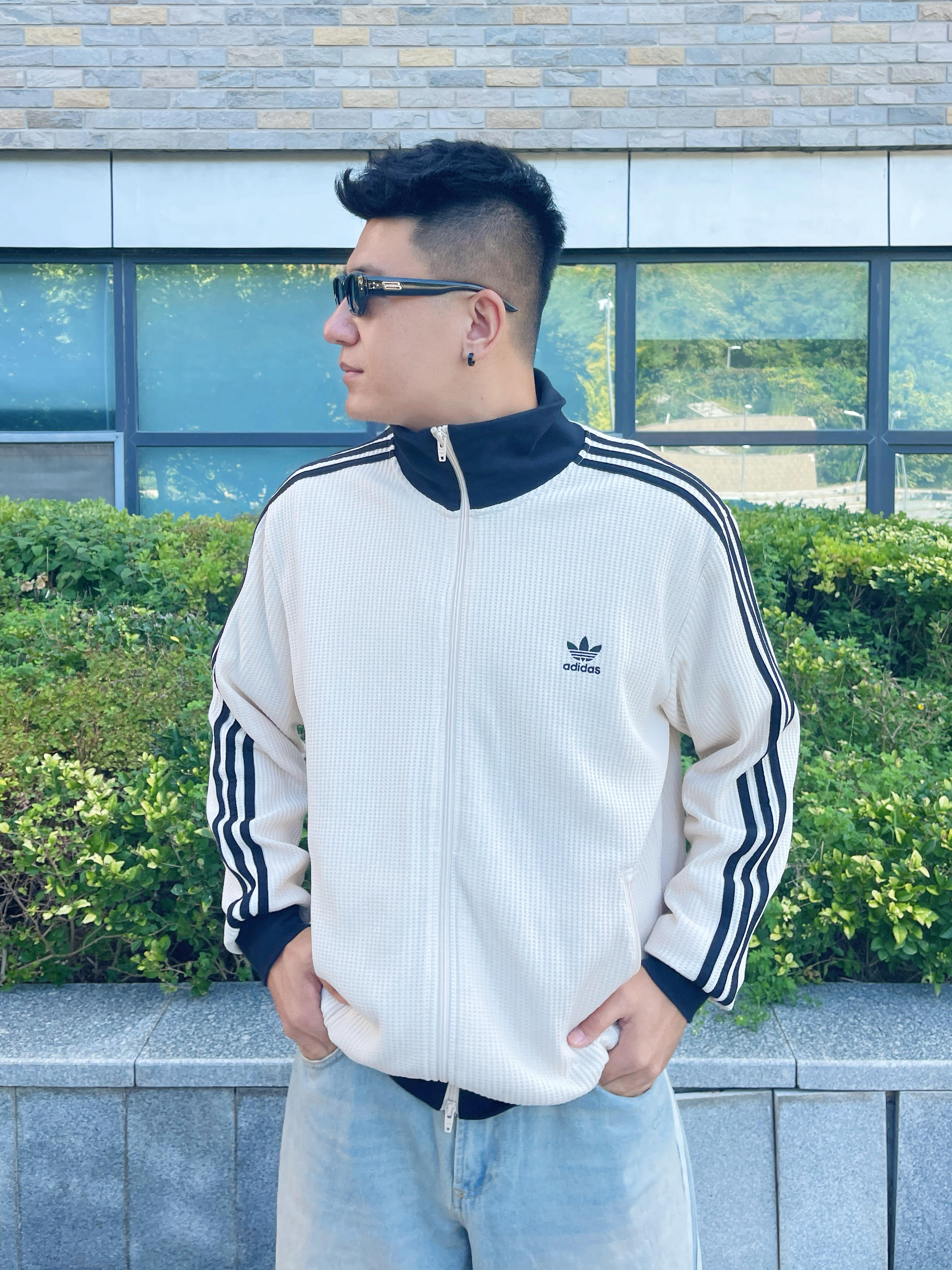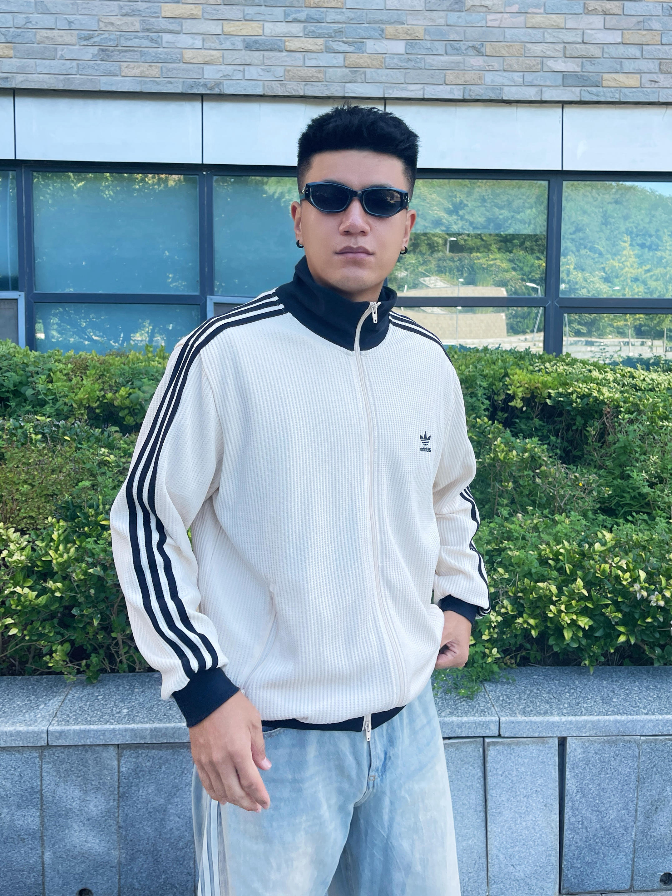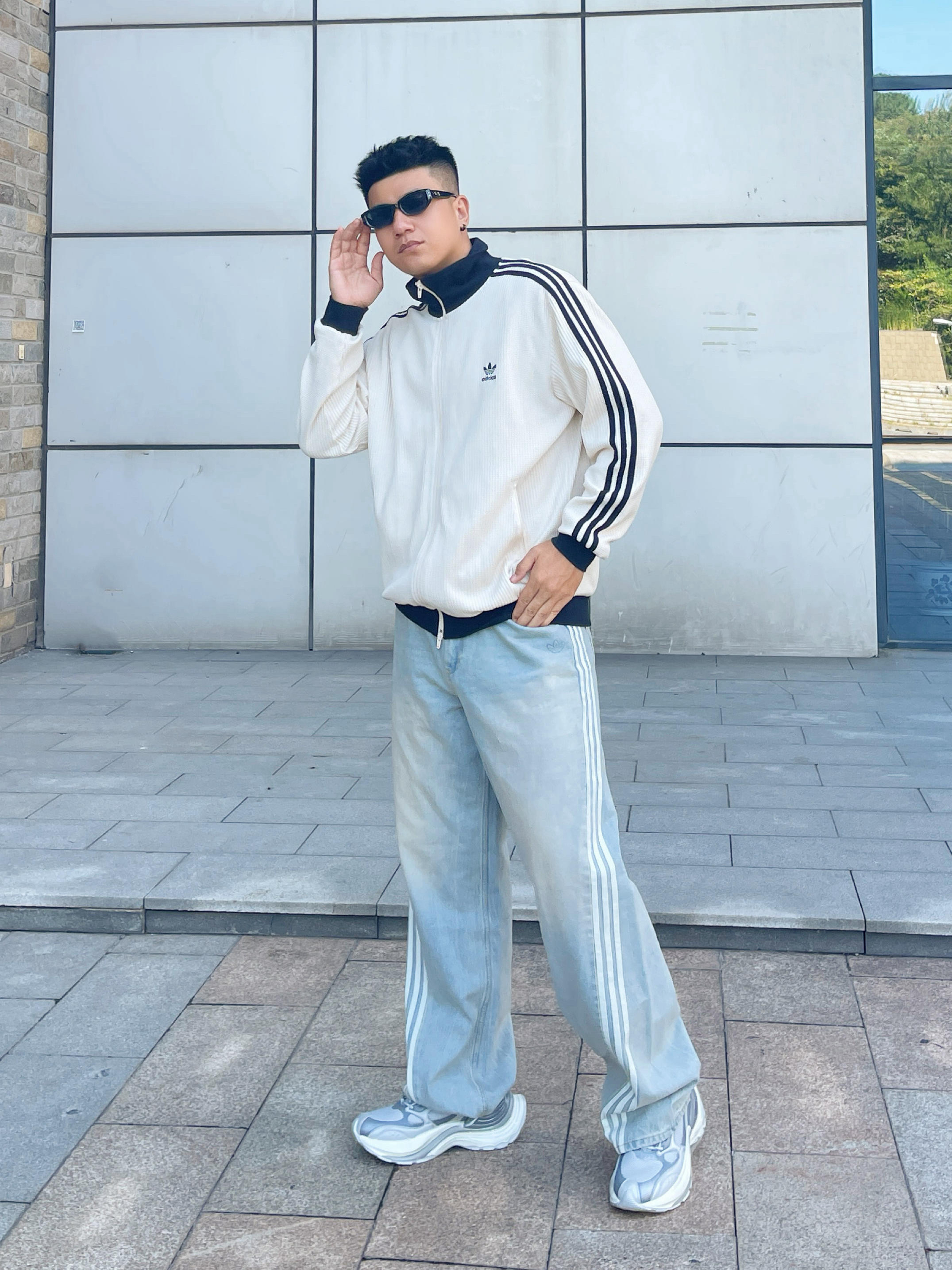 谁懂啊!这套真的套上就能出门 Adidas三叶草☘️这件华夫格外套 奶白色很温柔 是那种软糯的乳白🥛 高领黑边设计 版型宽松显瘦 早春穿刚刚好 不会太厚也不会薄 下身配条Adidas浅蓝色牛仔裤 很宽松遮肉 整体cleanfit感拉满✨ 早八党直接一套穿 不用动脑也高级 韩系学长既视感 舒服又有型👀 👦🏻:188 | 85 🧥:XXXL 你觉得这套韩系穿搭适合什么场景~