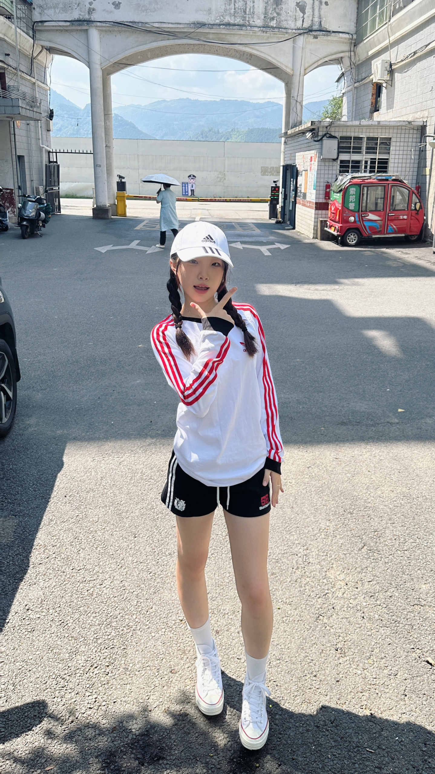 这套运动风穿搭超舒服,白红配色清爽又有活力,双麻花辫和棒球帽加持,元气感直接拉满,出街回头率超高身高
