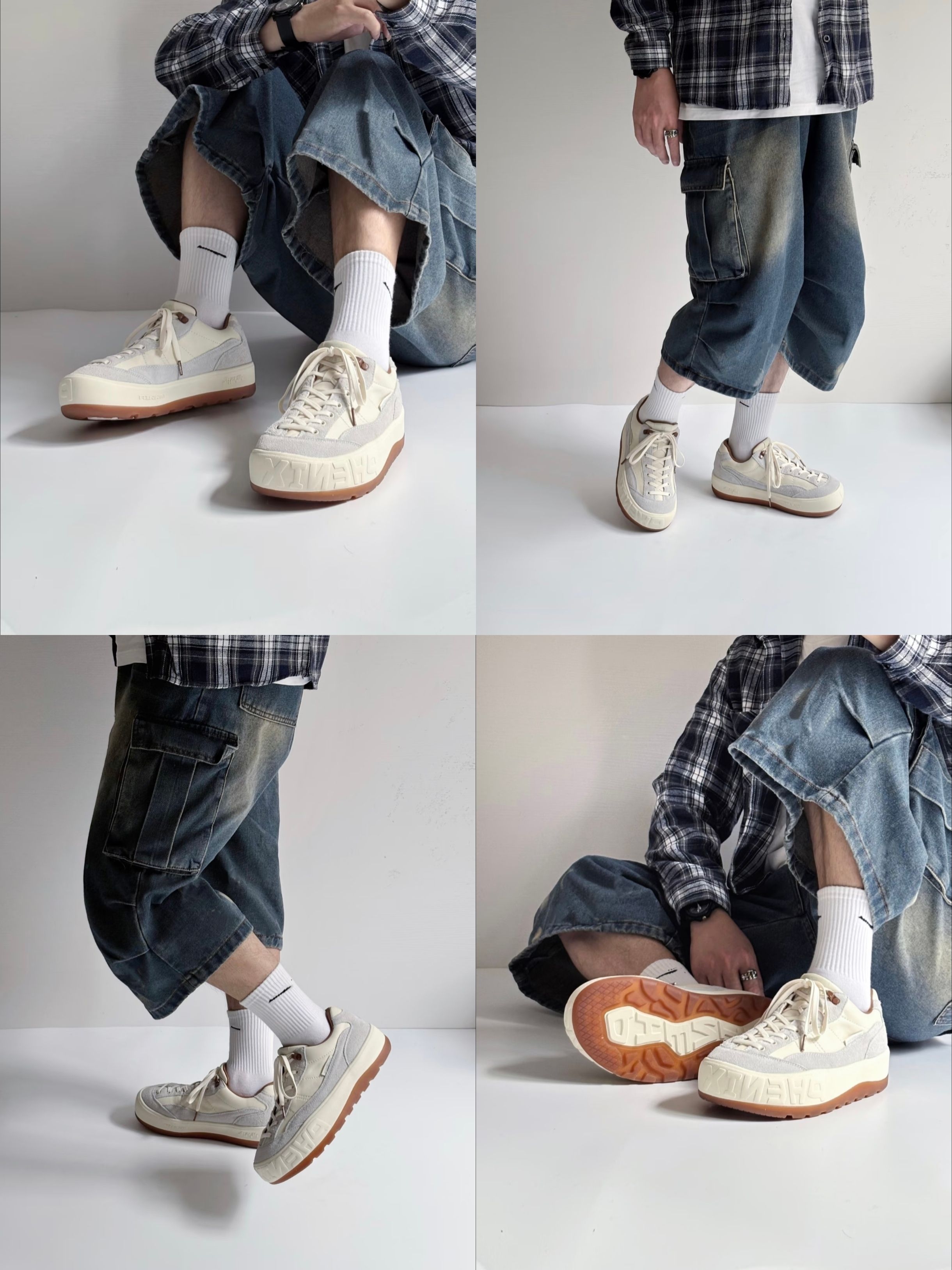 搭配性超强:这点必须夸。我试过用它搭配宽松的牛仔裤、卡其裤,甚至是运动短裤和裙子,都出奇地和谐。它自带一种复古松弛感,能很容易地融入各种休闲或略带街头的风格里,是我最近穿搭利用率最高的一双鞋。