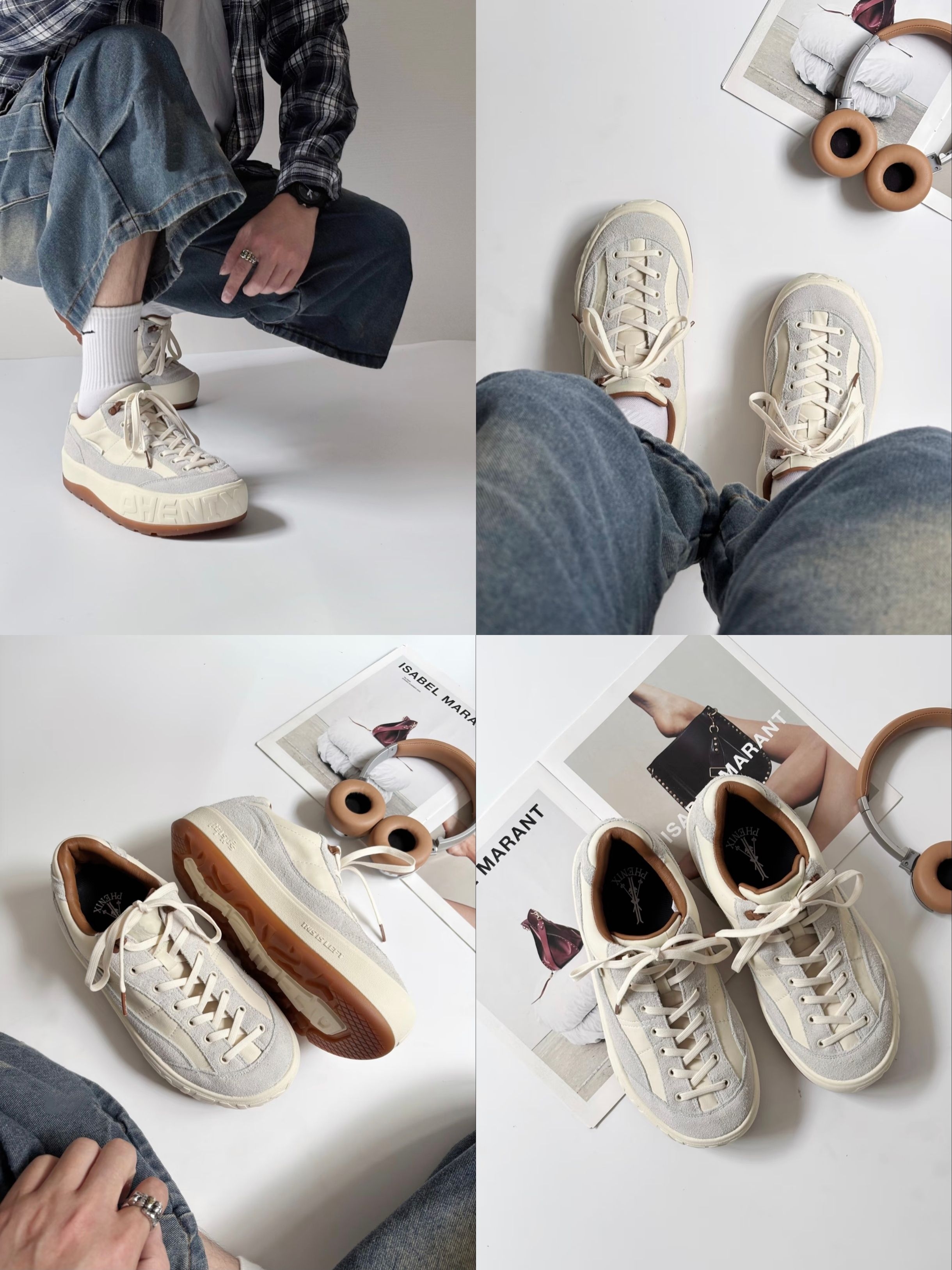 我入的是米白搭配浅灰麂皮的款,颜色非常清爽,属于春夏怎么搭都不会出错的那种。鞋型是现在很火的复古面包鞋设计,线条圆润饱满,但不是那种笨重的“肿”,细节做工挺扎实的。