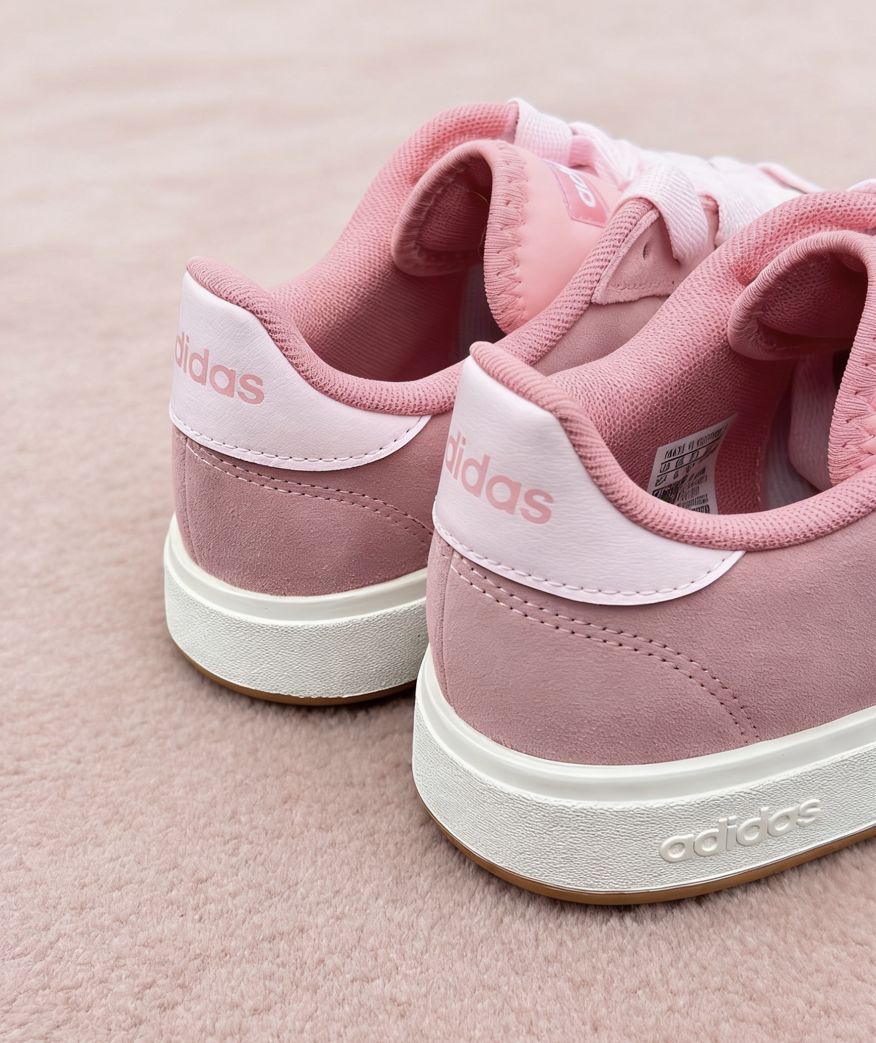 adidas浅粉麂皮板鞋,柔粉麂皮+浅粉三条纹,温柔感拉满。自己上脚试穿,鞋型宽松不挤脚,宽脚也能轻松驾驭,完全不挑脚型。每次穿上它出门,脚步都变得轻快,搭配牛仔裤、百褶裙都很和谐,通勤、约会、周末出游都合适,脚感舒适又耐看,心情也跟着变甜了😌✨