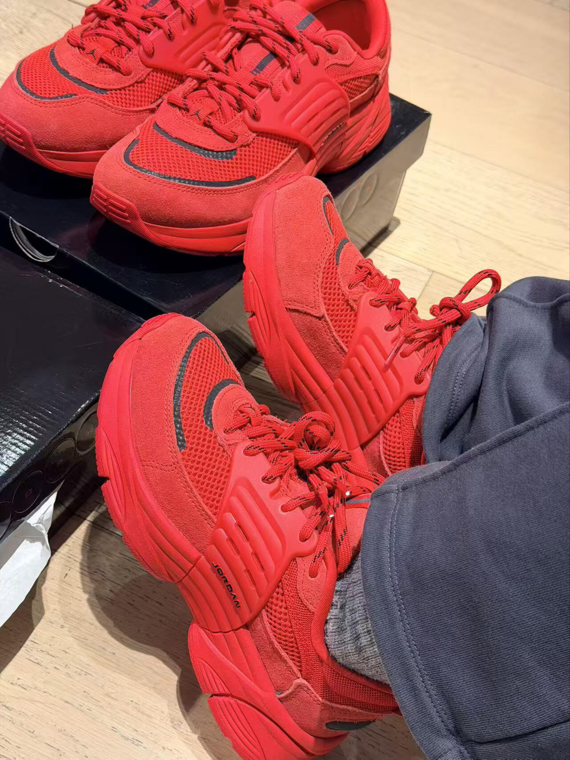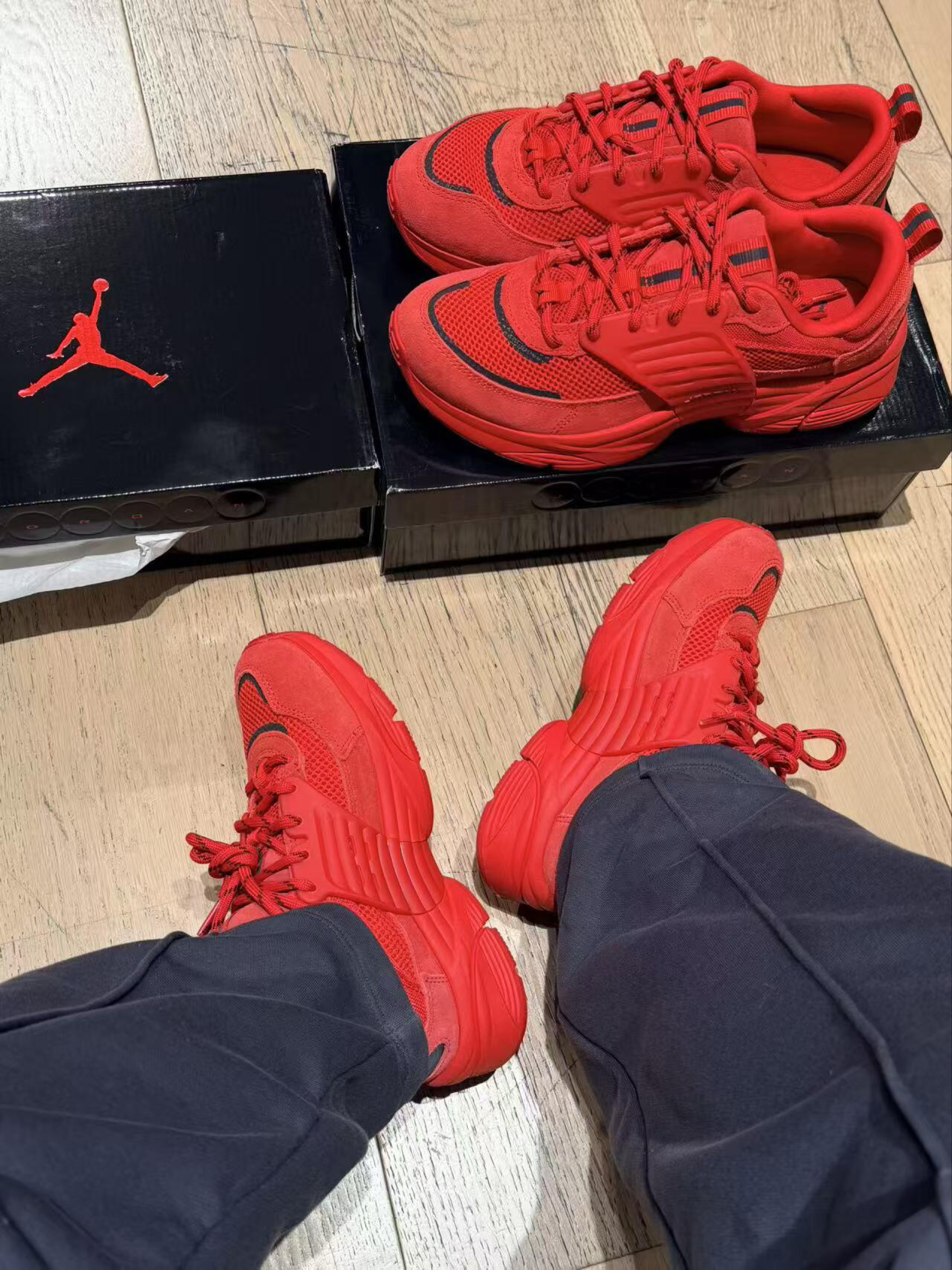 好哇色的红色!!!! 把「红」焊在脚边,踩碎路人目光。 全红 Jordan 入场,今天全场的焦点,从鞋尖开始发 烫 把热爱打包成一抹红,每一双都是对「红」的偏执。 鞋柜里的新藏品,是一眼就能点燃心情的「红色燃料」 同是也是我们王嘉尔同款系列哦最重要这款全掌泡棉、打破了AJ的硬上脚之后的舒适感难以形容 最重要很适合我这个小个子、还带了一点点增高