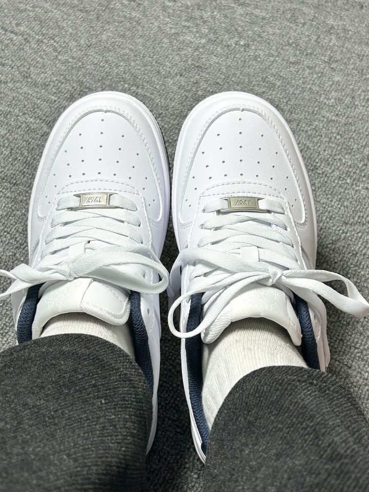 谁懂啊!这双白蓝撞色真的美到心巴💙 经典空军鞋型+立体背靠背刺绣,复古感拉满,上脚秒变美式校园女主! 厚底设计悄悄增高,皮革鞋面质感在线,雨天也不怕湿脚~ 搭牛仔裤、百褶裙都超绝,妥妥的氛围感神器✨ 闭眼入不踩雷,这波复古回潮你必须跟上!