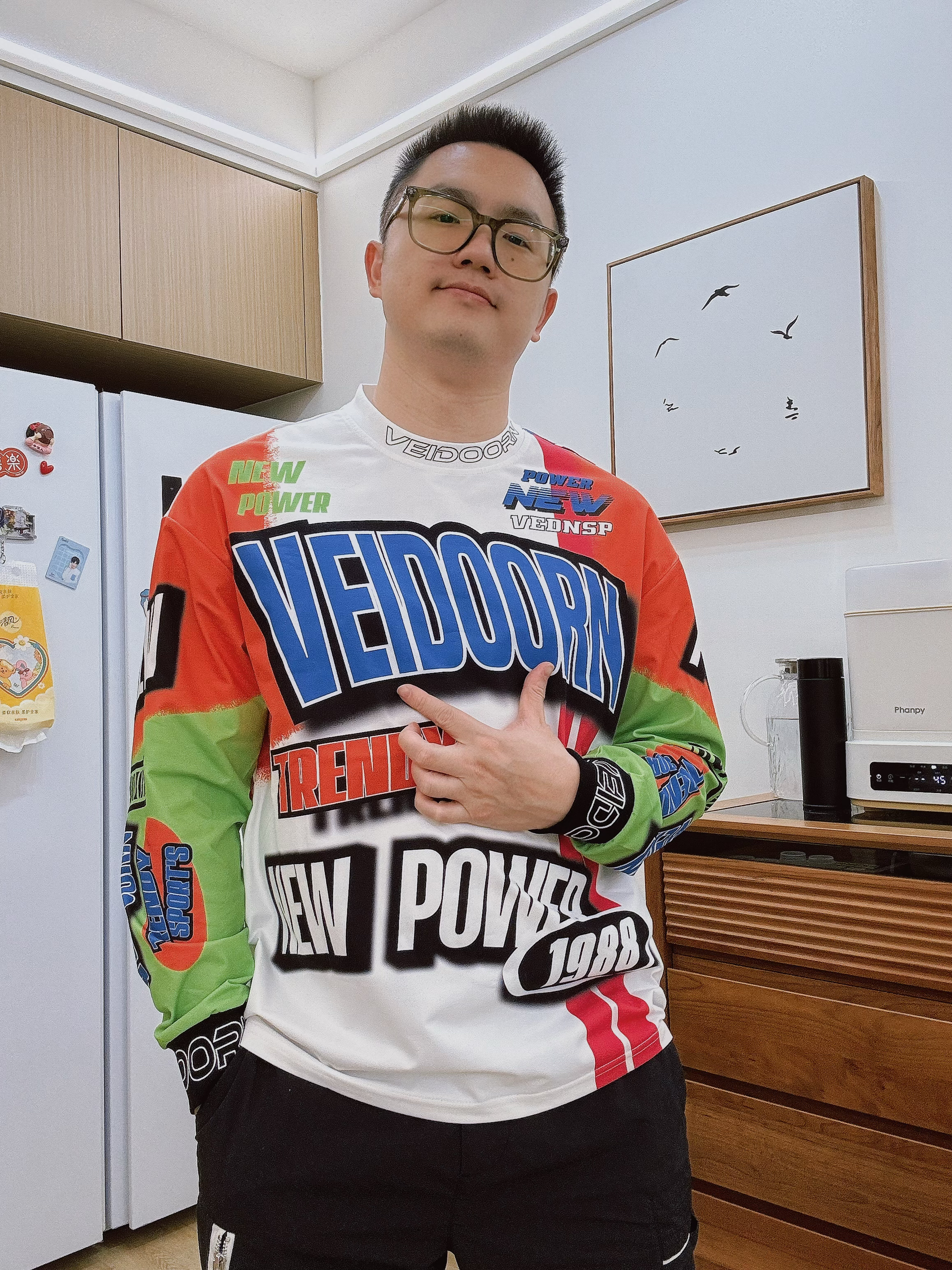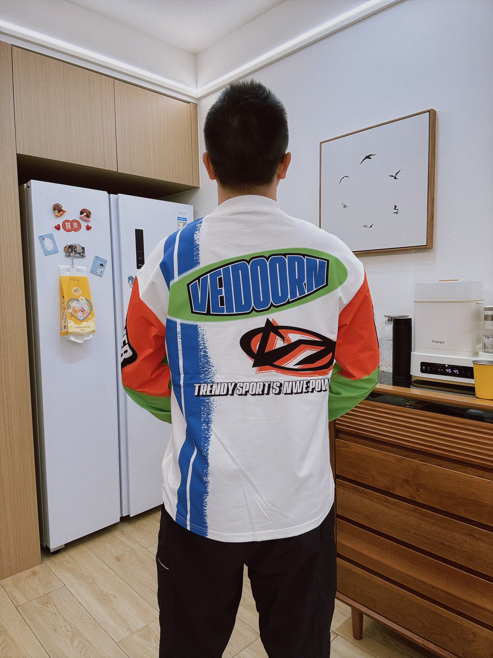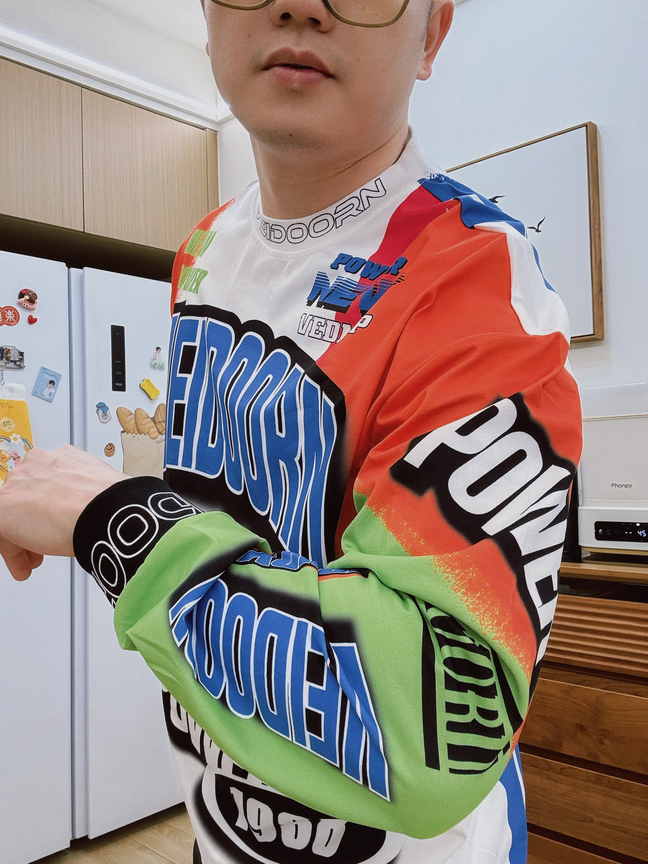 #开学一周OOTD 维动 VEIDOORN #维动缤纷长袖投篮服 #2026新年穿搭 #美美开局2026 #2026年开年fitcheck 170,145斤,L上身效果偏修身 想要宽松效果可以上XL码 速干面料,微弹性,领口袖口松紧带 松紧有度,不勒脖子,主打一个花里胡哨 有点摩托GT赛车服的感觉 Logo印花有个性,在校穿上这么一件 球鞋好不好看不重要,就这上衣就很吸睛 开学做个显...