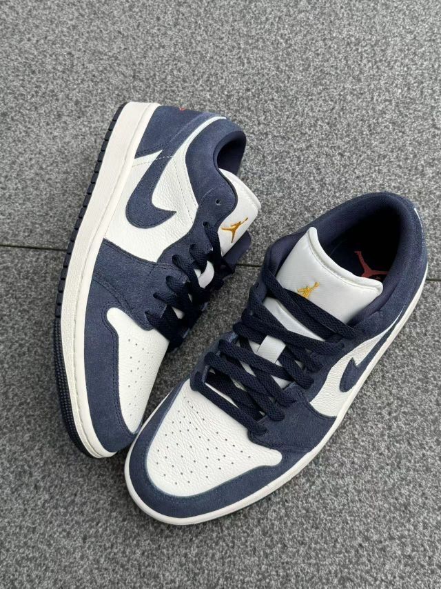 麂皮质感拉满,蓝白撞色永不过时! AJ1海军蓝限定款,每一步都踩在复古审美上✨ ▪️ 麂皮+荔枝皮拼接,高级感直接拉满 ▪️ 后跟红色飞翼刺绣,低调又有辨识度 ▪️ 米白中底做旧感,越穿越有味道 复古党、质感党闭眼入,这双AJ1绝对是鞋柜里的常青树!