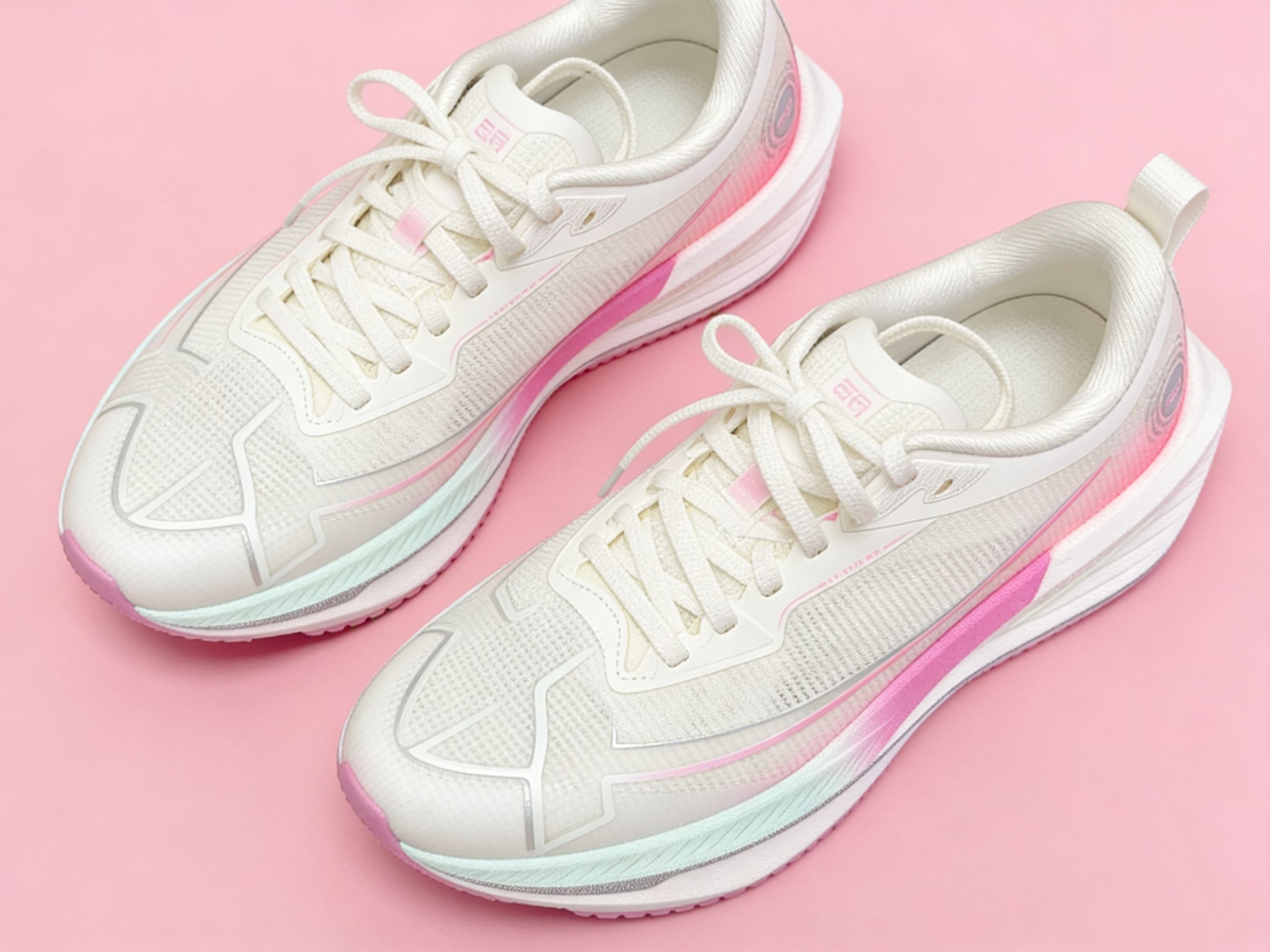 第一眼看到这双特步一体成型二代,就被它奶白配粉紫的配色击中——像极了清晨第一口冰镇西瓜,清新又带点甜,上脚瞬间温柔又显腿长,日常搭配运动裤或休闲裙都毫无压力。 真正穿上跑起来,它的脚感完全颠覆了我对“竞速跑鞋”的刻板印象。中底软弹得像踩在刚出炉的棉花糖上,却又带着恰到好处的推进力,每一步都像有双看不见的手在帮你省力。鞋面采用轻韧科技绞综编织,透气性极佳,夏天训练也不闷脚,七组鞋带孔能牢牢锁定脚面...