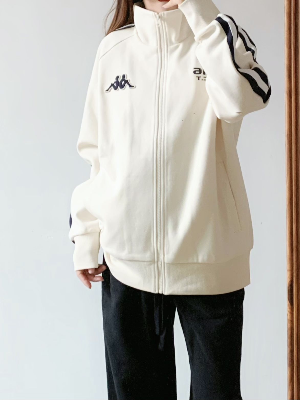 随性慵懒look就靠这套啦 炒鸡奶呼呼的配色,很百搭✌️ 实物也好看!!立领设计酷酷滴~ 版型也挺有活力滴!! 日常或者通勤穿都很合适🚶♀️ 随便搭个板鞋就很好看噜 #kappa #开春穿搭爆改 #春日少年