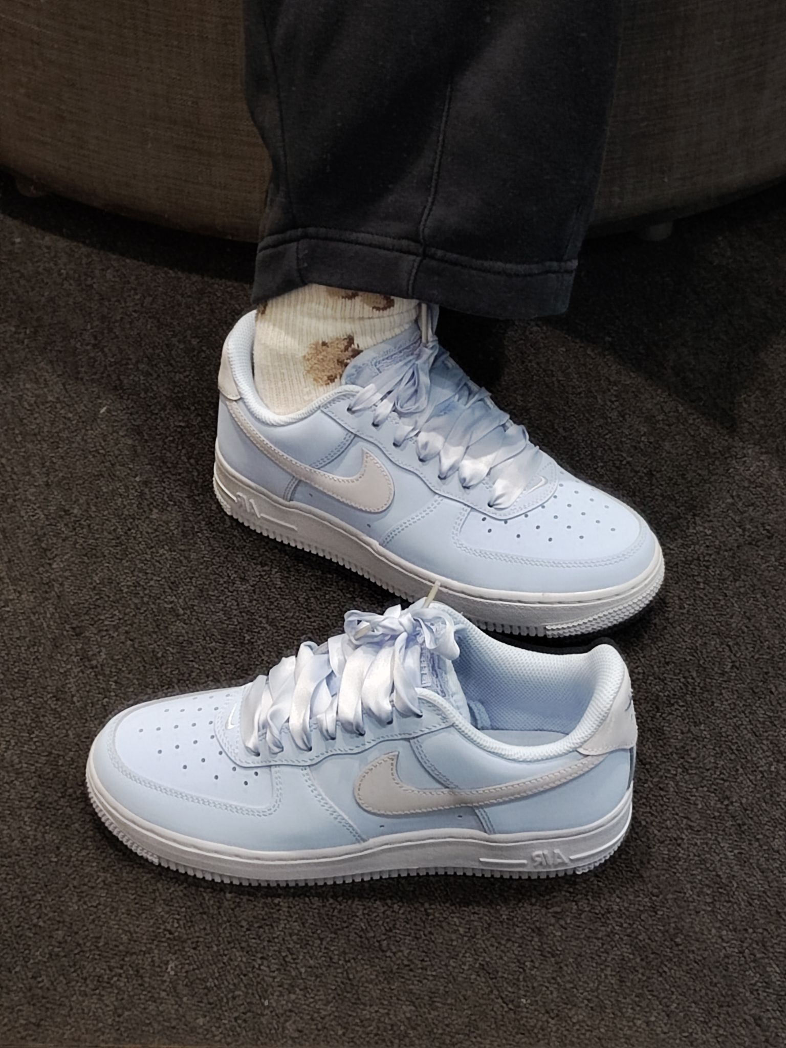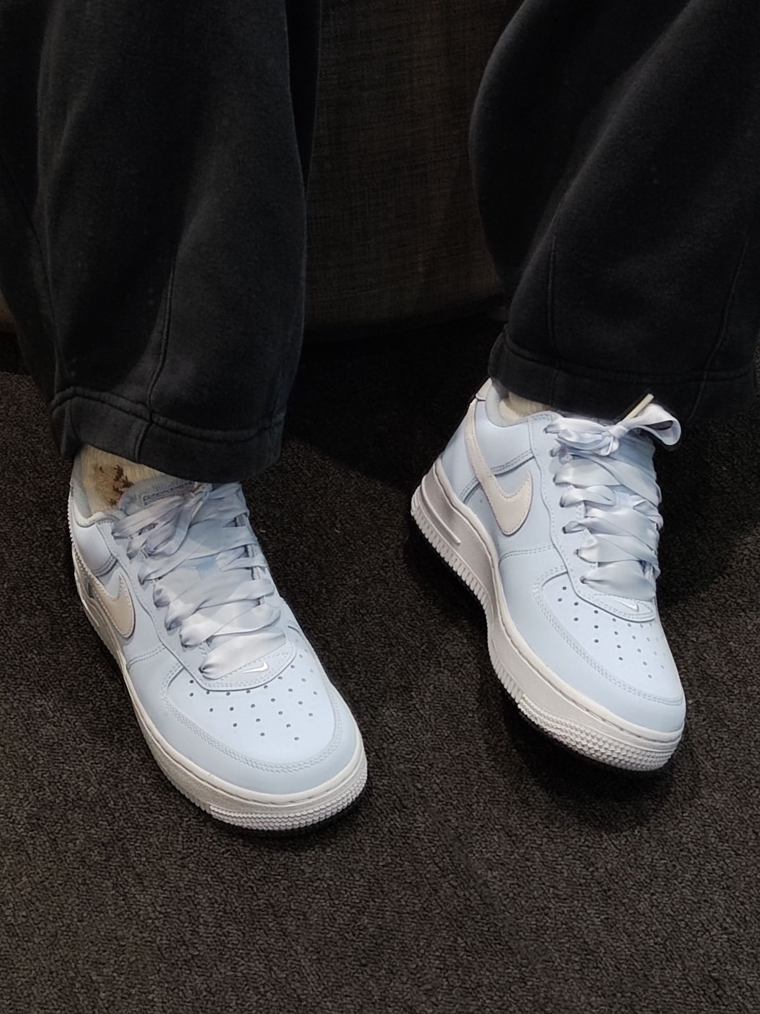 【💙 Nike Air Force 1 浅蓝缎带款|把温柔穿在脚上】,由用户 蹦跶的小海绵 分享,来自江苏。这是一篇来自识货社区的真实用户分享笔记。
