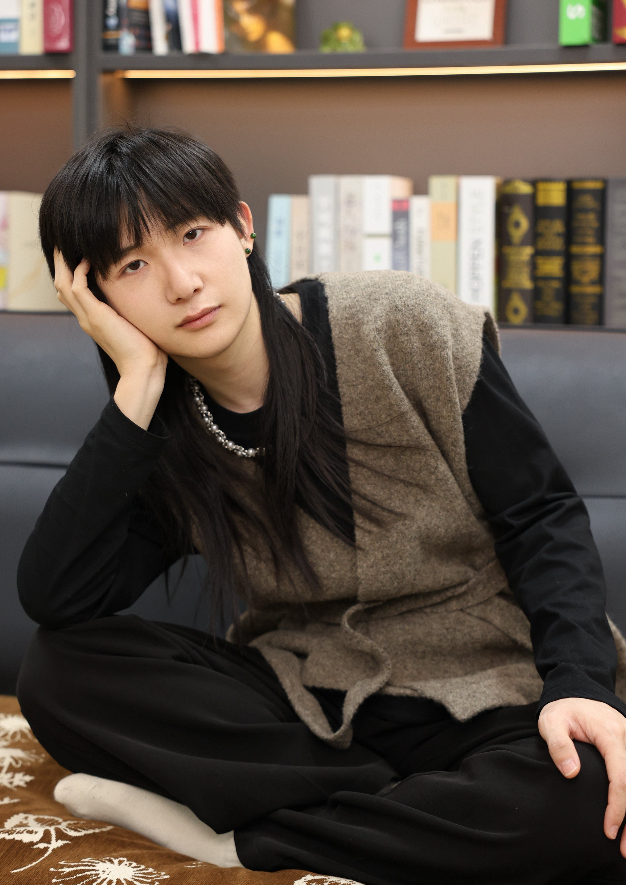 当冷空气开始钻进衣领,最先想到的不是厚重的羽绒服,而是这件混纺毛呢马甲。它不像大衣那样有压迫感,却能在每一次抬手、转身时,用扎实的肌理感贴住皮肤,把寒意挡在外面。 内搭选了最基础的黑色长袖,没有多余的图案,只靠面料的垂顺感和马甲形成层次。V领刚好露出锁骨,银色串珠项链顺着线条滑下来,冷调的金属光泽中和了毛呢的暖棕,让整体不至于太沉闷。 下半身是一条垂感很好的黑色阔腿裤,裤脚堆在脚踝,走路时布料...