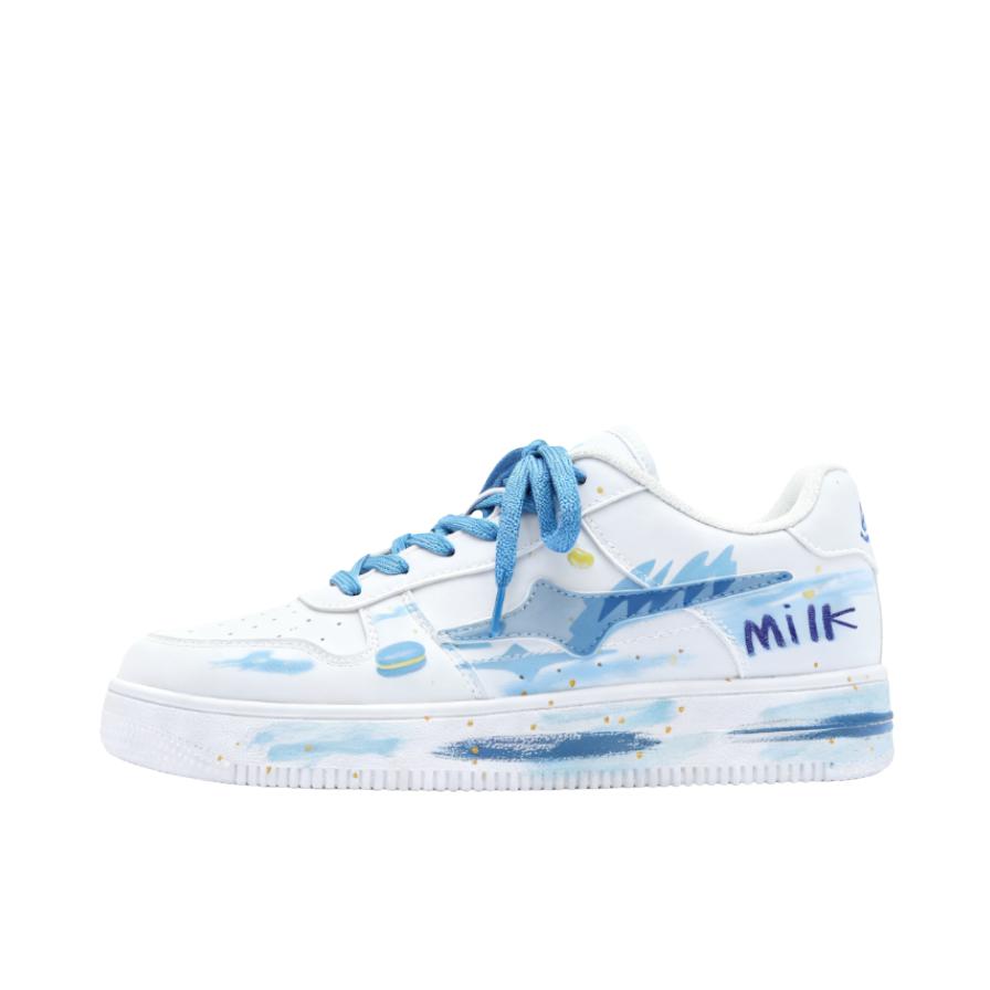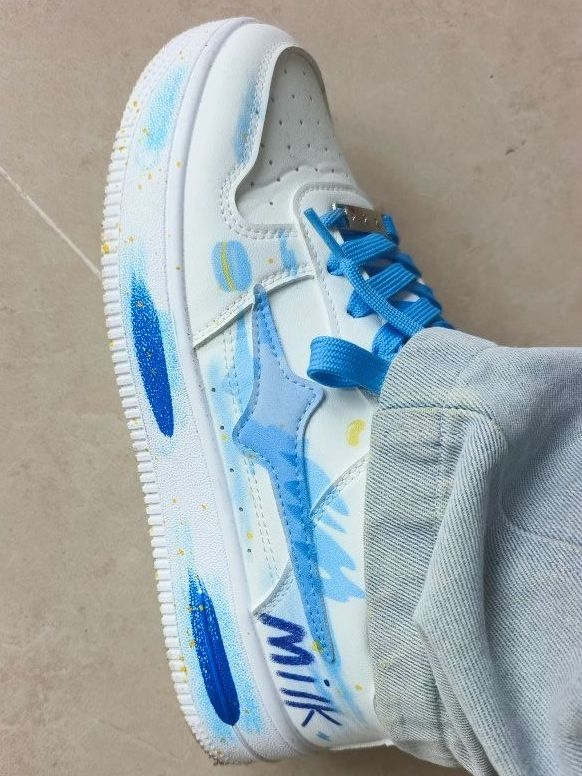 这双鞋入手有五六天了,先说说真实感受。个人它的手绘设计挺特别的,蓝白配色日常搭浅灰裤子还挺和谐,挺耐看的。 但缺点也很明显,就是鞋底不算软,长时间走路会有点累脚;然后白色鞋面不耐脏。尺码的话我觉得偏大一点。 不过日常出门逛个街、短途走走我觉得是非常nice(。•̀ᴗ-)