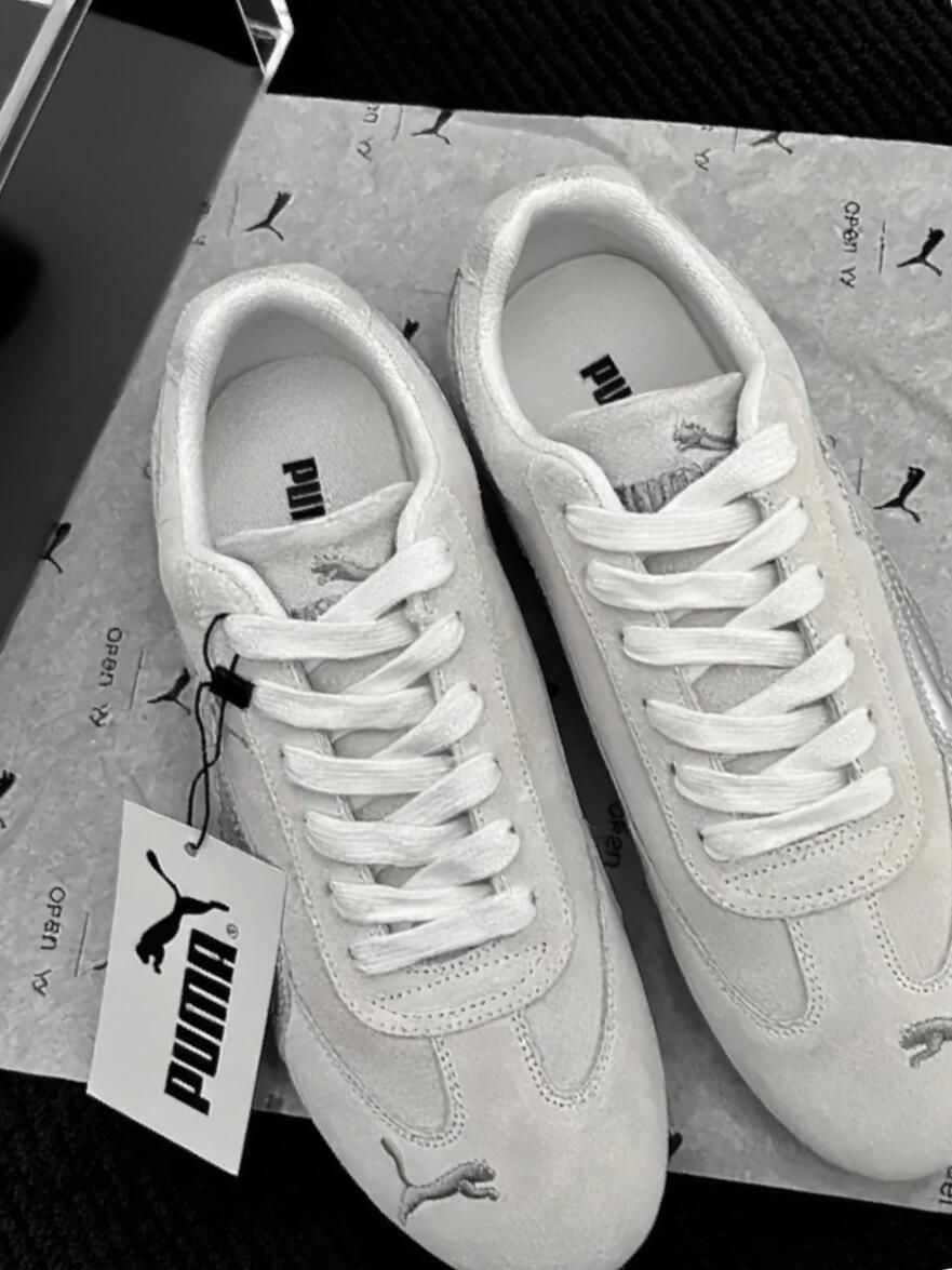经典银灰配色的Puma德训简约又百搭的✨ 高级的银灰色颜色就一眼心动 Puma这双真的泰有氛围了耶✨ 穿着是软乎乎的脚感 冬天日常随便搭配真的好吸睛👀