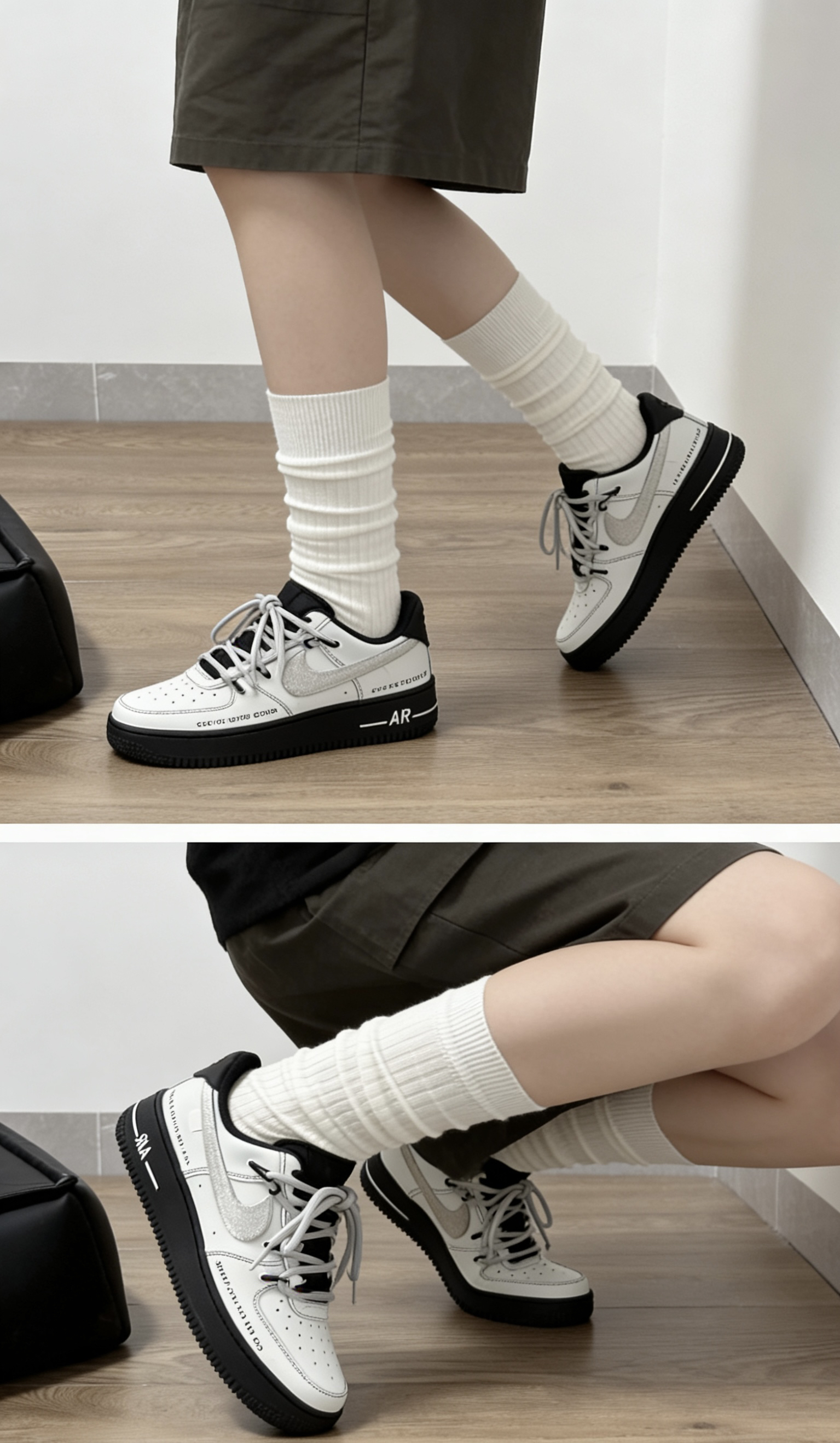 AF1经典重塑,破釜沉舟主题气场拉满!合成革鞋面防水耐脏,质感高级好打理。低帮版型简约百搭,自带厚底悄悄增高显腿长。包裹性出色,贴合脚型不磨脚,Air气垫加持脚感软弹舒适。橡胶大底防滑耐磨,日常出街、通勤上学都能穿。复古潮流永不过时,颜值与实用性双在线,潮人闭眼冲!