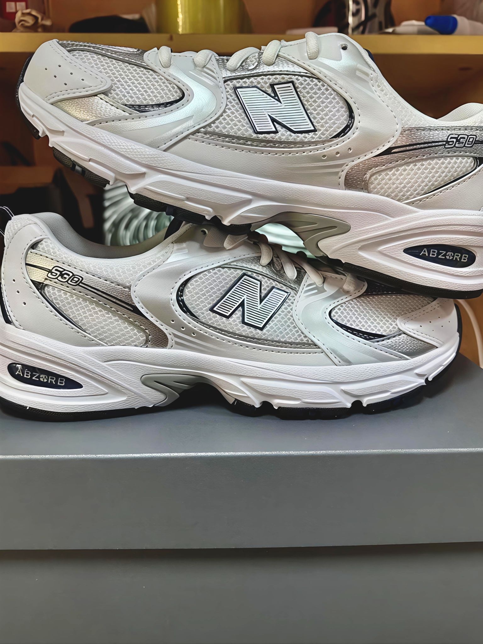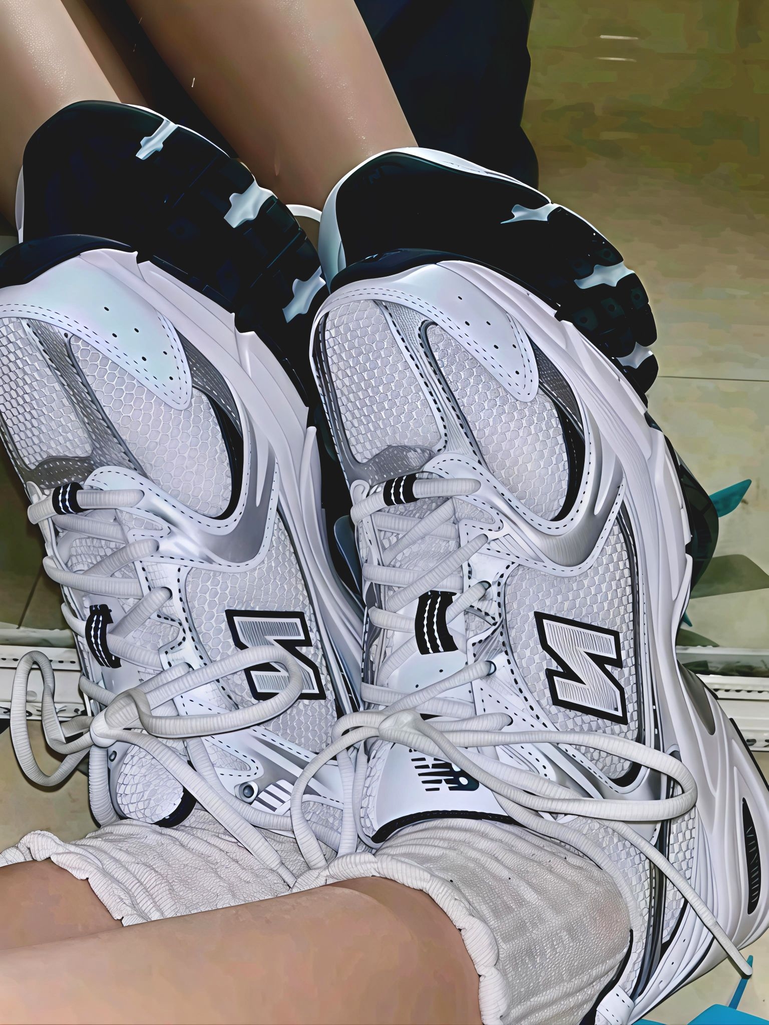 谁懂啊!新入手的NB530直接封神,是我今年穿过最舒服的鞋子!👟银白配色真的超耐看,经典的N字logo辨识度满满,复古潮流感拿捏得死死的!上脚脚感绝了,软乎乎的踩屎感,走路轻盈又不累脚,日常通勤、出门游玩穿它都超合适。而且它超百搭,衣柜里的衣服随便搭都好看,轻松穿出韩系慵懒风,显高显瘦效果直接拉满!不管是自己穿还是送朋友都超有面儿,这双宝藏老爹鞋真的值得拥有,已经成为我出门的首选鞋子,真心安利给每...