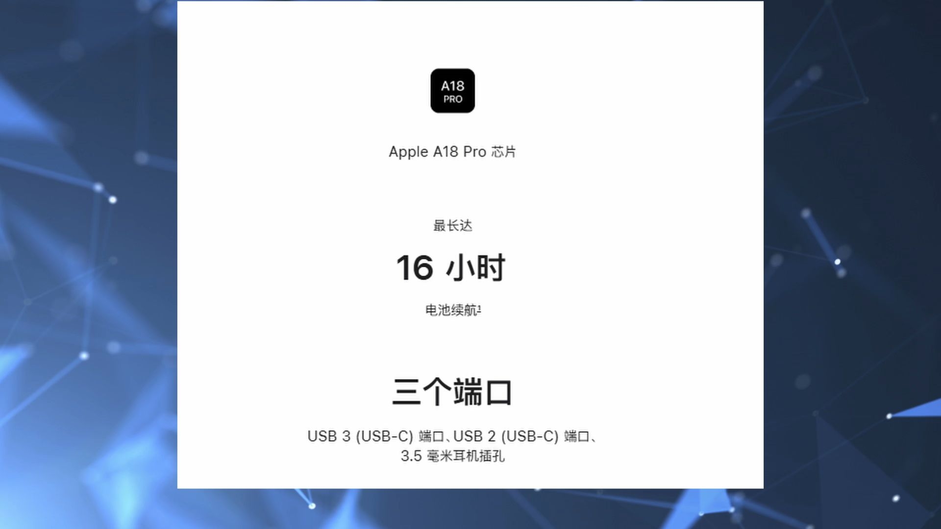 最便宜苹果笔记本!MacBook Neo 正式发布 3月4日苹果正式发布 这台笔记本 传说中的廉价版 价格方面 8-256G 仅售4599起 8-512G为5299起 应该是苹果价格最低的笔记本 不过8G内存 还是有点小 处理器为苹果A18PRO 应付一些日常办公是没有问题 能流畅运行各种AI任务 续航也是苹果强项 最高可用16个小时 屏幕搭载13英寸 视网膜显示屏 支持10亿色彩 500尼特亮...