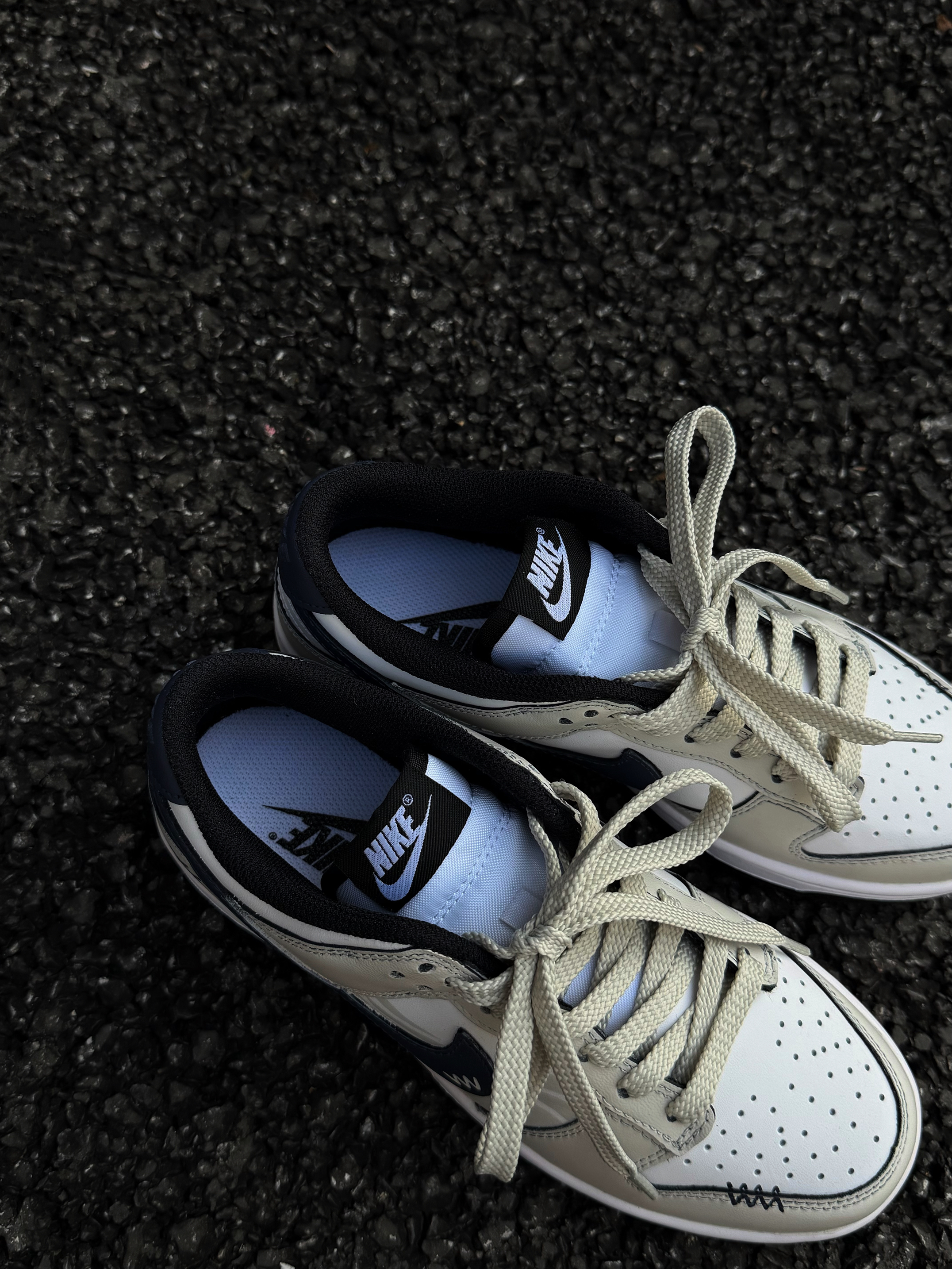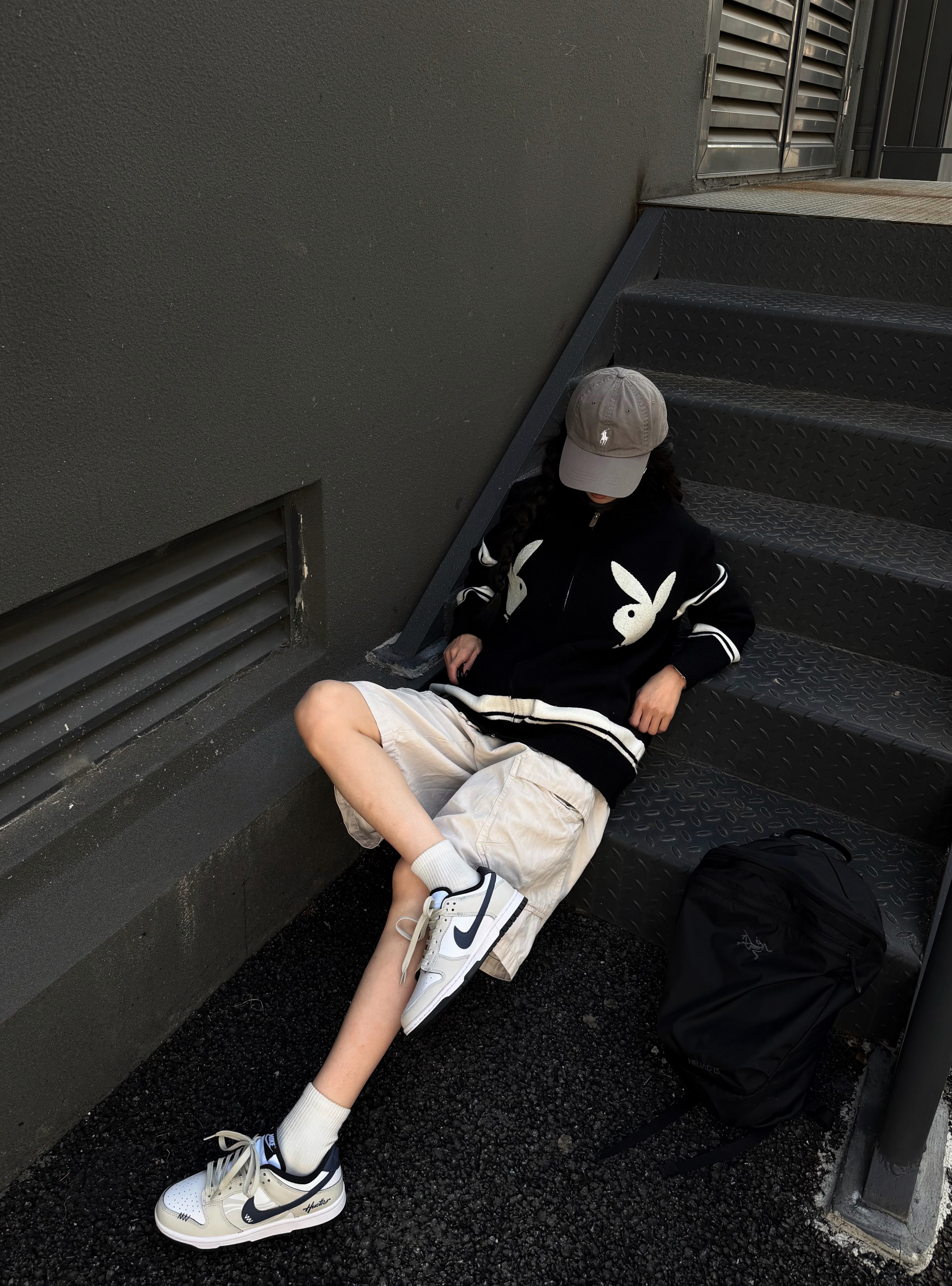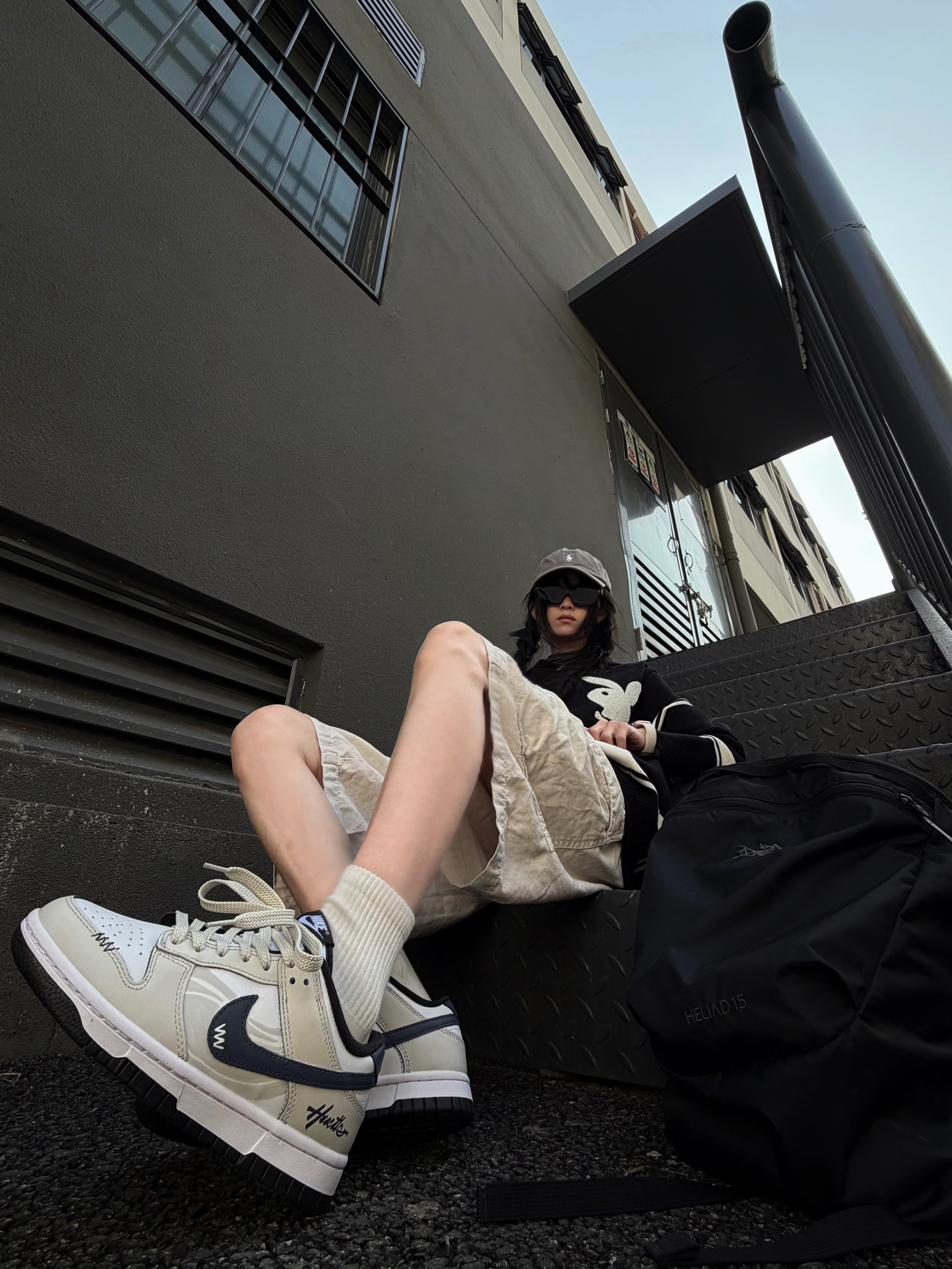黑白Dunk经典黑白配色永不过时 适配各种穿搭风格 今日是黑白毛衣➕米白色工装七分裤的搭配 再来双Nike的黑白板鞋 上脚轻便舒适 日常搭配很OK 一整个简约干净的搭配完全不挑人!