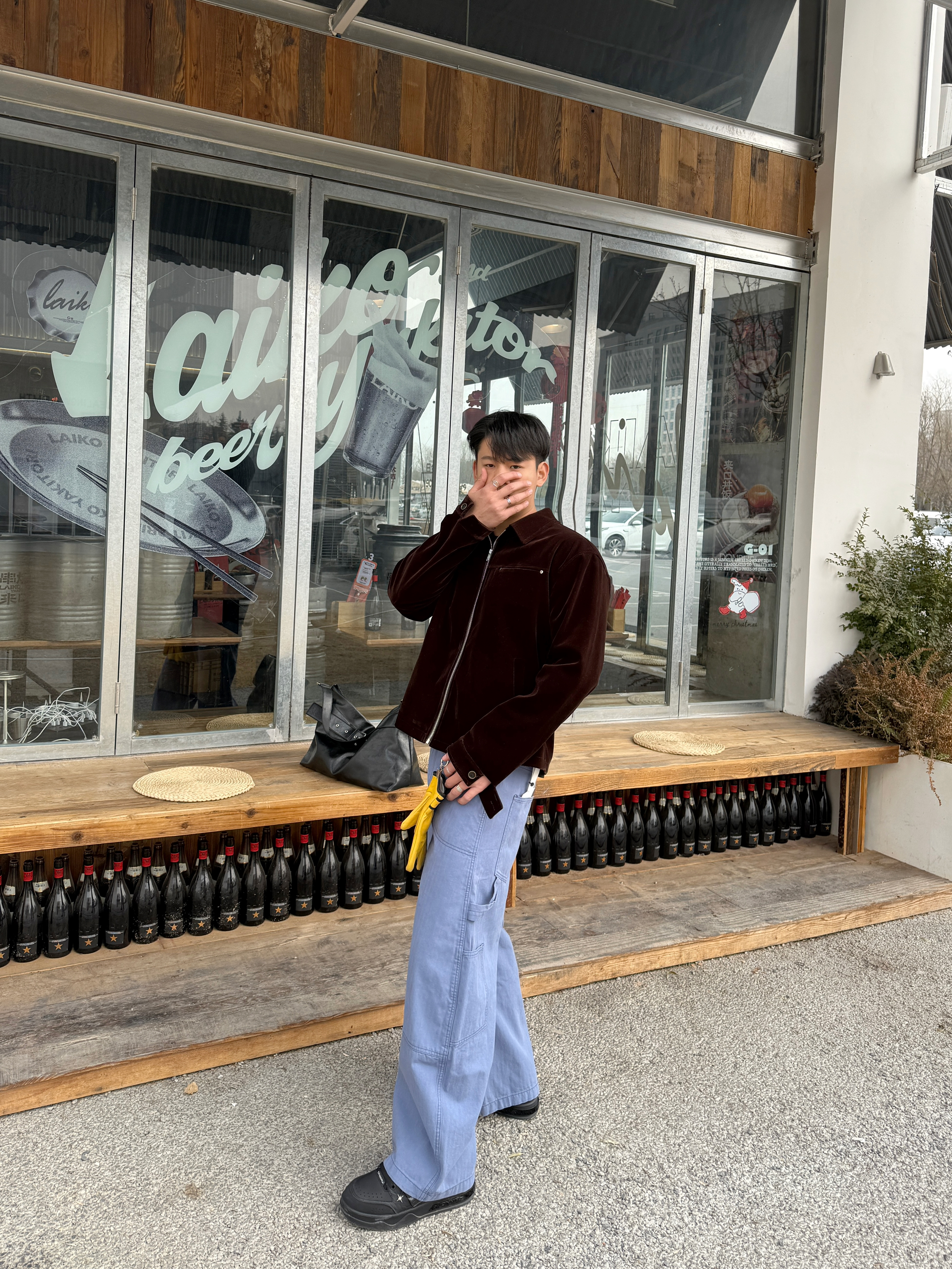早八怎么穿可以摆脱路人感 来看看我的早八无脑OOTD吧 上衣我选择一件老钱风夹克 正肩版型穿起来有型还显高😎 内搭来一个黑色基础款 这样显得干净不邋遢 裤子我选择一件蓝色工装裤 面料是工作裤面料,垂感挺不错的 早八这样穿简单不费力!