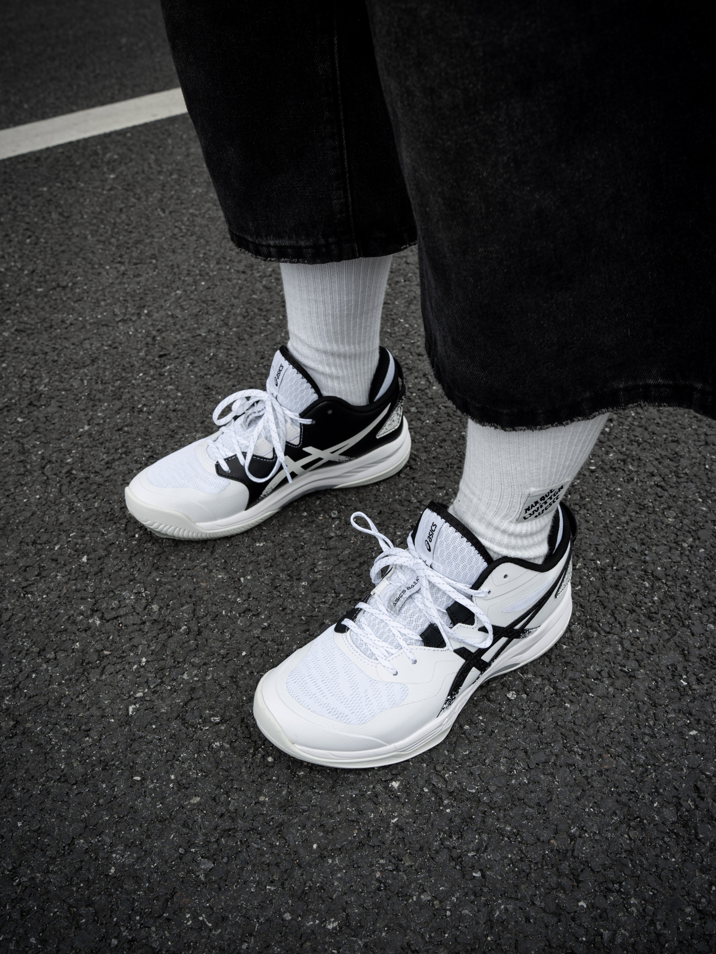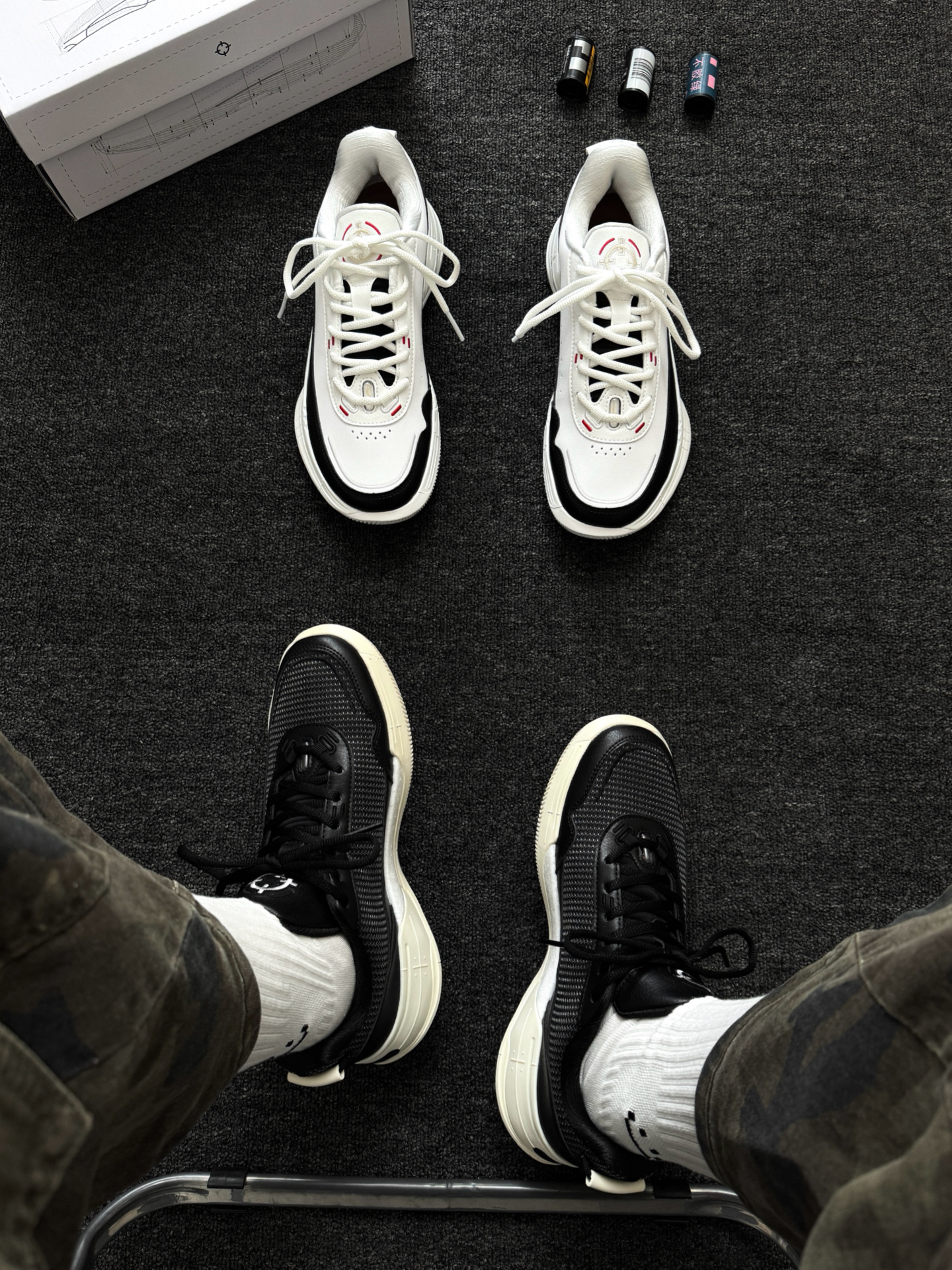 ~ 给大家分享一双 #ASICS 的黑白拼接篮球鞋👟 这双的鞋型是有点偏复古的🤠 侧面看这双鞋会有一双顶两双的感觉 网面的设计也是比较透气的 试穿下来抓地力也是比较强的 4张出头的价格也是蛮合适的👏🏻 尺码小建议: 徐哥平常穿的40这双40的刚好合适💡 #红包到手球鞋就有 #小孩哥寒假打球穿什么 #新鞋零时差3月 #此人鞋商极高 #asics篮球鞋