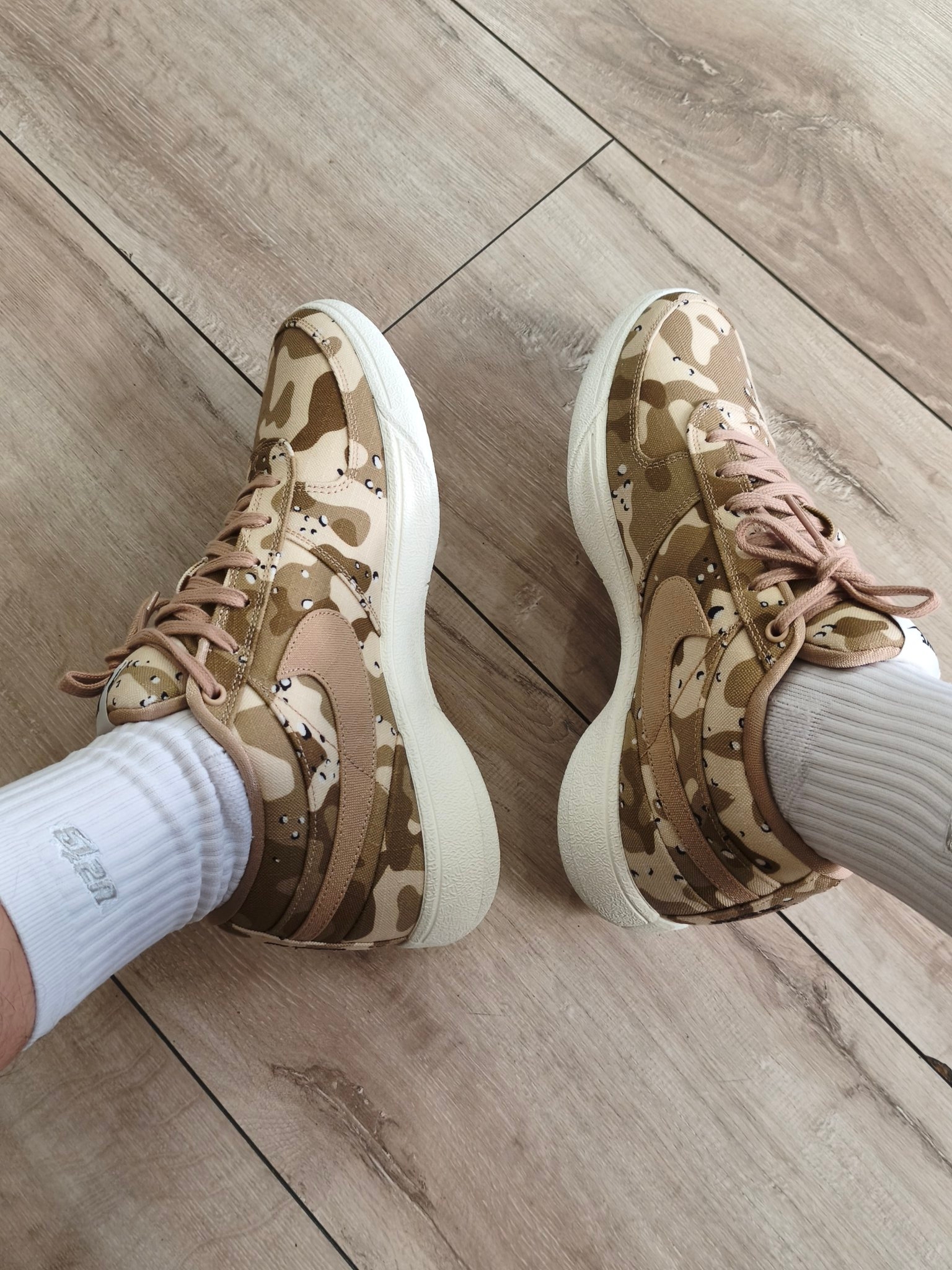 #此人鞋商极高 布克一代的这个沙漠迷彩配色,官方都降到360了,之前四五百的时候扭扭捏捏,降到这个价真的是毫不犹豫了。刚出的爱德华兹二代和hellstar联名貌似国内还没发售,代购价是将近3600,配色类似,都是球星款,你怎么选?[耍帅_blue][耍帅_blue][耍帅_blue] 布克一代要注意鞋码偏小,平时我都是41码,这个必须要选42,而且对高脚背也不友好。入手要注意哦。[机智_blue...