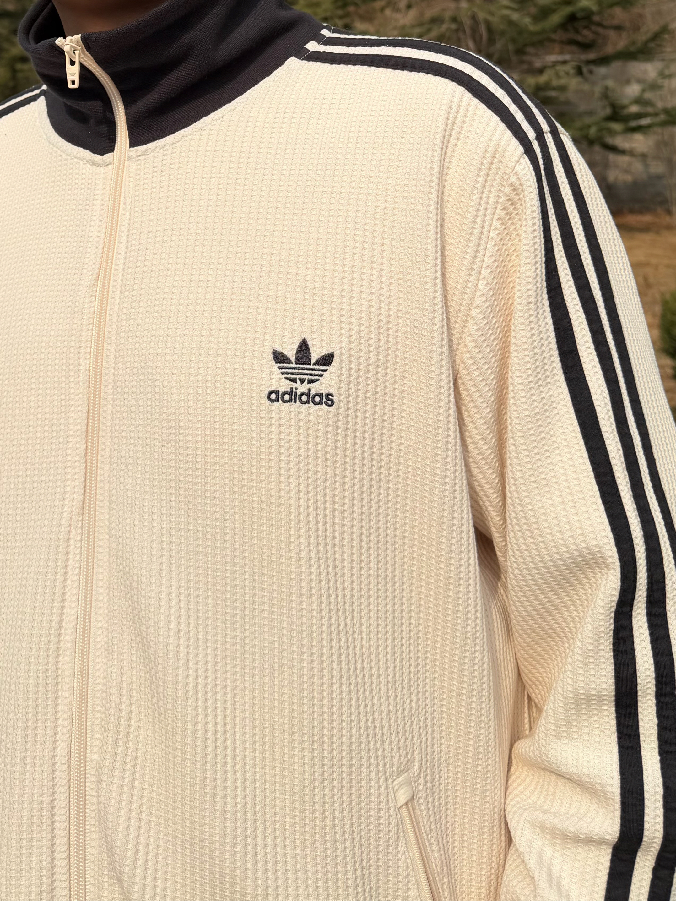 本篇笔记关联了【雅MIYAVI同款】adidas Originals/三叶草 三条纹系列立领防风耐磨棉质拼接华夫格夹克 JW0110 JX2804 JW0109 米白等商品,为用户提供真实的使用体验和购买参考。