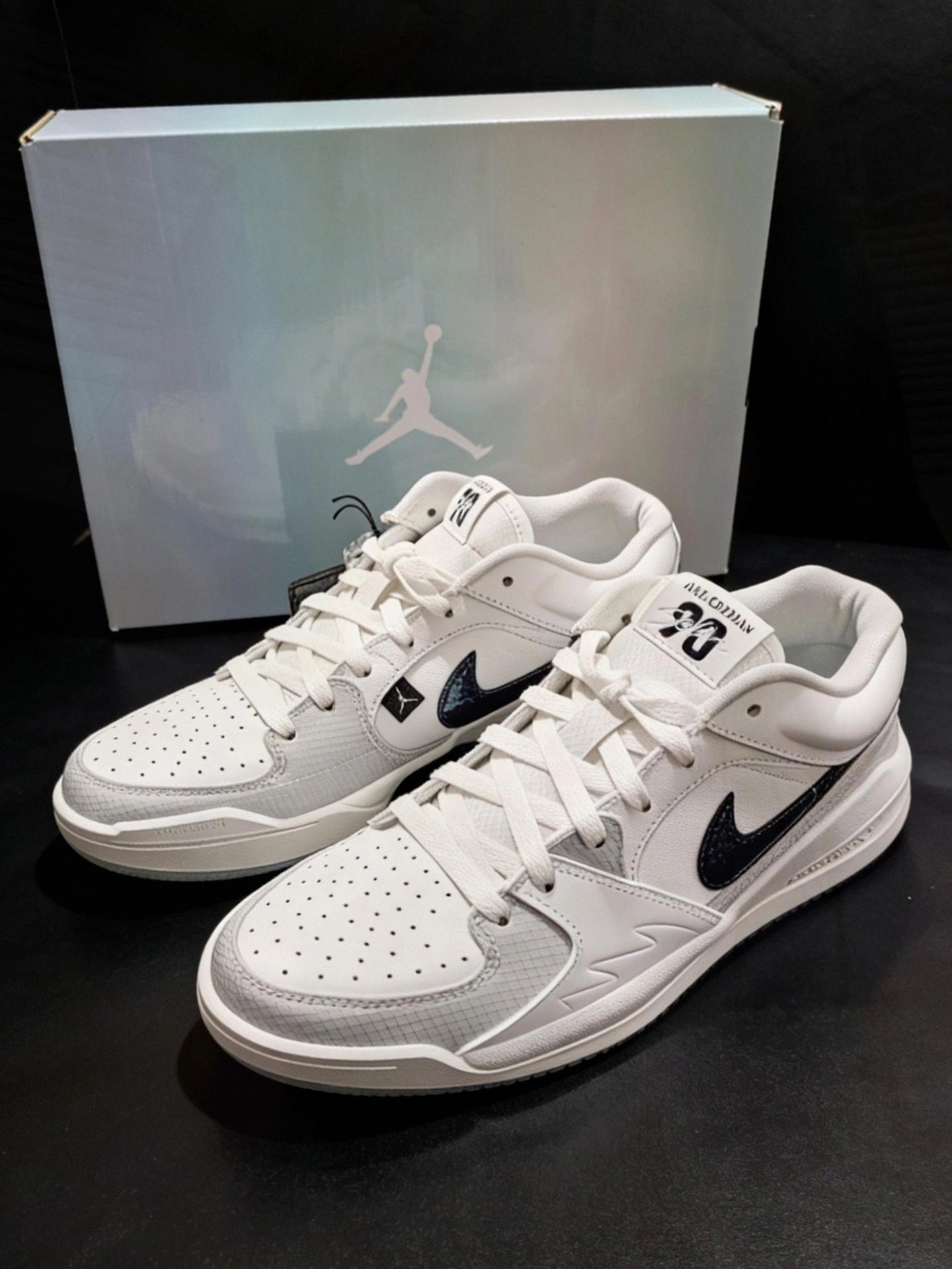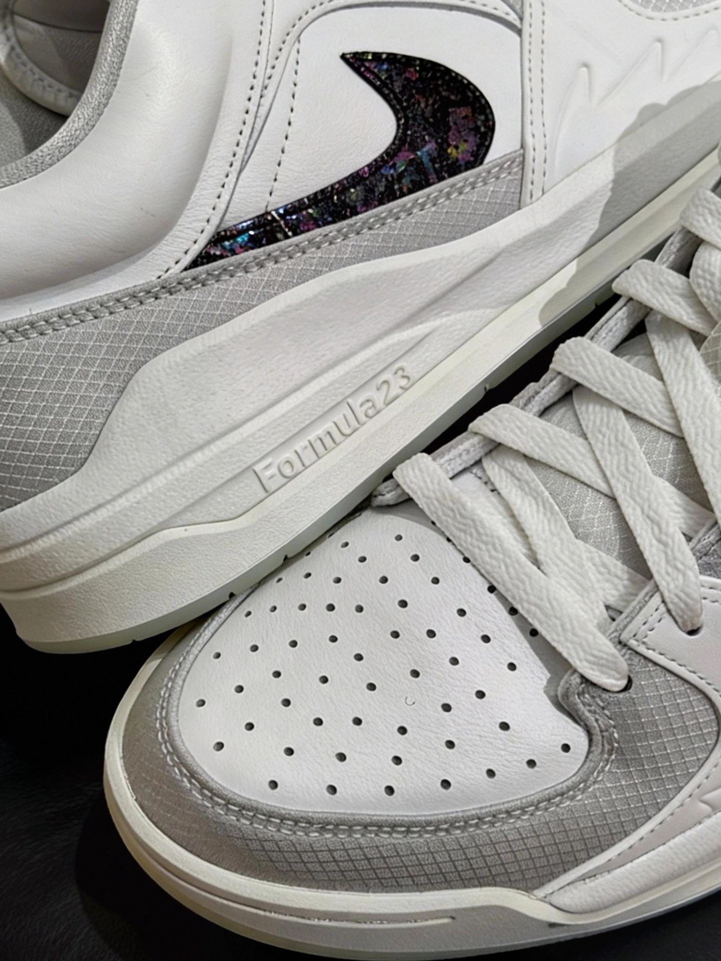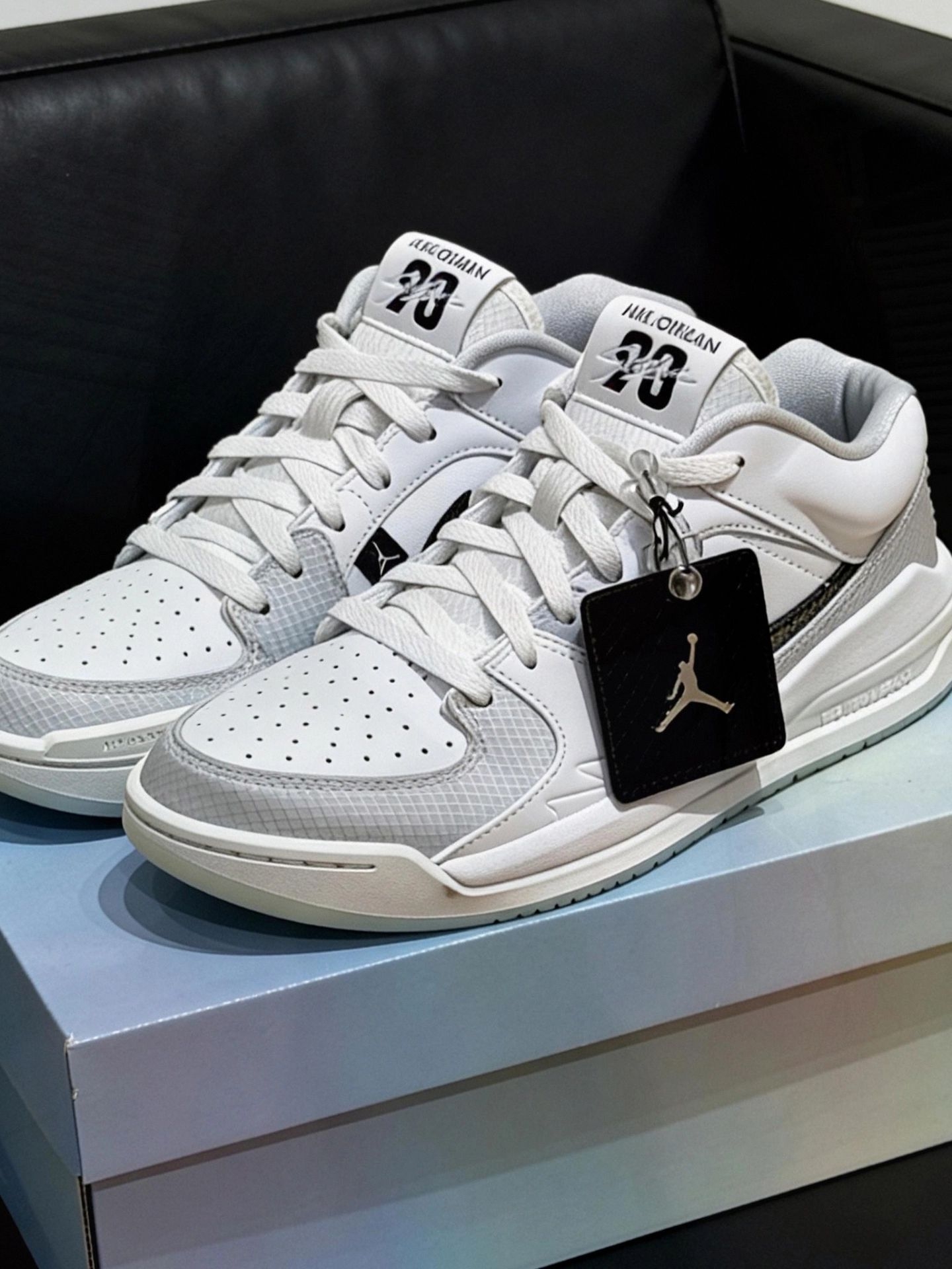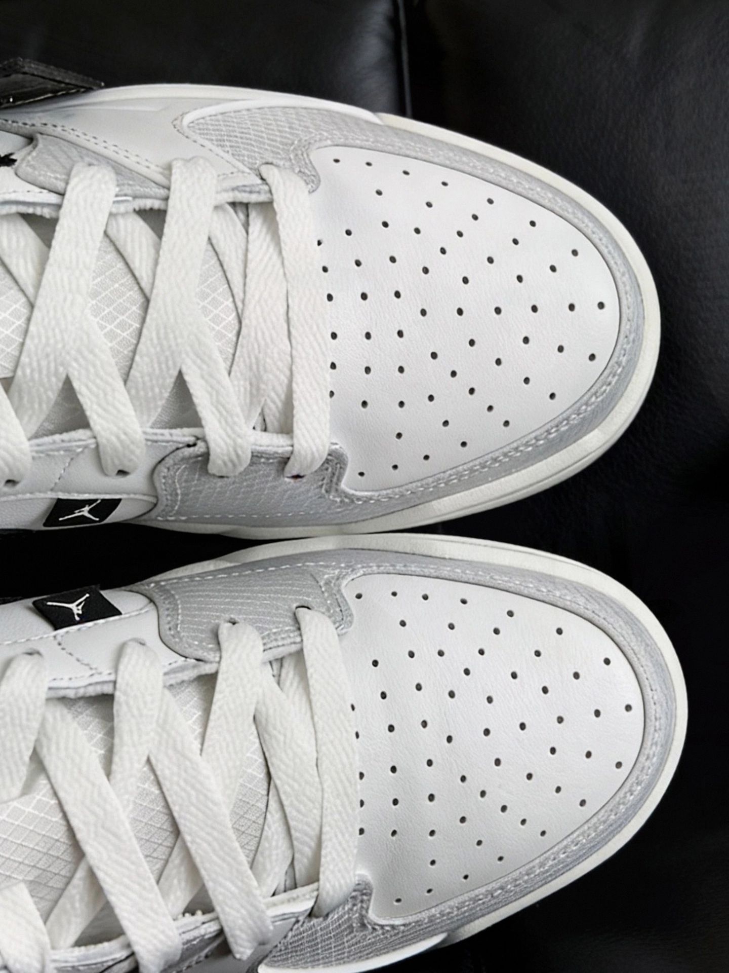 新入的这双 Jordan 白灰运动鞋穿了几天,来分享下真实感受~白鞋身拼灰网面,搭配黑色 Swoosh 细节很耐看,鞋头有透气孔,夏天穿不会闷脚。,走路脚感很有弹性,日常穿实用性不错的👟#耐克 #灰白配色Nike #灰白运动鞋