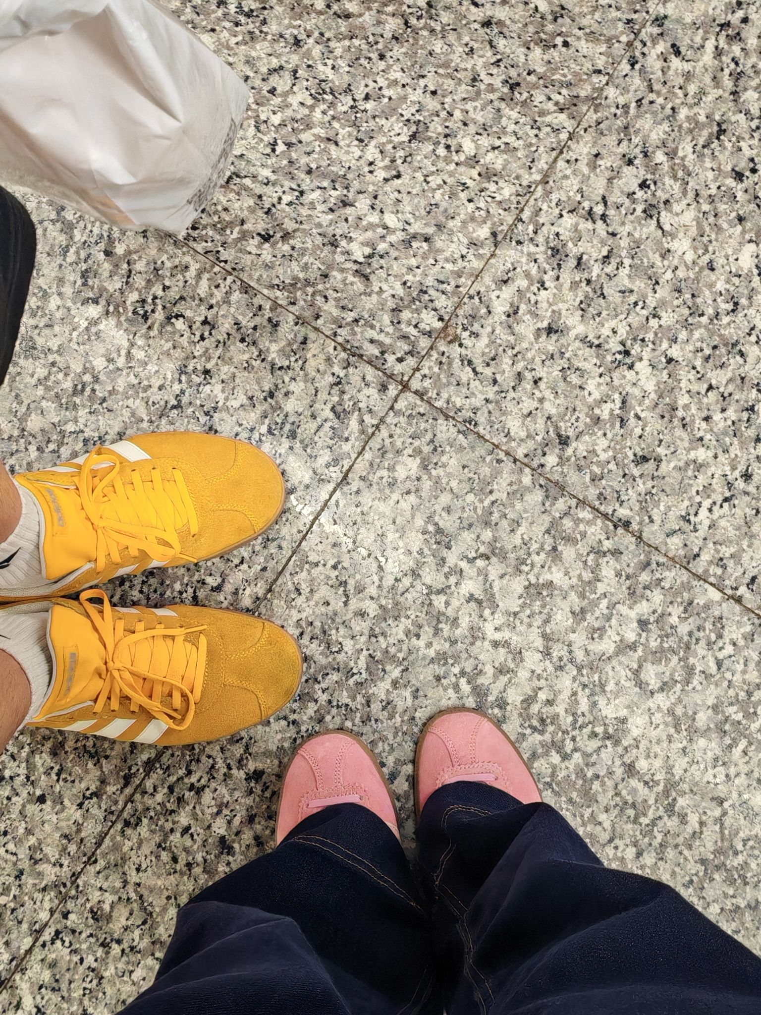 👟鞋子名称:Adidas 🔍分享理由:超适合拿来做情侣鞋,非常亮眼,百搭 🤔整体感受:穿着舒服不磨脚,尺码合适