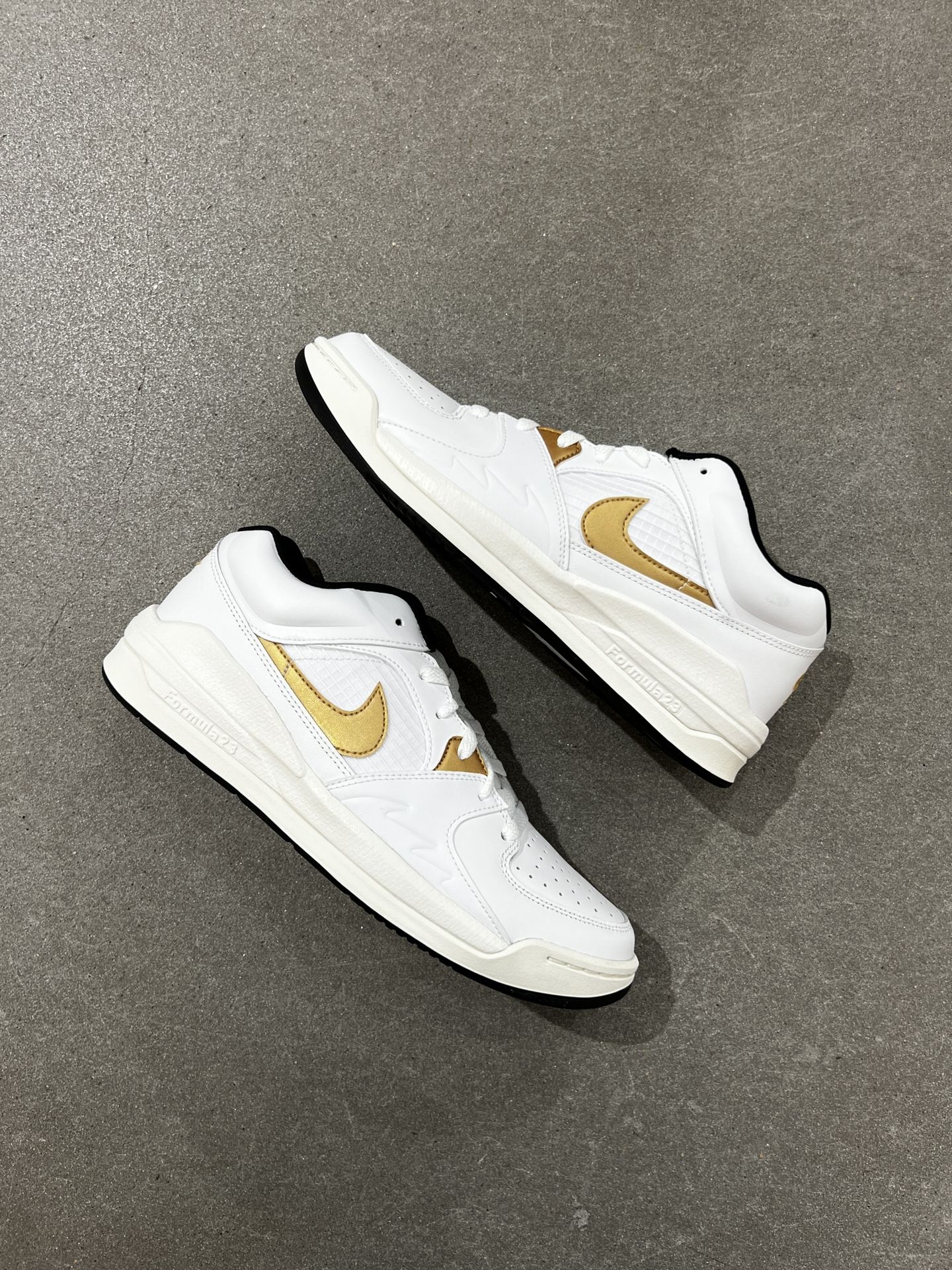 Jordan Stadium 90 白金配色休闲鞋,不仅仅是一款鞋,更是一种时尚的象征,一种个性的表达。它完美融合了Air Jordan 1和Air Jordan 5的经典元素,同时又加入了独特的创新,让这款鞋款焕发出了全新的生机。 白色的鞋身,搭配金色的细节装饰,无疑是这款鞋最大的亮点。白色的鞋面,给人一种清新自然的感觉,而金色的装饰则增添了几分高贵与华丽。这种颜色搭配,不仅符合现代审美,同...