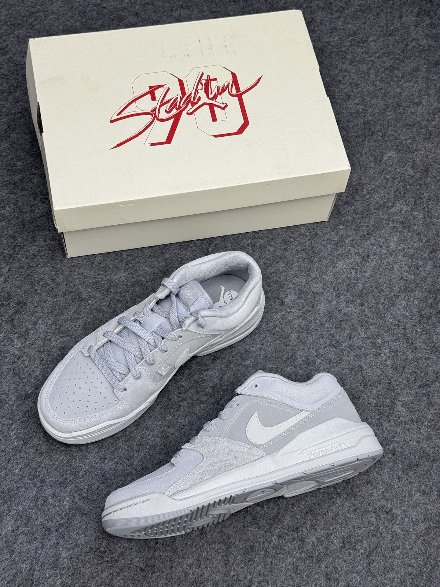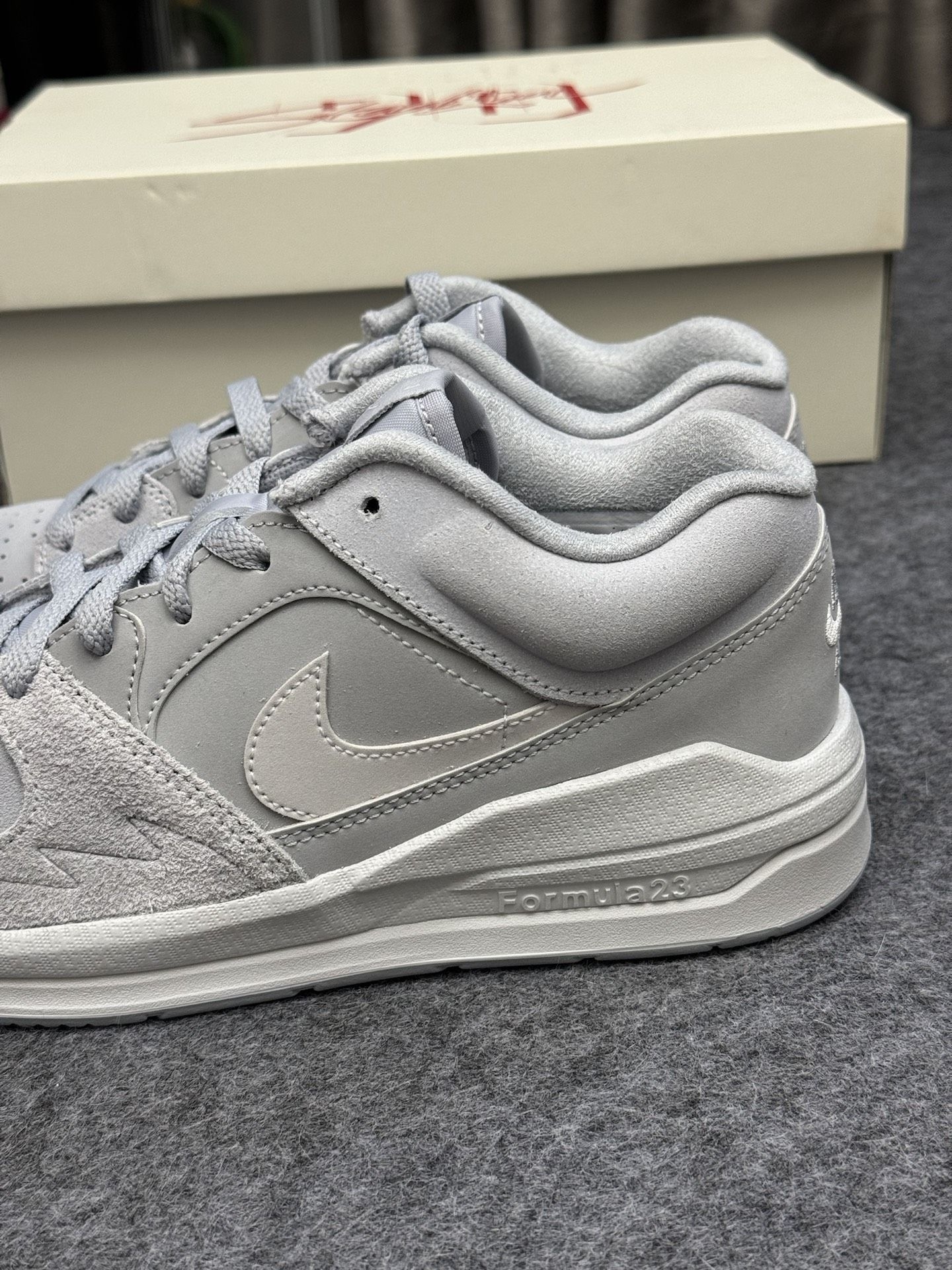灰色的球鞋真的很得人心 简约的配色,日常百搭😎 多种材质拼接而成,很有层次感 唯一缺点不耐脏,相对不好打理 Formula 23缓震泡棉,脚感不错