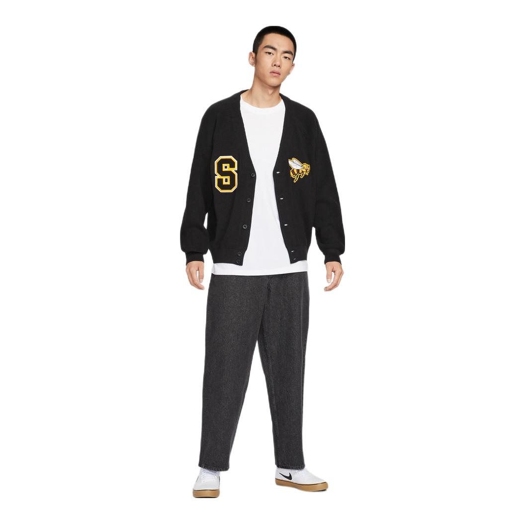 #早八无脑穿搭 休闲时髦舒适,运动风出街穿搭 上衣:nike sb 黑色系⚫开衫针织衫 休闲保暖舒适 内搭:卡通字母印花连帽休闲卫衣 裤子:s45 豹纹 印花 多口袋工装裤 鞋子:腰果花帆布板鞋