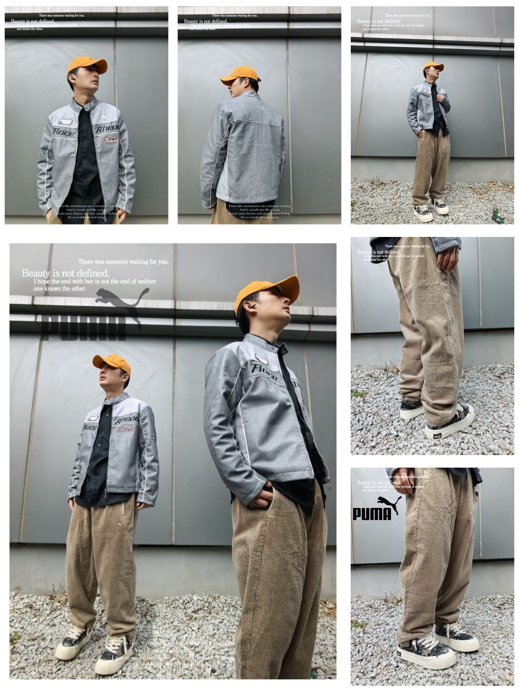 #早八无脑穿搭 看完飞驰人生 无限种草赛车服夹克 上身是真的帅😎 上衣:puma 马年限定赛车服皮衣夹克 皮革舒适衣型宽松 下装:puma 灯芯绒 直筒休闲裤 鞋子:帆布休闲板鞋
