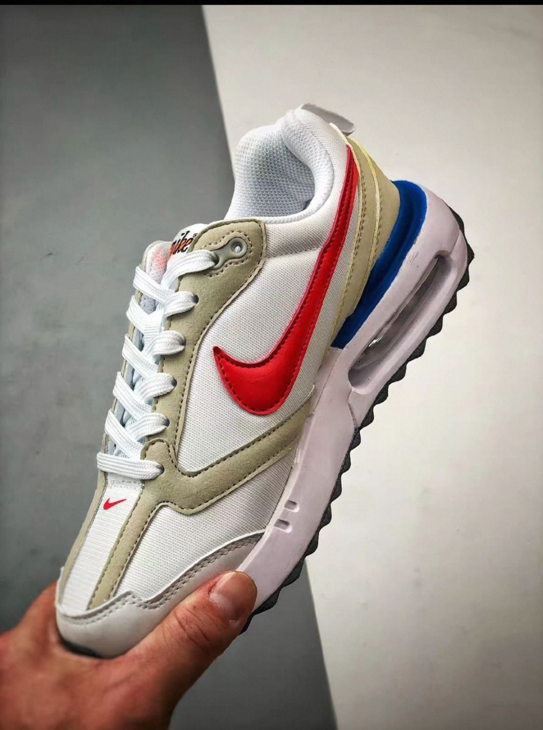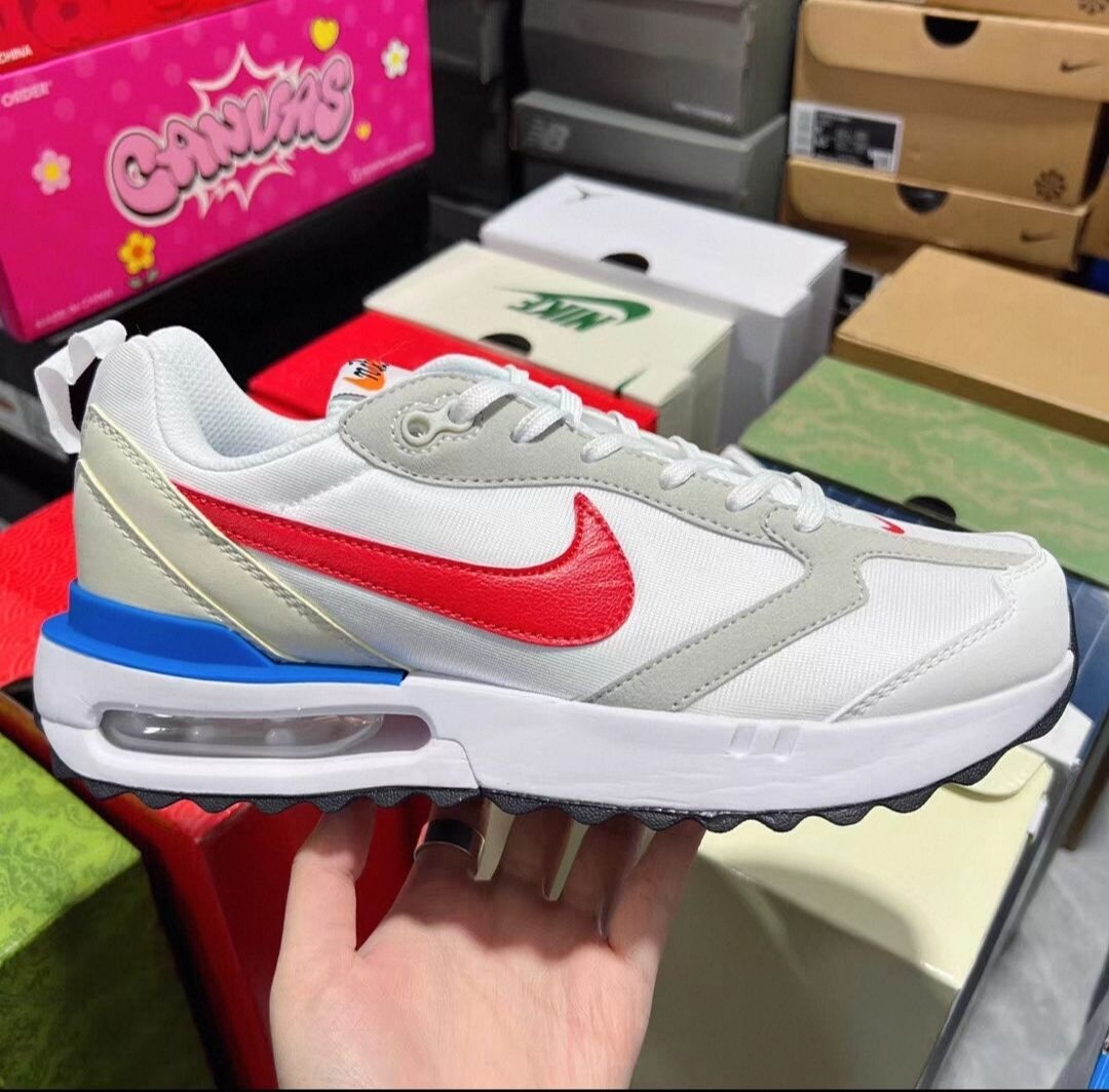 男生选日常鞋,就怕不好搭、走久脚疼、鞋底不耐磨。Nike Air Max Dawn白红蓝低帮款,刚好把这几个问题都解决,日常穿舒服又耐看。 鞋面以白色为底,搭配红蓝撞色,干净不花哨,不管配牛仔裤、运动裤还是休闲短裤都和谐,上班、出门玩、轻度运动都能穿。低帮版型走路灵活,不卡脚踝,比高帮更轻便,久穿不闷。 对比普通板鞋,它后跟带Air Max气垫,踩下去软弹,走几小时路脚底不酸,膝盖也没那么...