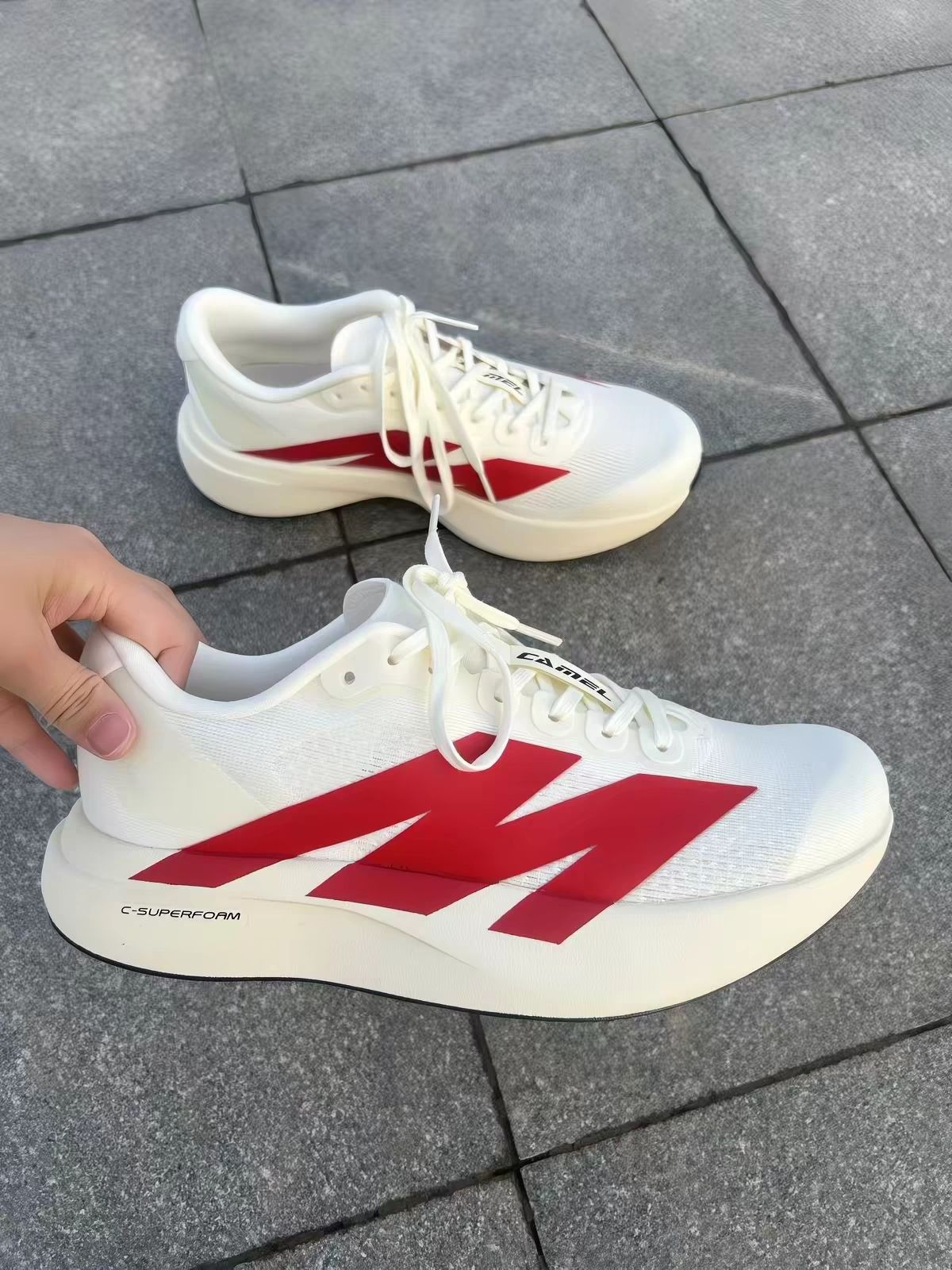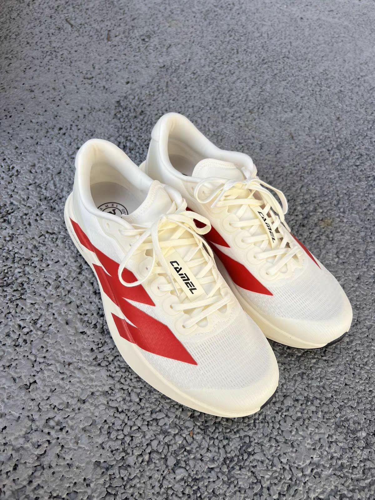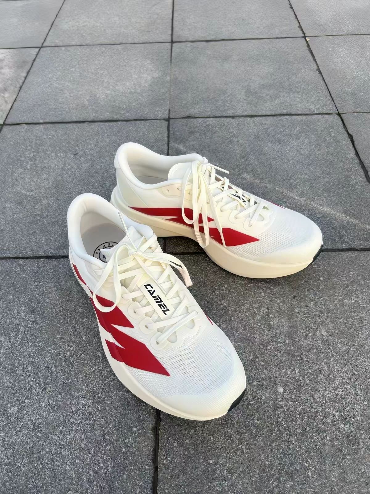 这双骆驼碳板跑鞋,奶白底色搭配醒目的红色闪电纹,复古又吸睛。全掌碳板加持,推进感直接拉满,巭LIGHT中底兼顾缓震与回弹,轻透网布透气不闷脚。无论是日常训练还是体考冲刺,都能轻松hold住,性价比直接拉满!