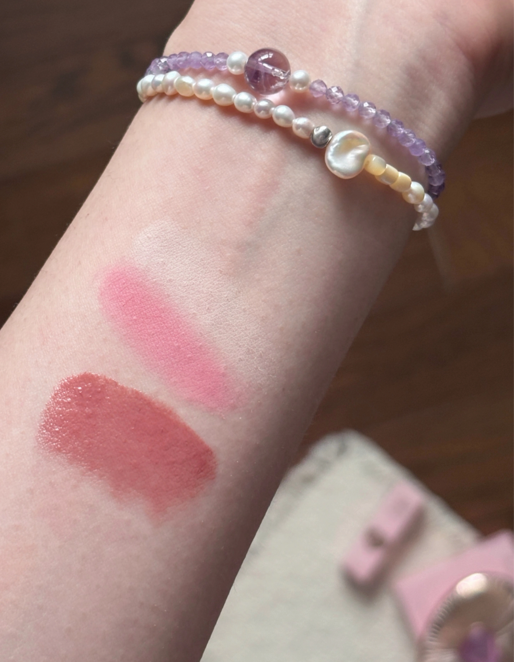 哈哈咱就是说CT美学一旦染上 就很难不爱咯! 就这样美美嘟迎接春天吧 当时看试色就疯狂心动 好像芭比玩具屋里的哈哈 拿在手里敲有质感 感觉是美美化妆的动力 氛围腮红色+嘭感提亮色 双色搭配就好妙~实用版贵气感拿捏 口红偏爱粉 是淡淡三文鱼奶茶色 淡颜缎光色 嘎嘎显气质啊谁懂!