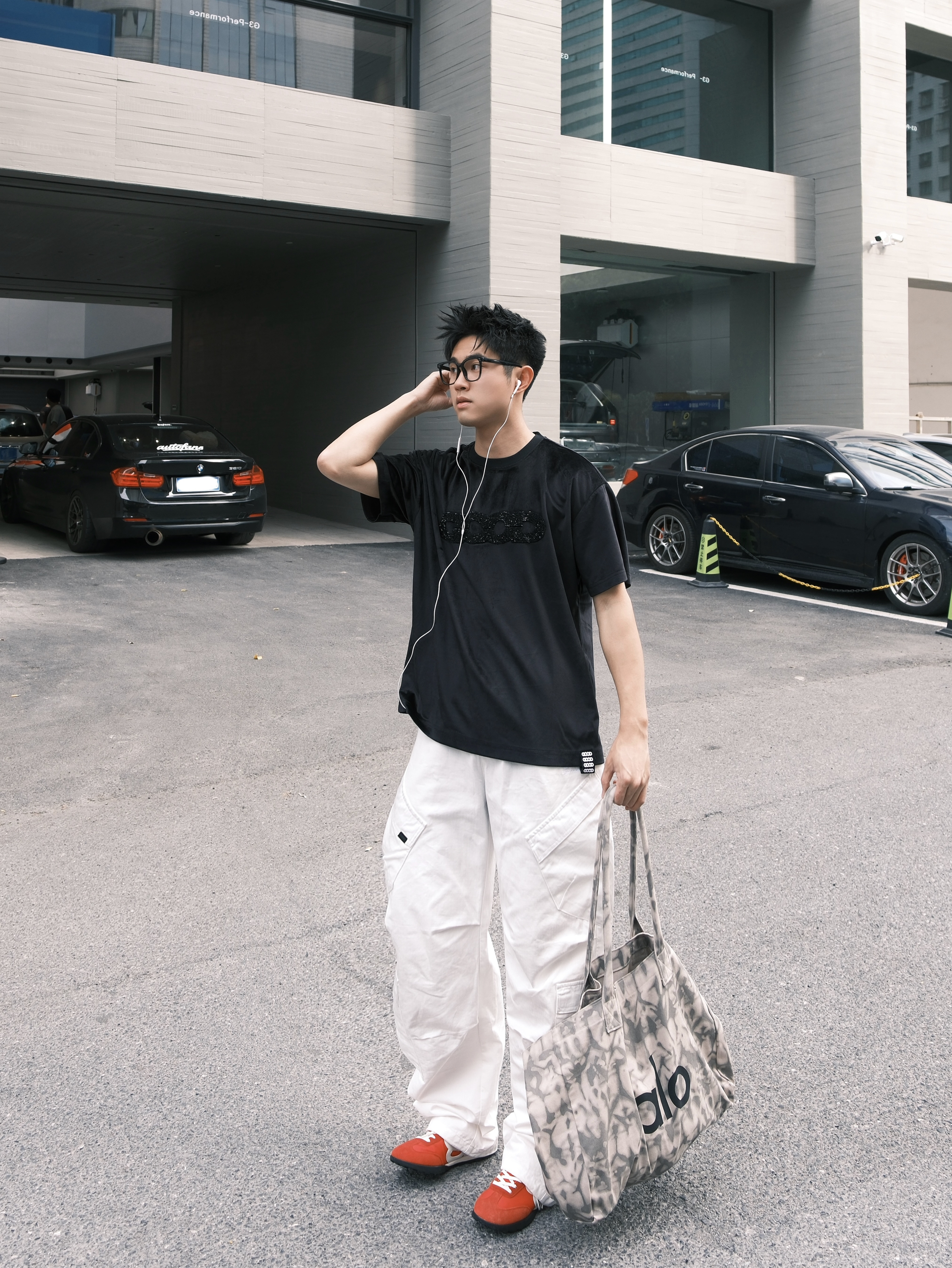 一到春夏季节,搭配更偏爱简约为主 要我说,不费脑的穿搭当属黑白配 今天出门散散步🚶🏻顺便记录下ootd 上衣是 GOOD 小领口美式T恤 胸前珠片刺绣点缀还蛮抢眼的 面料柔软,穿起来舒适感持续在线 下装是白色工装裤和红色小花鞋 随便往一站都可以嘎嘎出片嘞