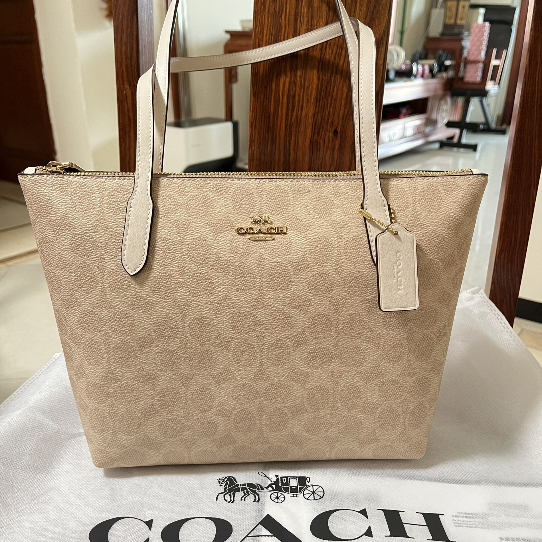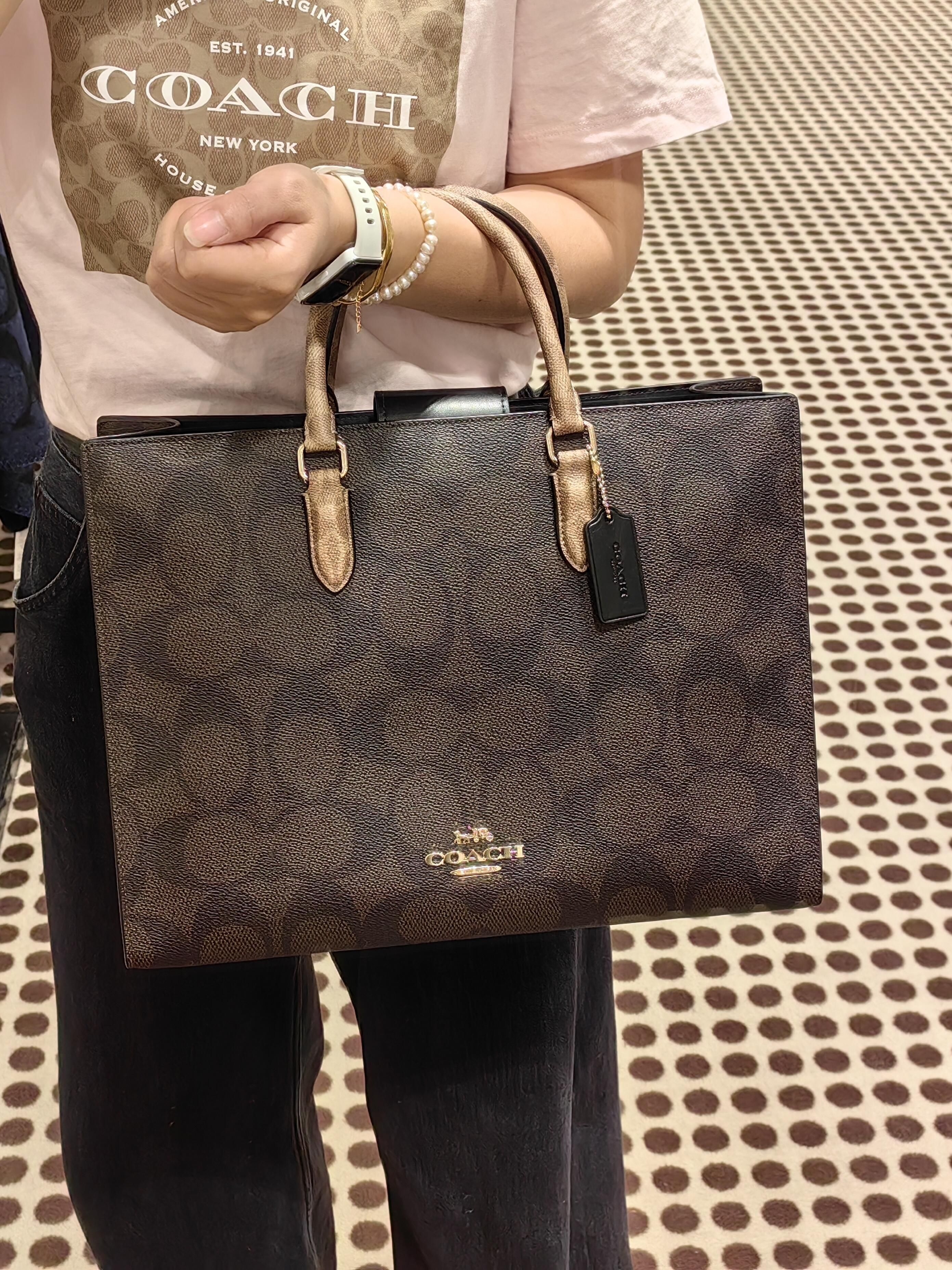 本篇笔记关联了Coach Fiona 24 中号 品牌印花金属Logo帆布拼皮革手提购物袋托特包单肩包 沙黄色拼粉笔白色等商品,为用户提供真实的使用体验和购买参考。