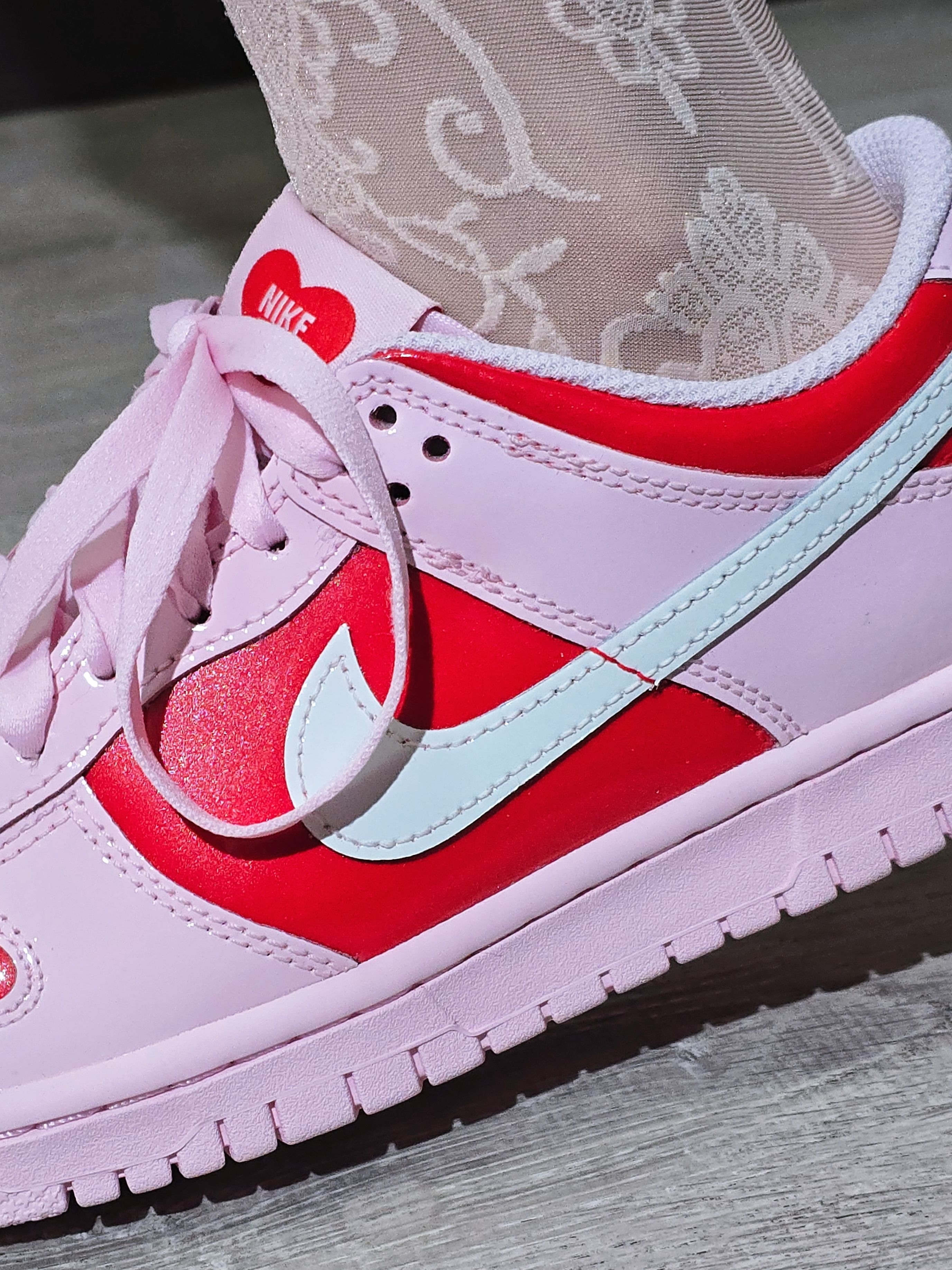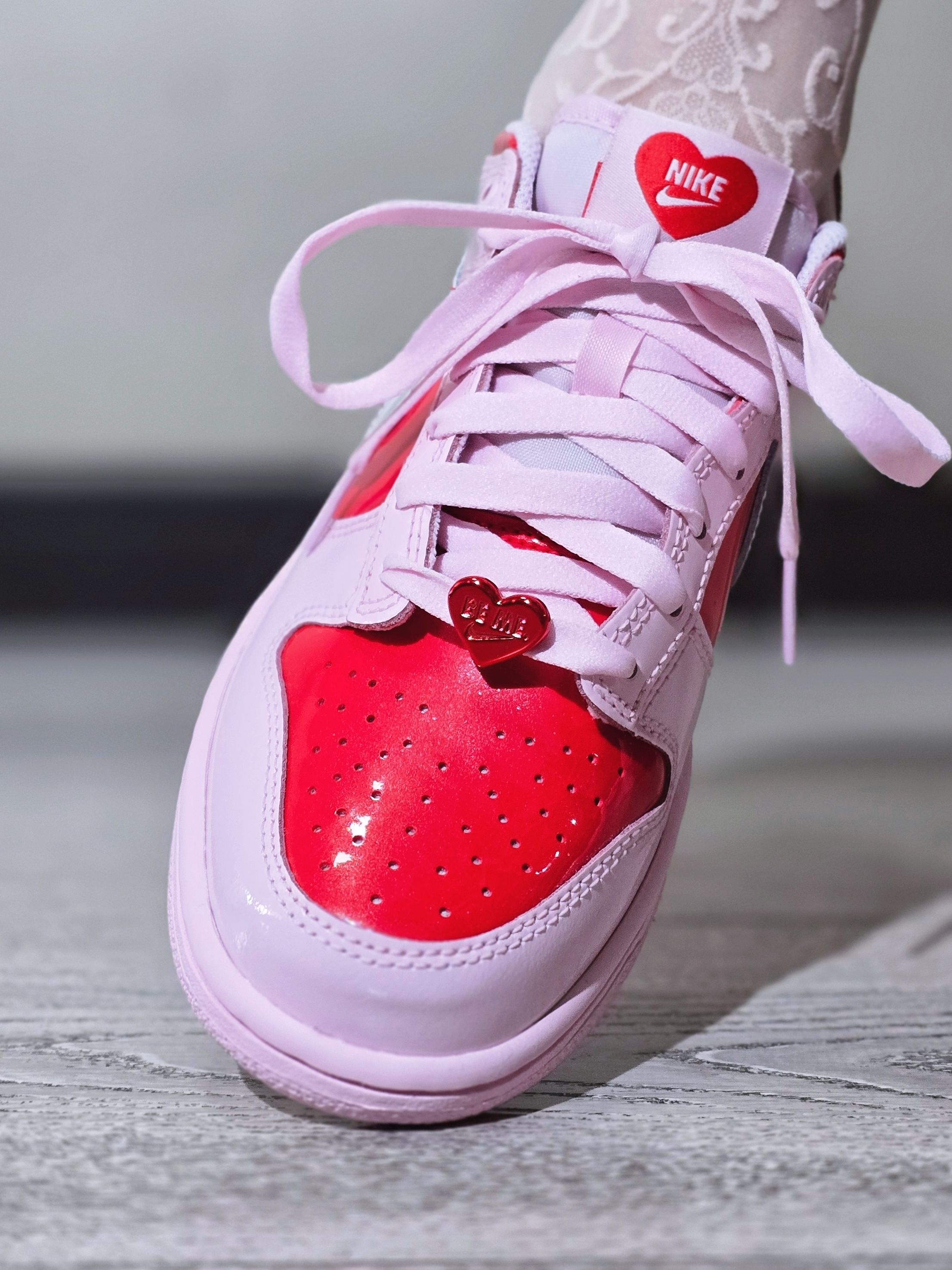 甜美返校穿这双~肯定错不了啦!Nike Dunk Valentine's Day情人节配色,自带甜美+浪漫气息,爱心小细节也好戳人哦!4开价位对学生党来说也很友好哎!
