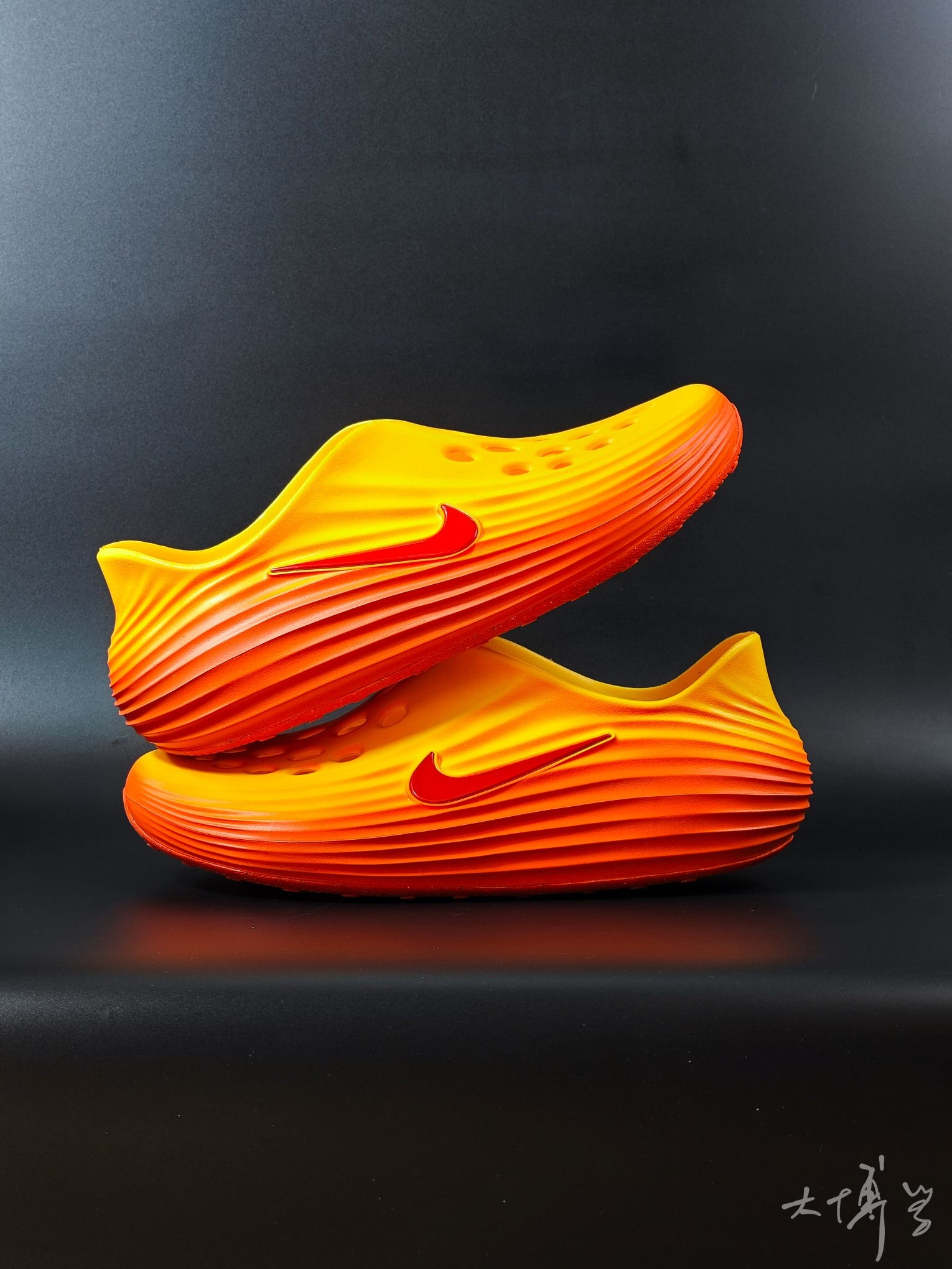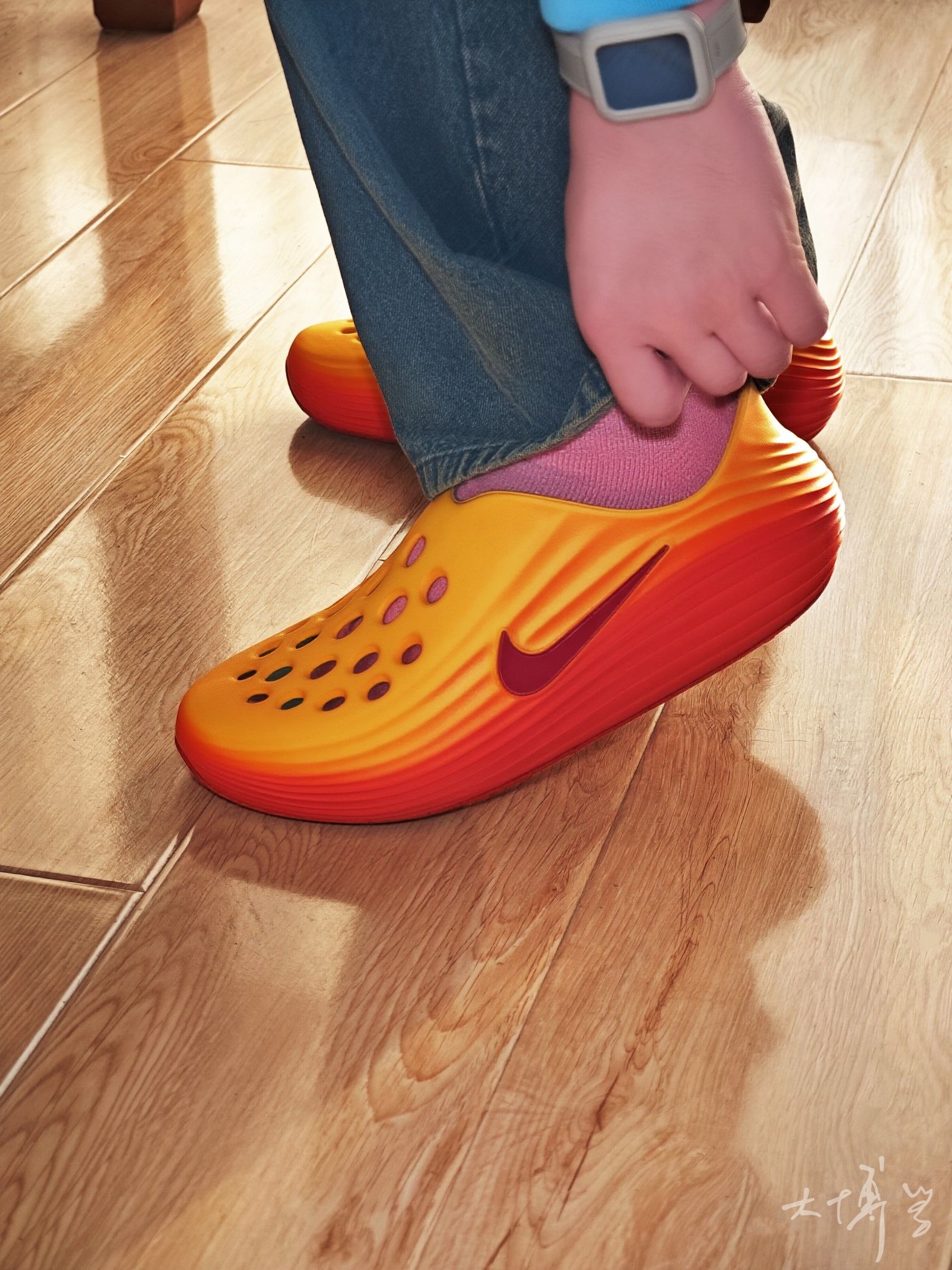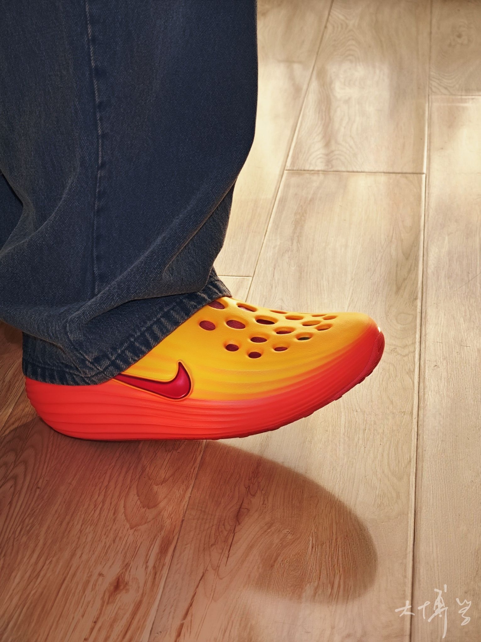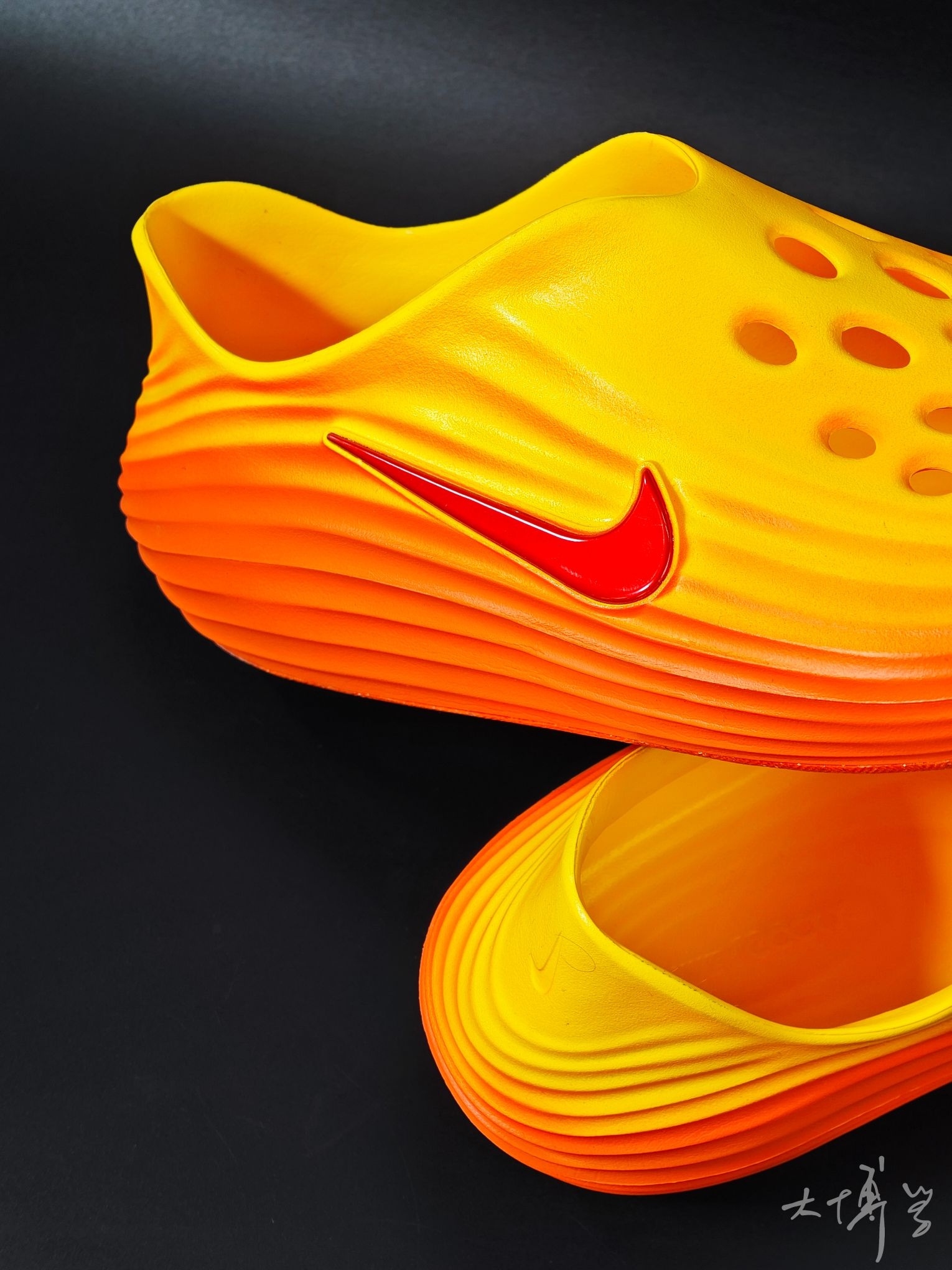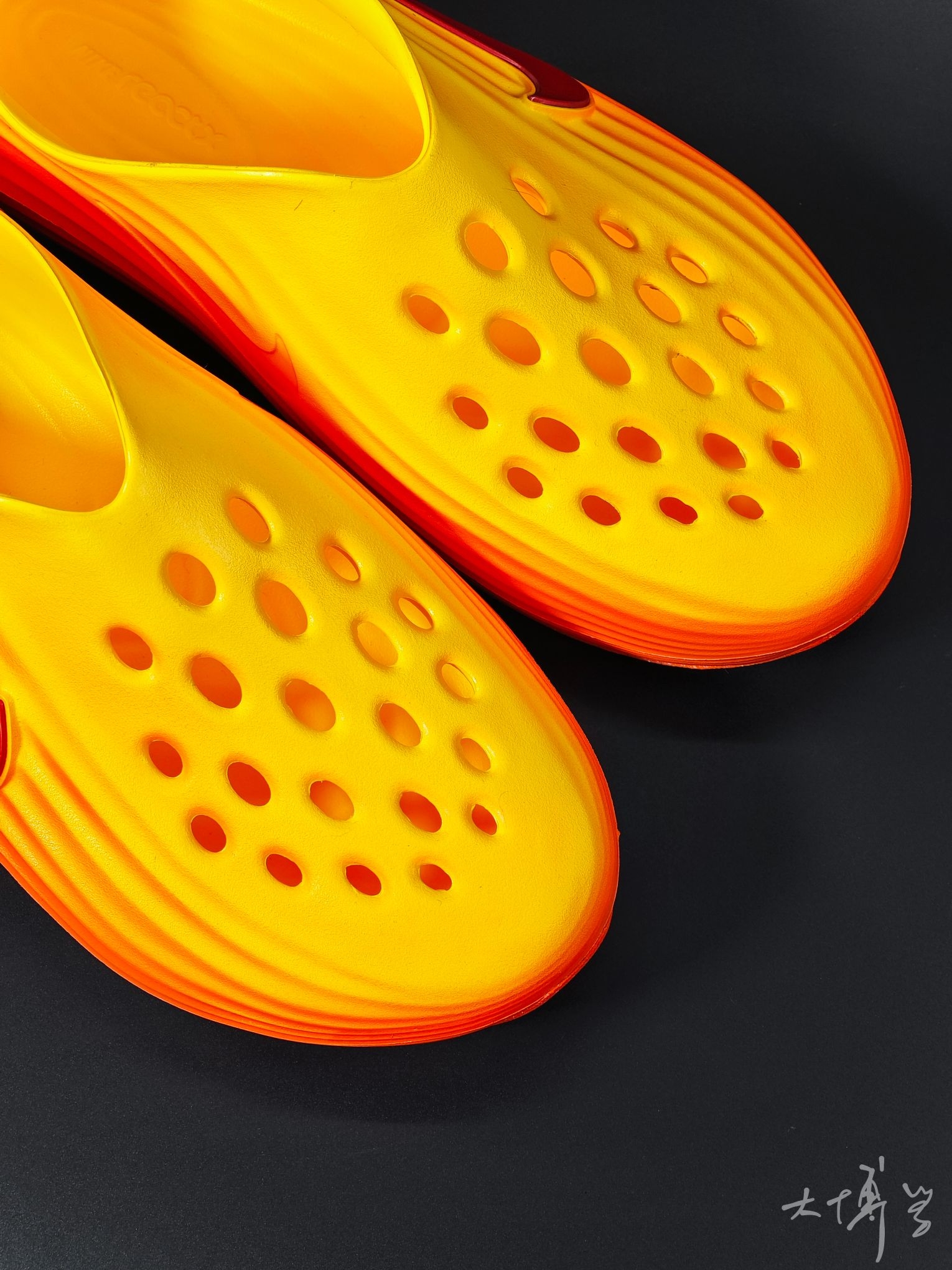 一款黄橙红自然过渡的洞洞鞋 除了颜色我很喜欢 鞋面流畅波纹线条 也是科技感十足 清爽不闷脚,夏日刚需 如果像我一样搭袜子穿 建议可以买大一码