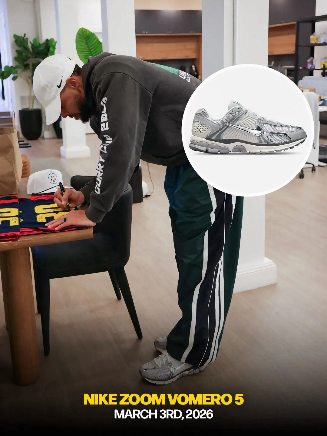其中,2月20日乐天×Canvvs球鞋设计大赛中,上脚客制版运动鞋。 2月21日电影《GOAT》首映礼现场,上脚Air Jordan 4 Retro“黑猫”。 2月22日勇士主场对阵掘金的比赛期间,上脚NBA名宿迪肯贝-穆托姆博签名鞋adidas Mutomob1。 2月25日上脚巴黎奥运会美国男篮纪念配色Nike Air Max 1。 2月27日上脚Nike Air Max 95。 2...