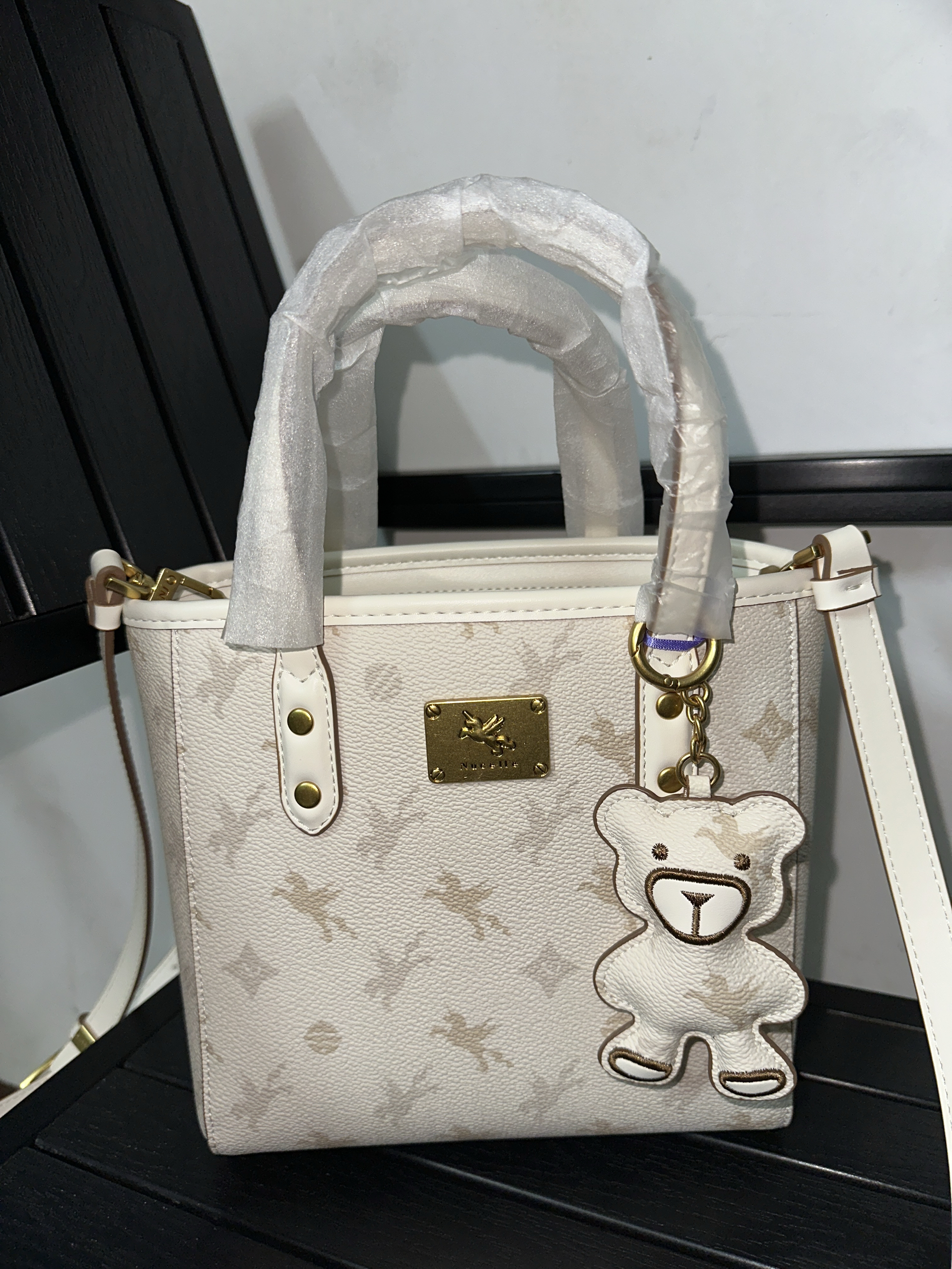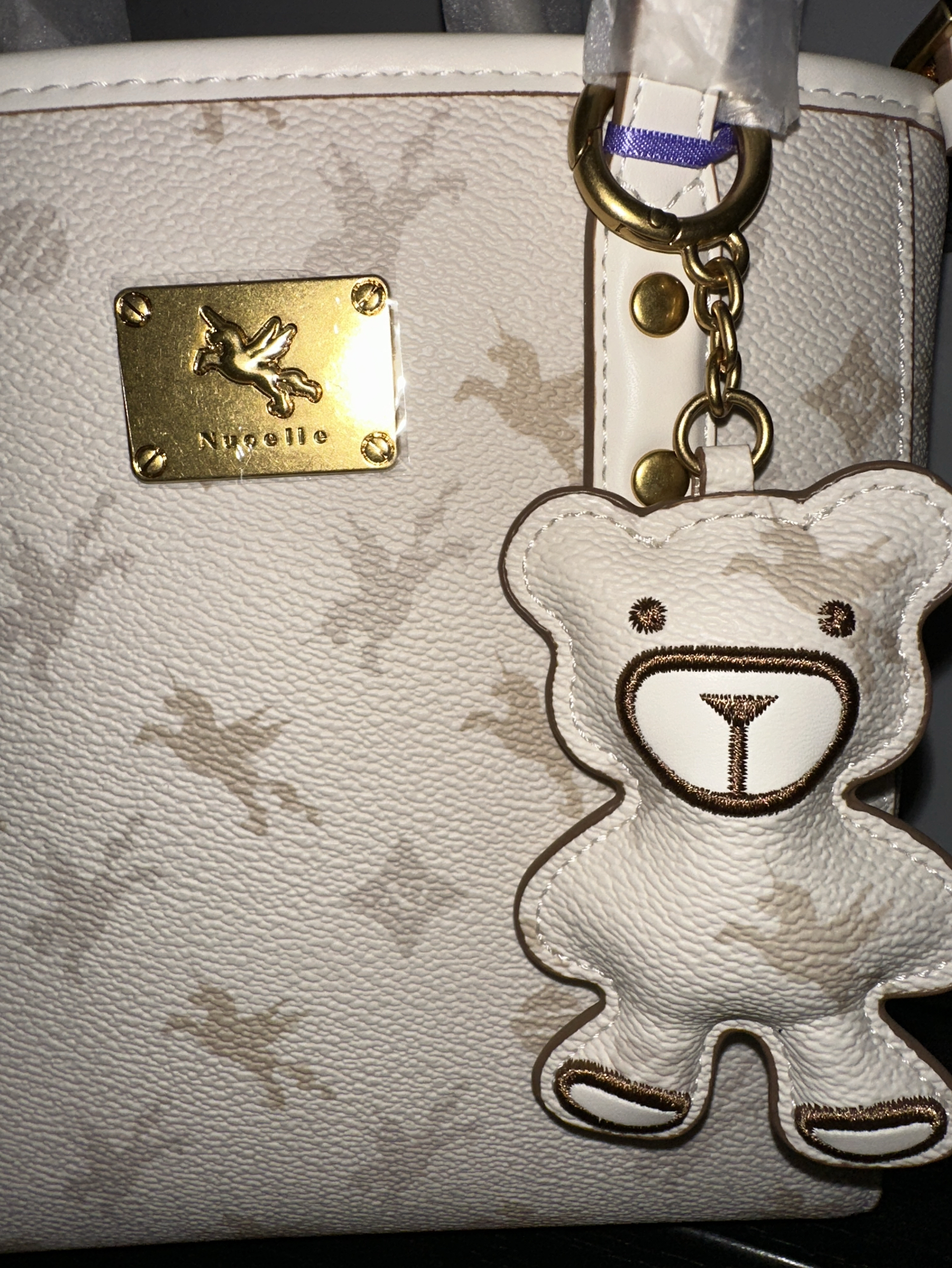 挖到宝了!NUCELLE纽芝兰这款飞马菜篮子包真的太戳我了~ 奶杏色的老花图案温柔又高级,原创飞马设计辨识度拉满,软萌小熊挂件更是点睛之笔,挂在包上随步伐晃动,甜妹感直接拉满💖