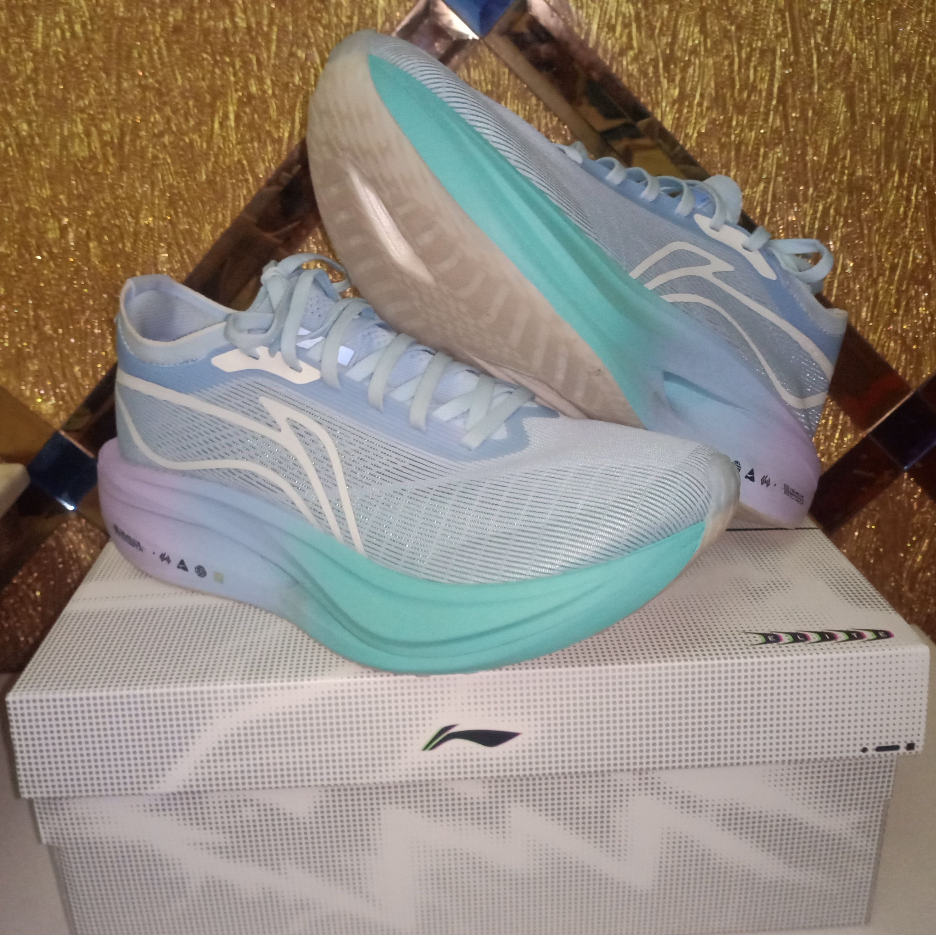 李宁飞电5E棉花糖配色 竞速颜值双在线 李宁飞电5E棉花糖配色,将梦幻颜值与顶级竞速性能完美融合。浅蓝鞋面搭配绿蓝紫渐变中底,清新柔和如云朵棉花糖,上脚吸睛度拉满。搭载超䨻中底与全掌T1000碳板,轻量回弹、推进强劲,长距离奔跑依旧稳定省力。䨻丝鞋面透气贴合,GCU大底防滑耐磨,兼顾日常穿搭与比赛竞速。无论是训练刷街还是赛场破PB,这双颜值与实力并存的跑鞋,都是跑者的理想之选。