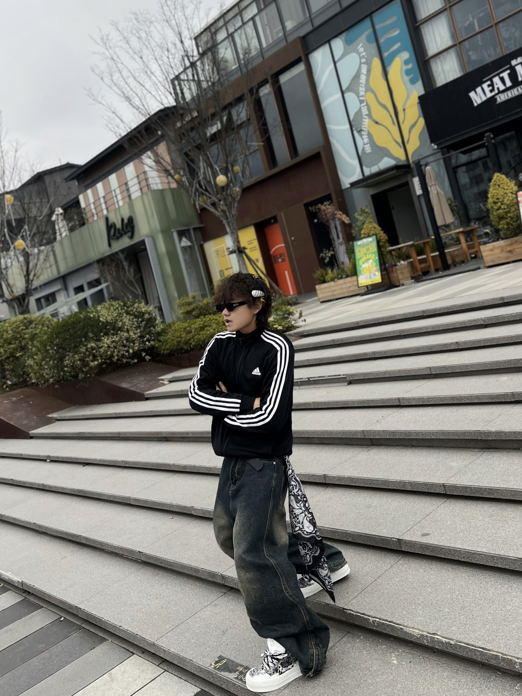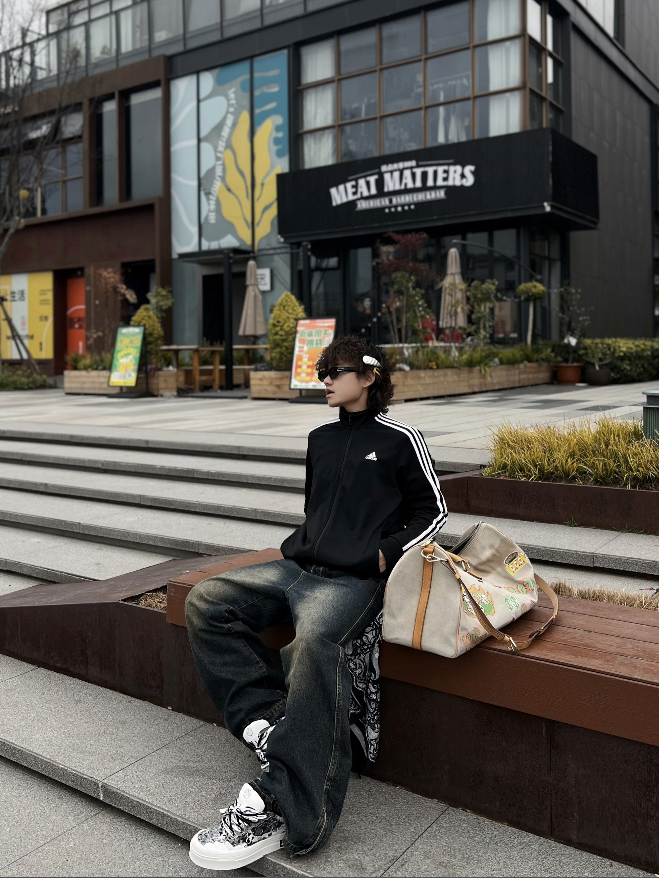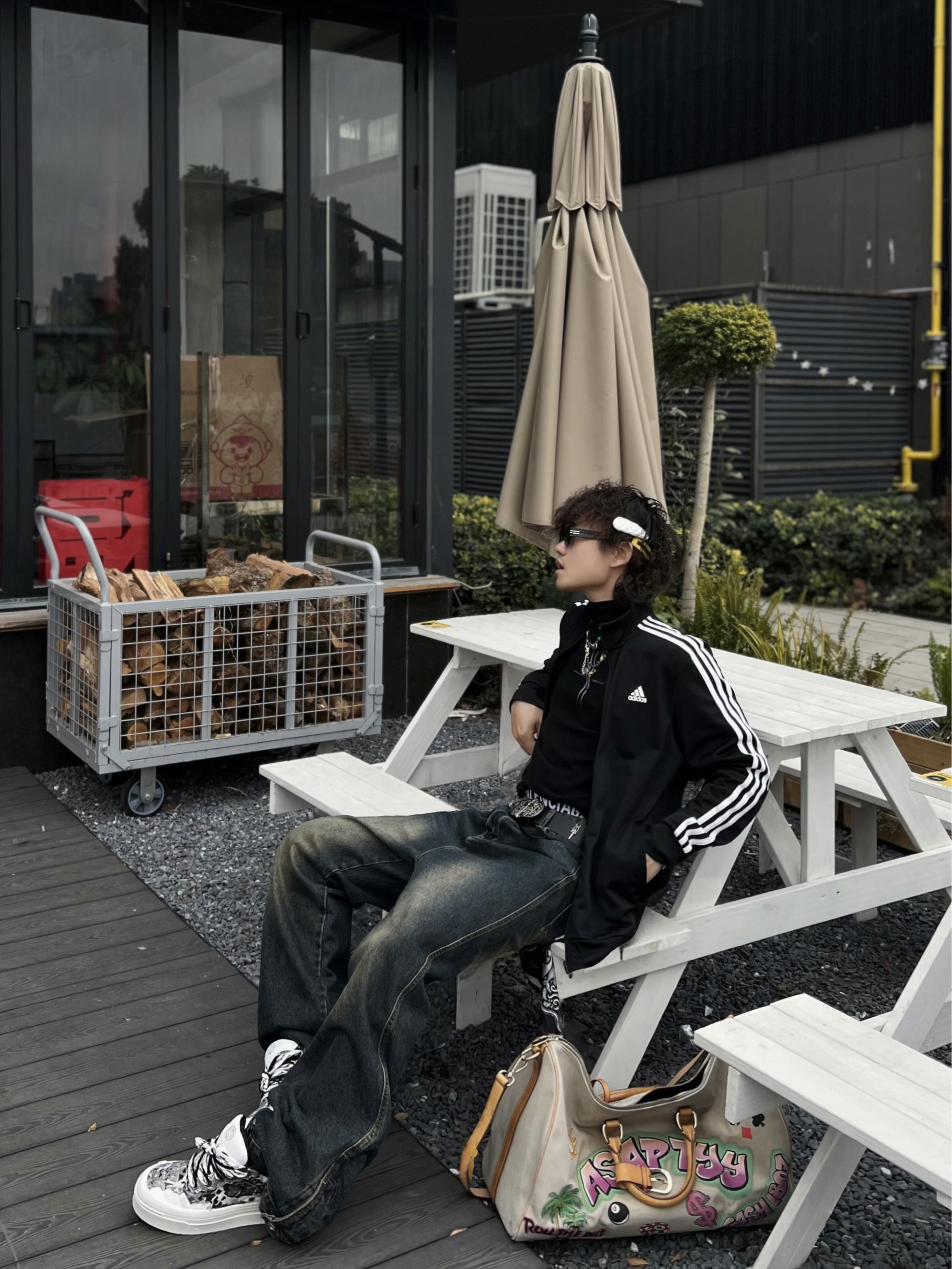Hi、这里是有点懒的薯条🍟~ ☑️长得帅不如穿得帅! 开春第一件事,把sagging裤子焊在身上👖 🔘黑白配色球鞋踩出街头态度,腰果花头巾一系,复古美式那味儿直接拉满🎨 Adidas三条杠外套+渐变牛仔裤,松弛感和痞帅感同时在线😎 🗼春天的街头,谁穿谁是焦点!