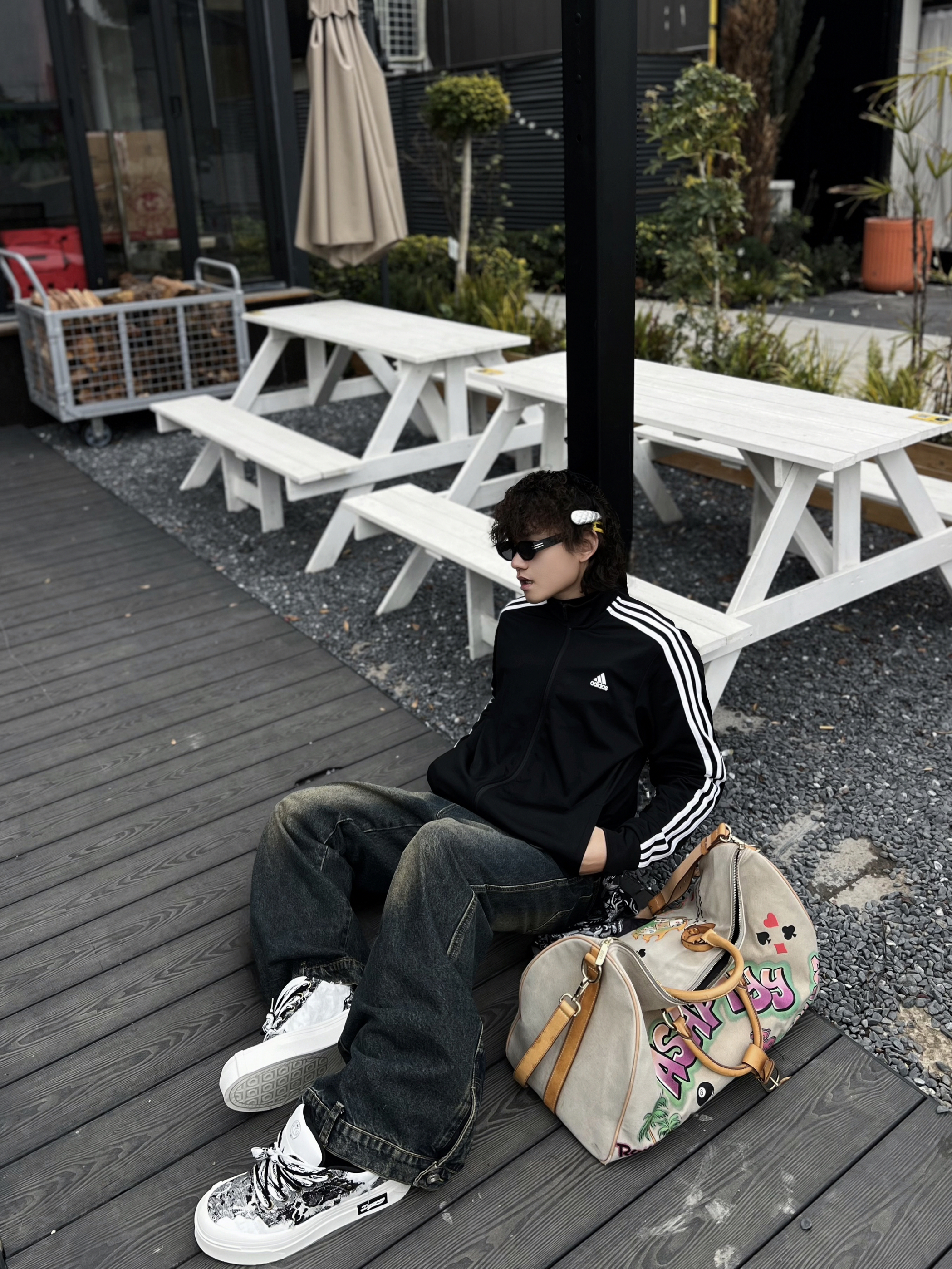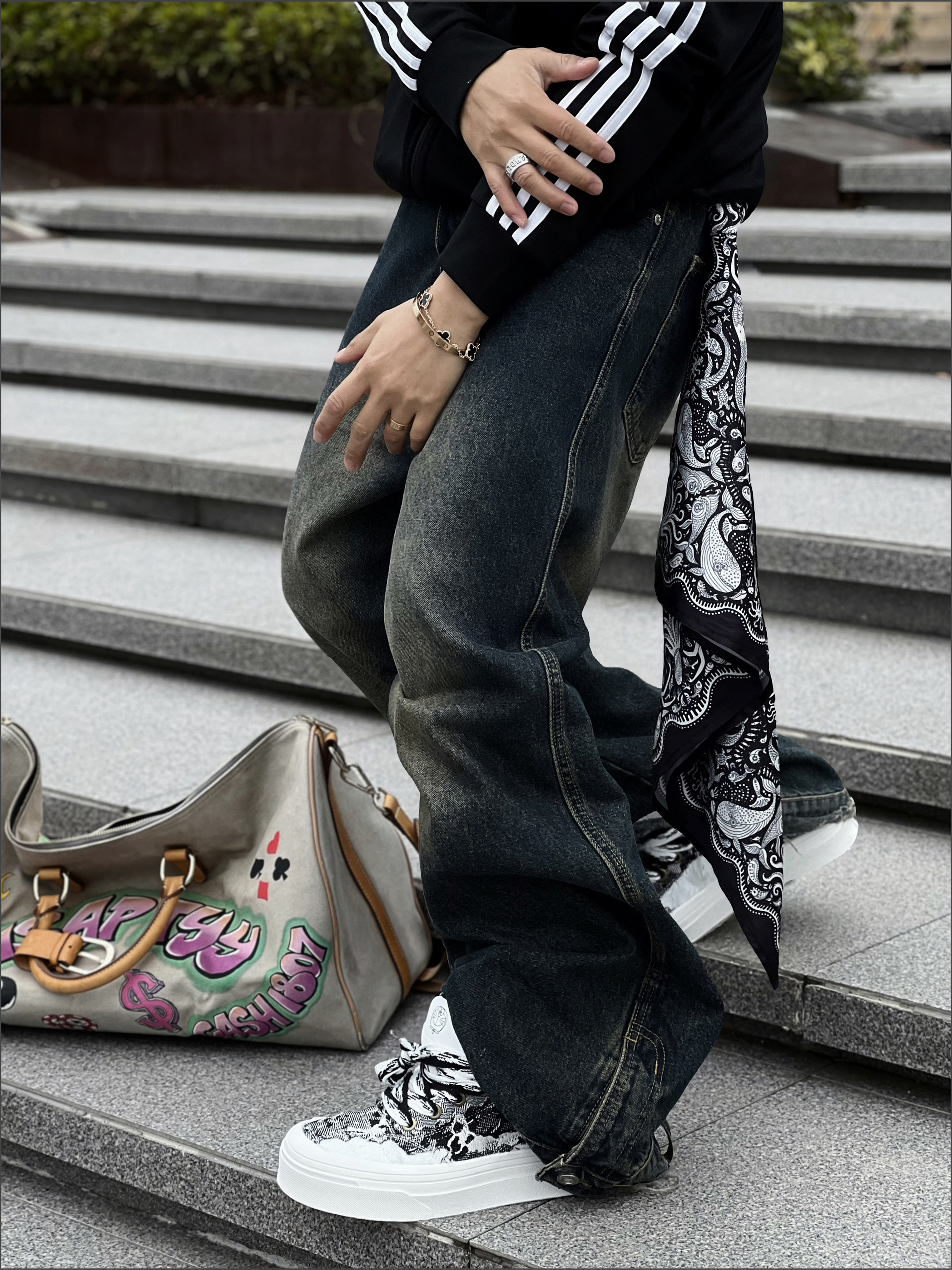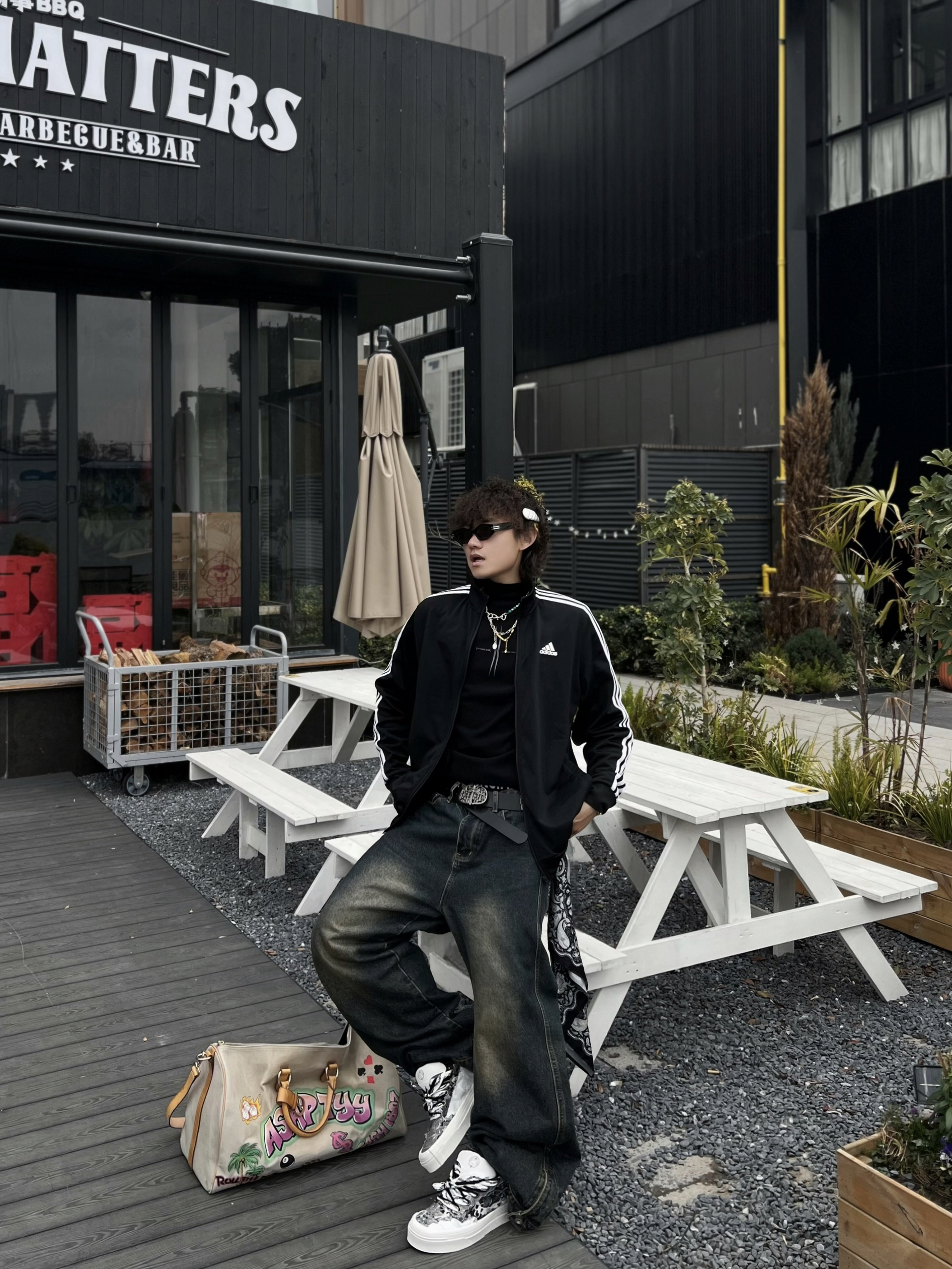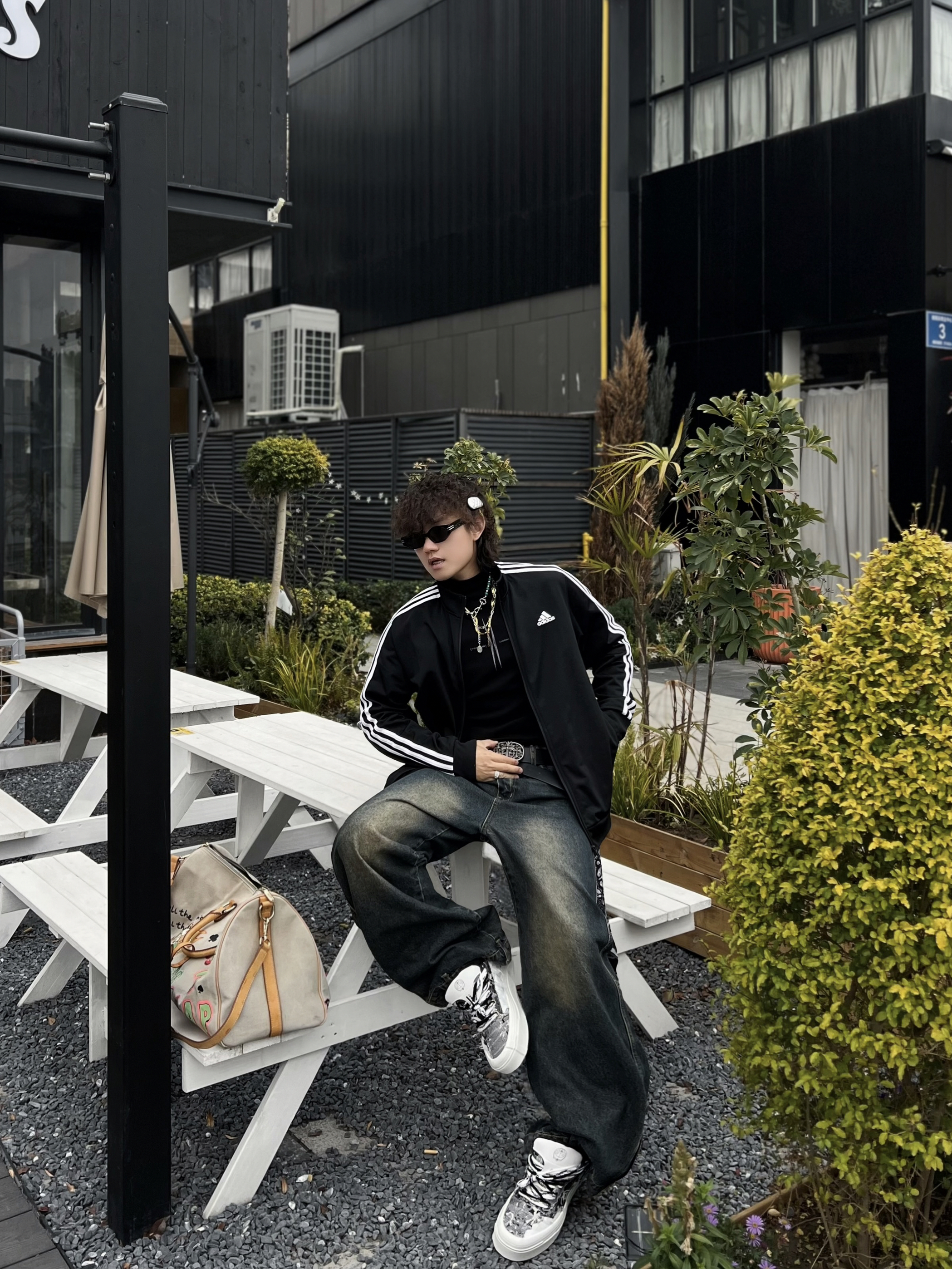 Hi、这里是有点懒的薯条🍟~ ☑️长得帅不如穿得帅! 开春第一件事,把sagging裤子焊在身上👖 🔘黑白配色球鞋踩出街头态度,腰果花头巾一系,复古美式那味儿直接拉满🎨 Adidas三条杠外套+渐变牛仔裤,松弛感和痞帅感同时在线😎 🗼春天的街头,谁穿谁是焦点!