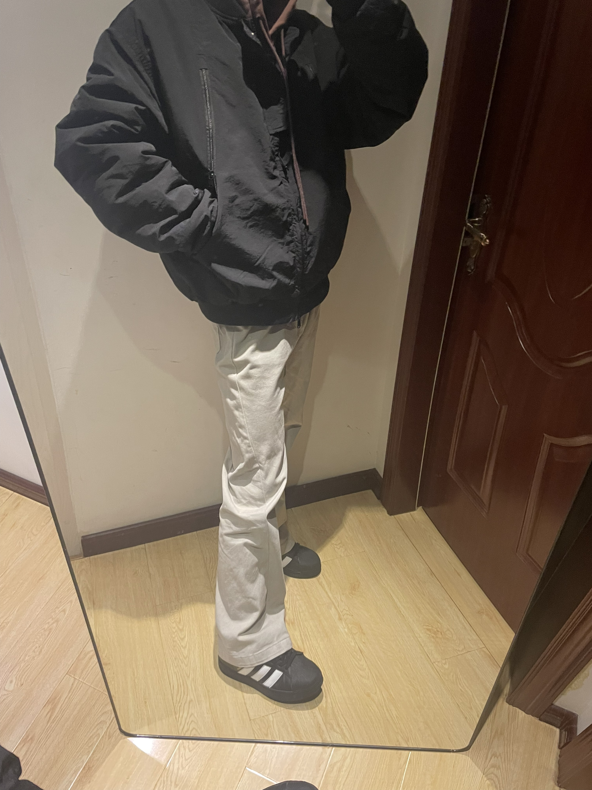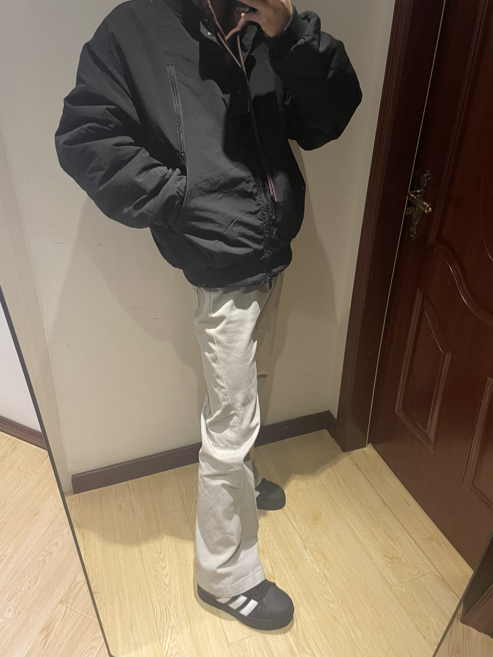 不知道什么风格 反正穿在身上和看起来都很舒服 薄棉夹克内搭卫衣➕阔腿裤➕黑贝壳头