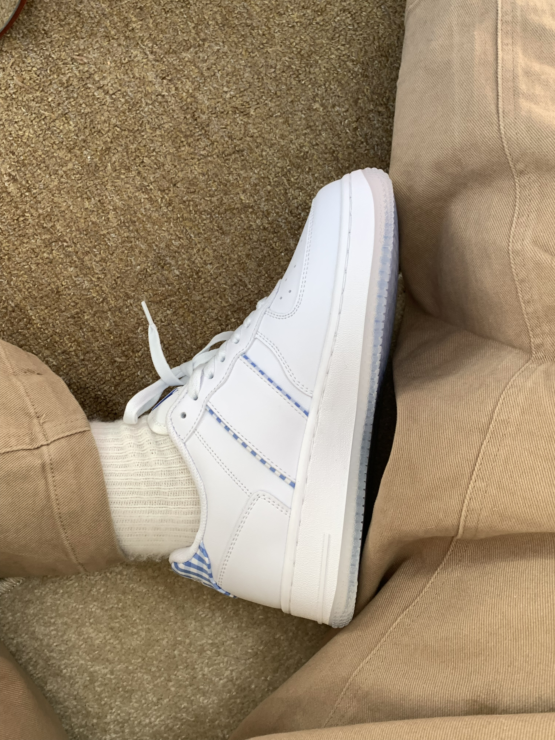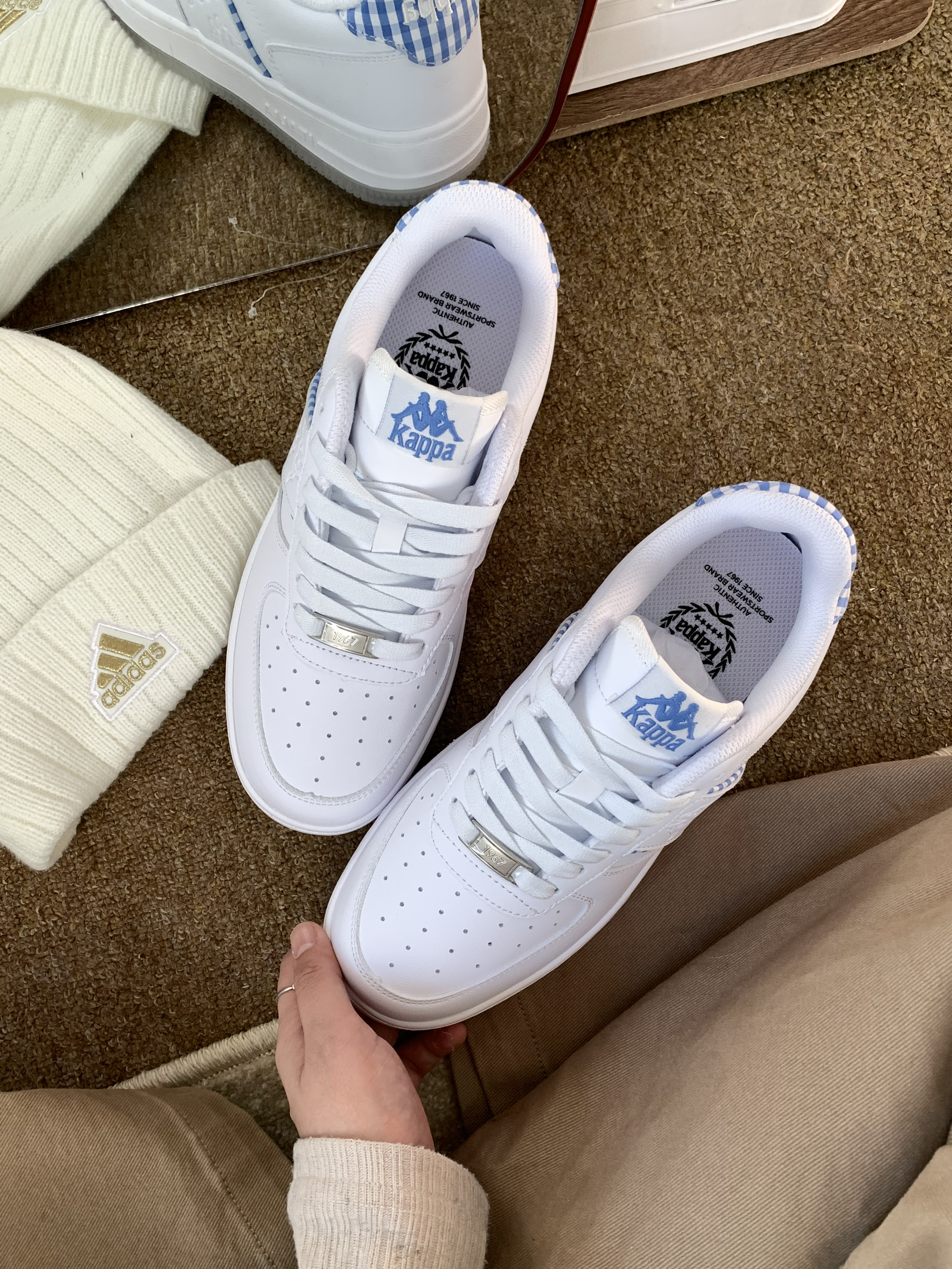 谁能拒绝一双干净又带点小心机的小白鞋啊🥹这双完全踩中了春日清新感,软乎乎的蓝格纹细节,甜妹直接焊在脚上!