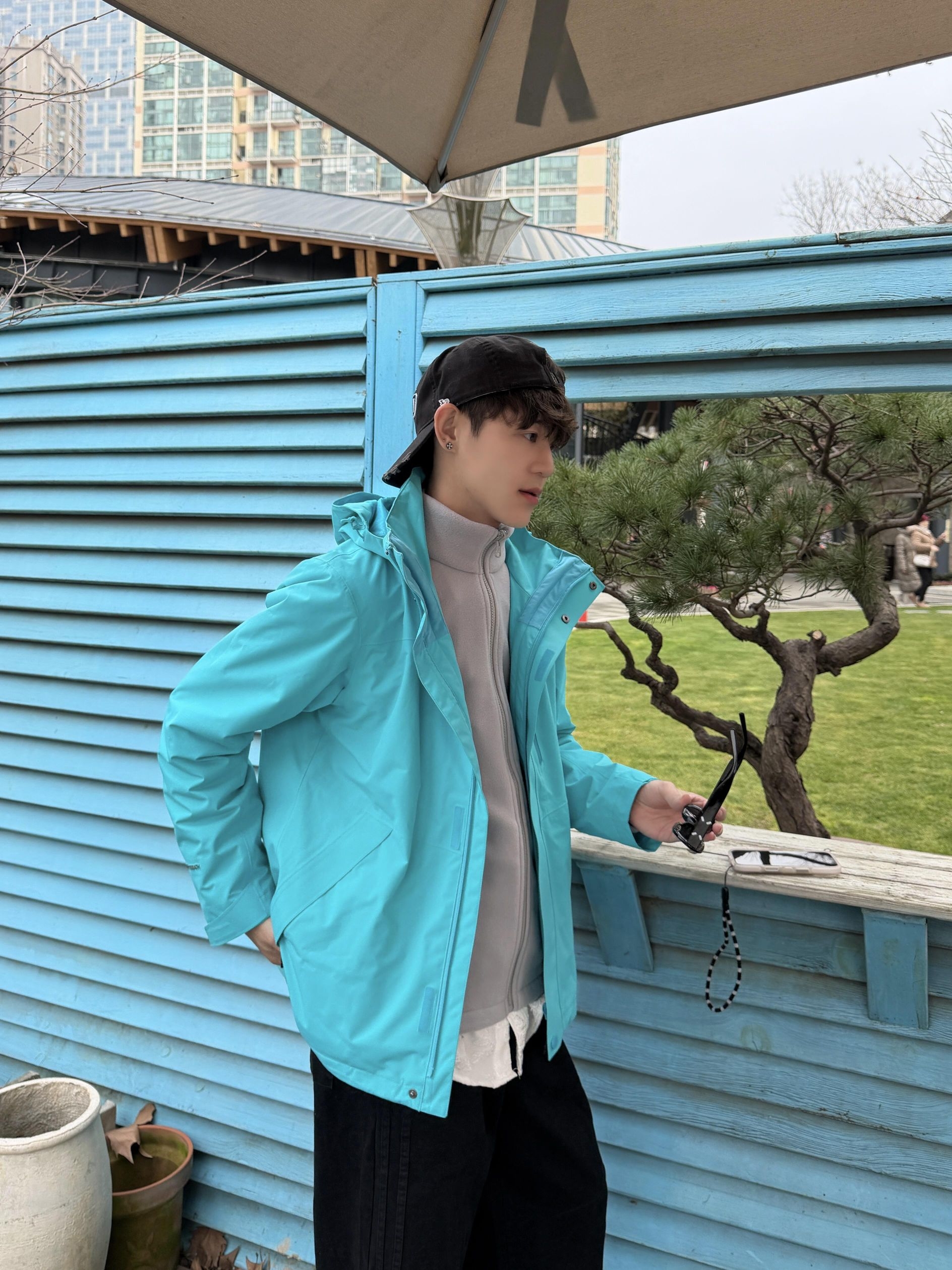早春穿搭拒绝沉闷感🌿 这件亮蓝色冲锋衣直接封神! 城市漫步 随性又出片📸 可拆卸三合一的设计 一年四季都可以穿捏~