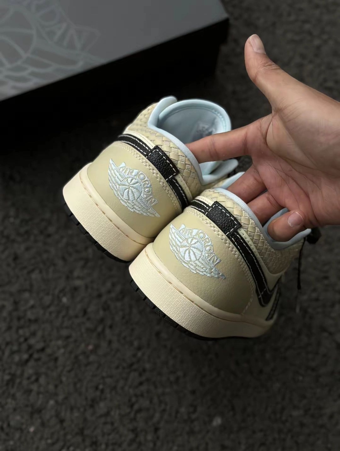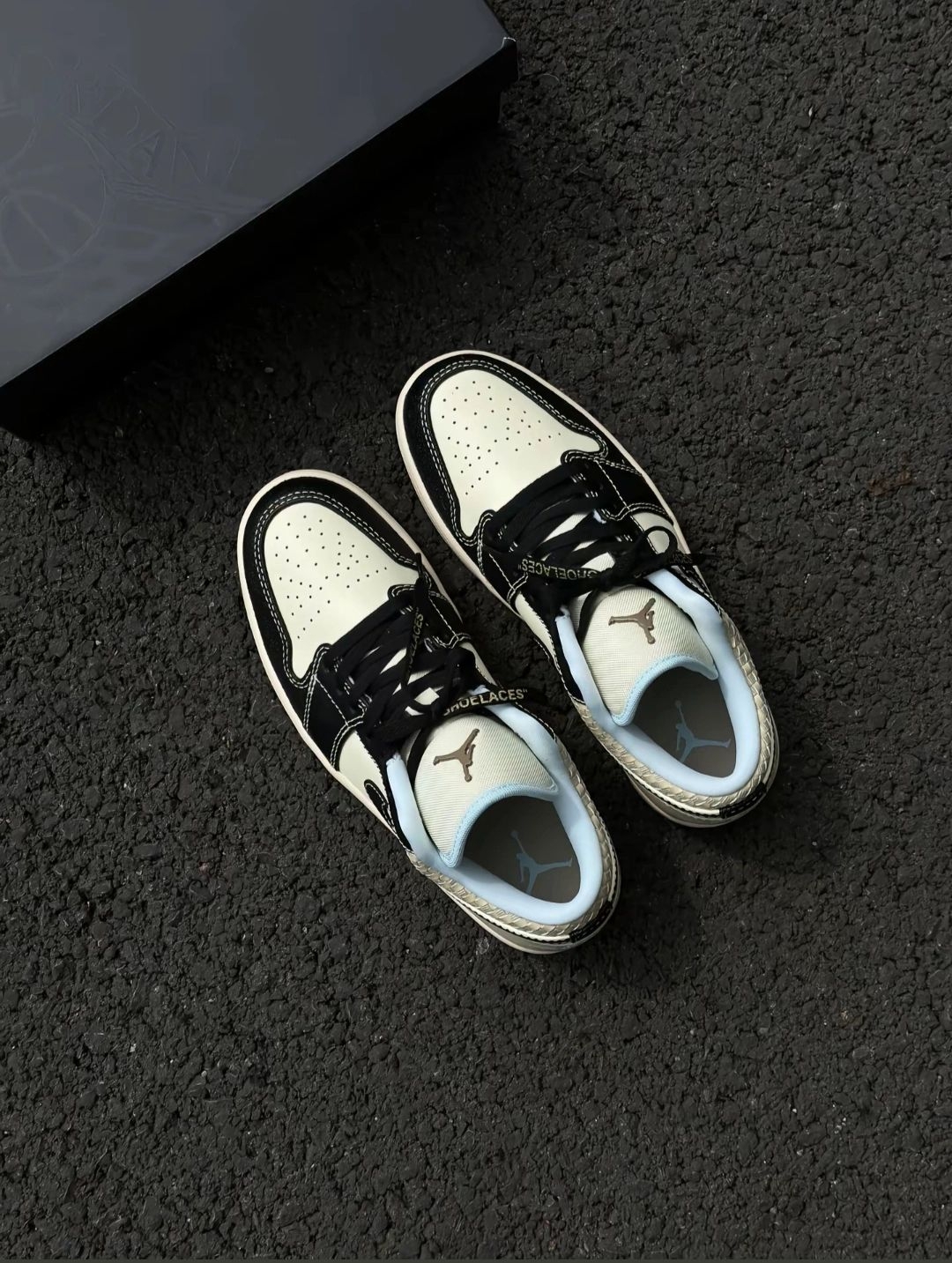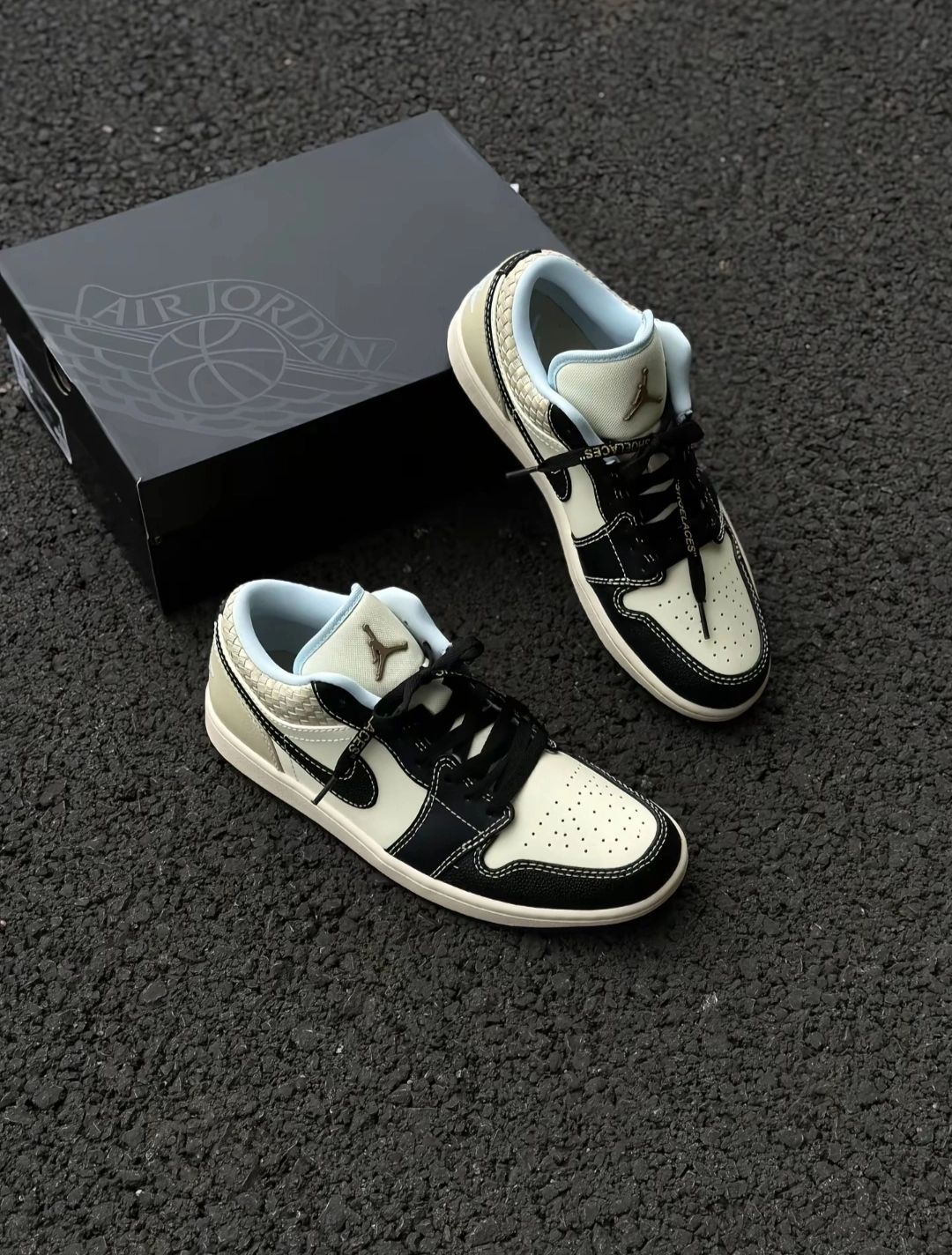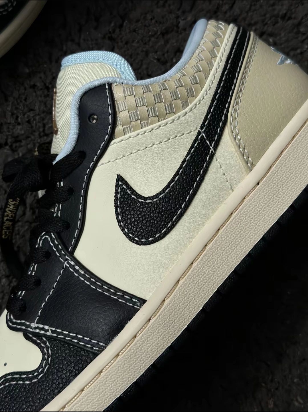 从外观来看,这款Air Jordan 1 Low采用了经典的黑白米配色方案,简约又不失时尚感。鞋面材质上,部分区域选用了质感上乘的皮革,触感细腻且具有较好的耐用性。标志性的耐克Swoosh标志以黑色呈现,醒目且经典,与#jordan经典 #黑白配色鞋太好看了 #百搭黑白配色鞋分享 整体配色完美融合。鞋帮处独特的编织纹理设计,为这款鞋增添了一丝独特的细节感和层次感。鞋舌及内衬部分采用了浅蓝色调,在沉...