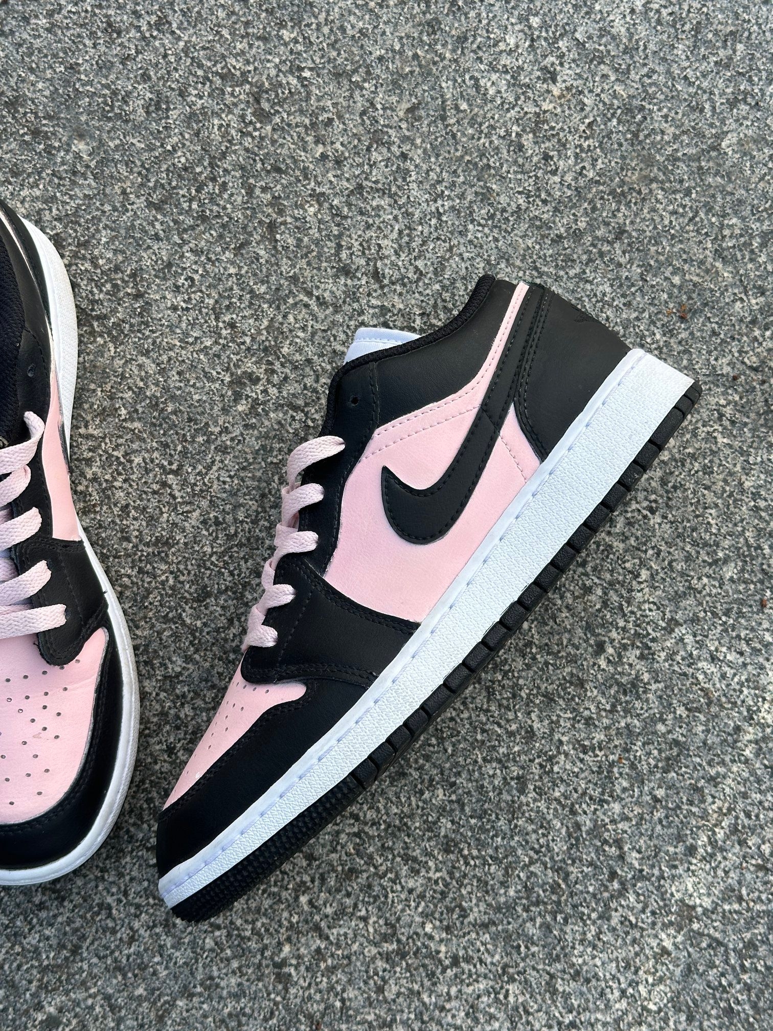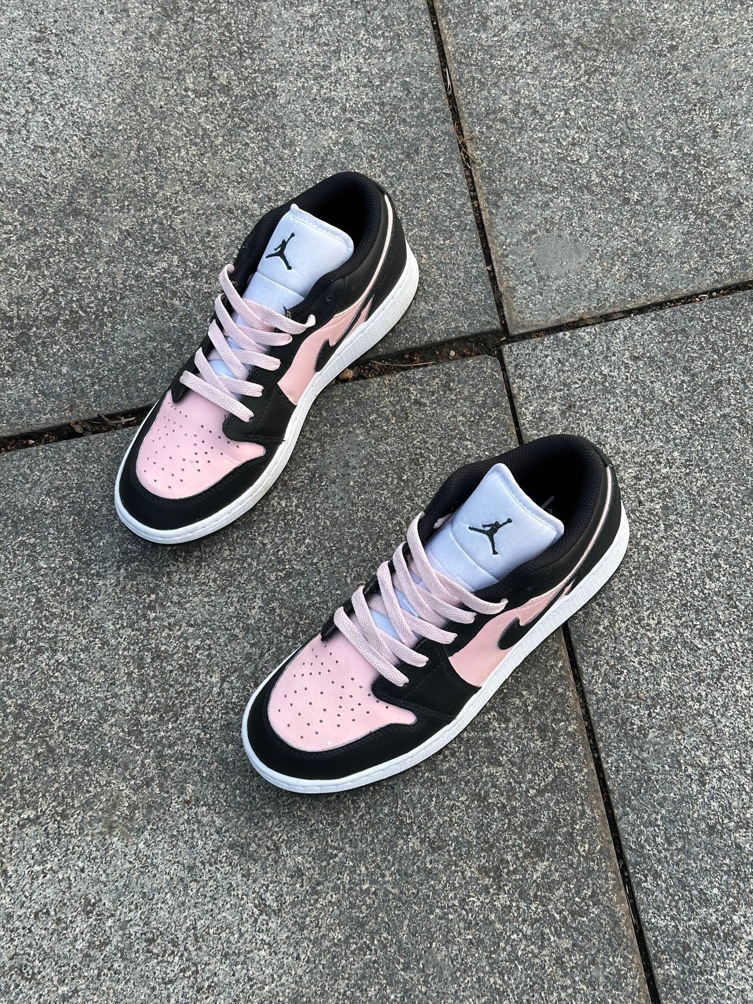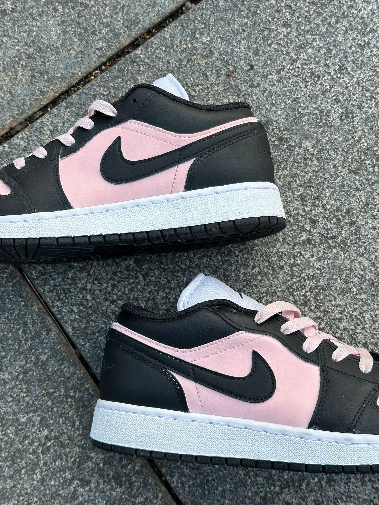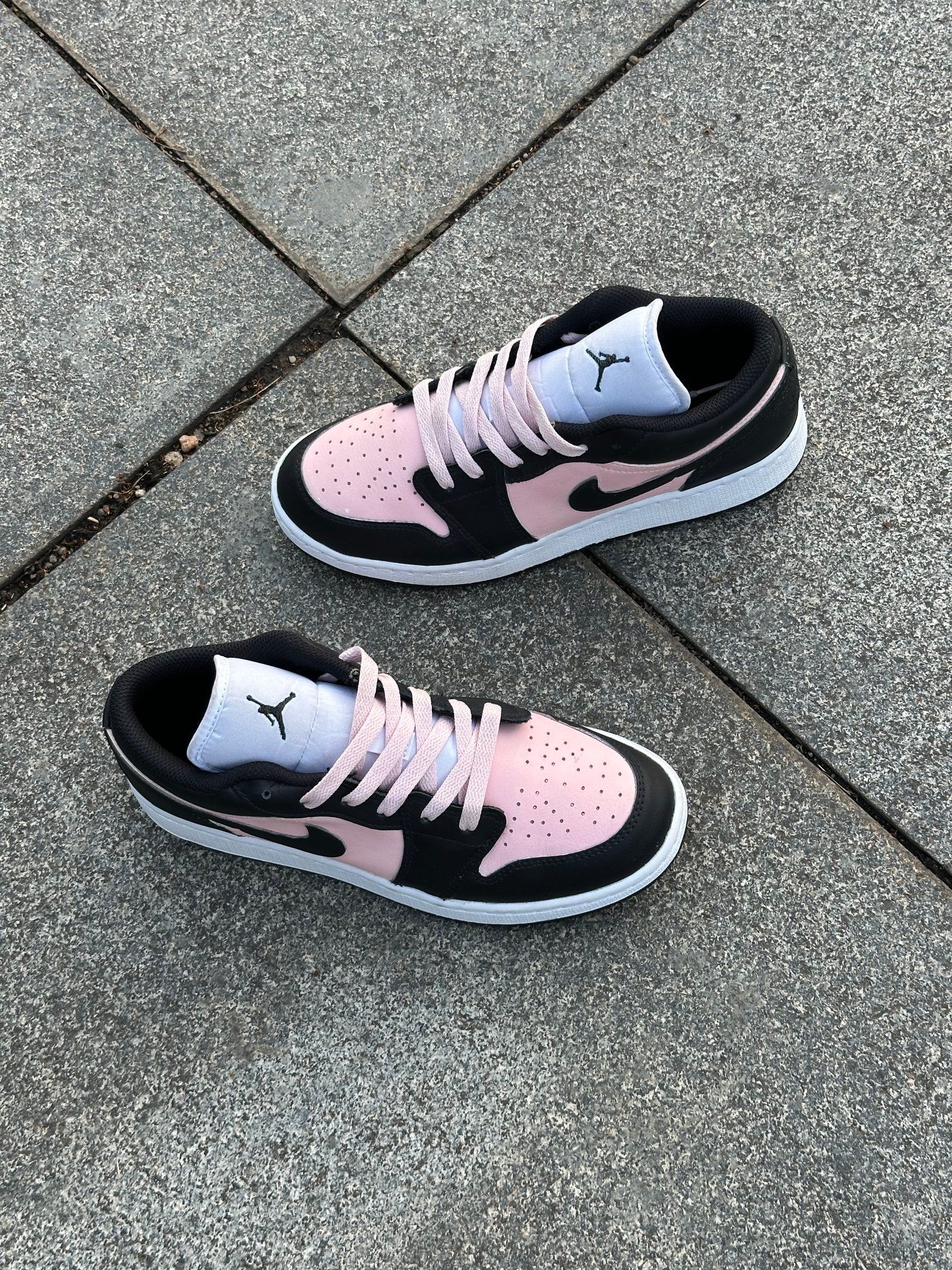 甜酷风真的是久看不厌哇 特别是这种低饱和的粉墨配色🩷🖤 我觉得搭配衣服比较方便 算是百搭款 AJ1的鞋型我也喜欢 鞋底不高不矮 穿起来厚底刚刚好 也不咋硬